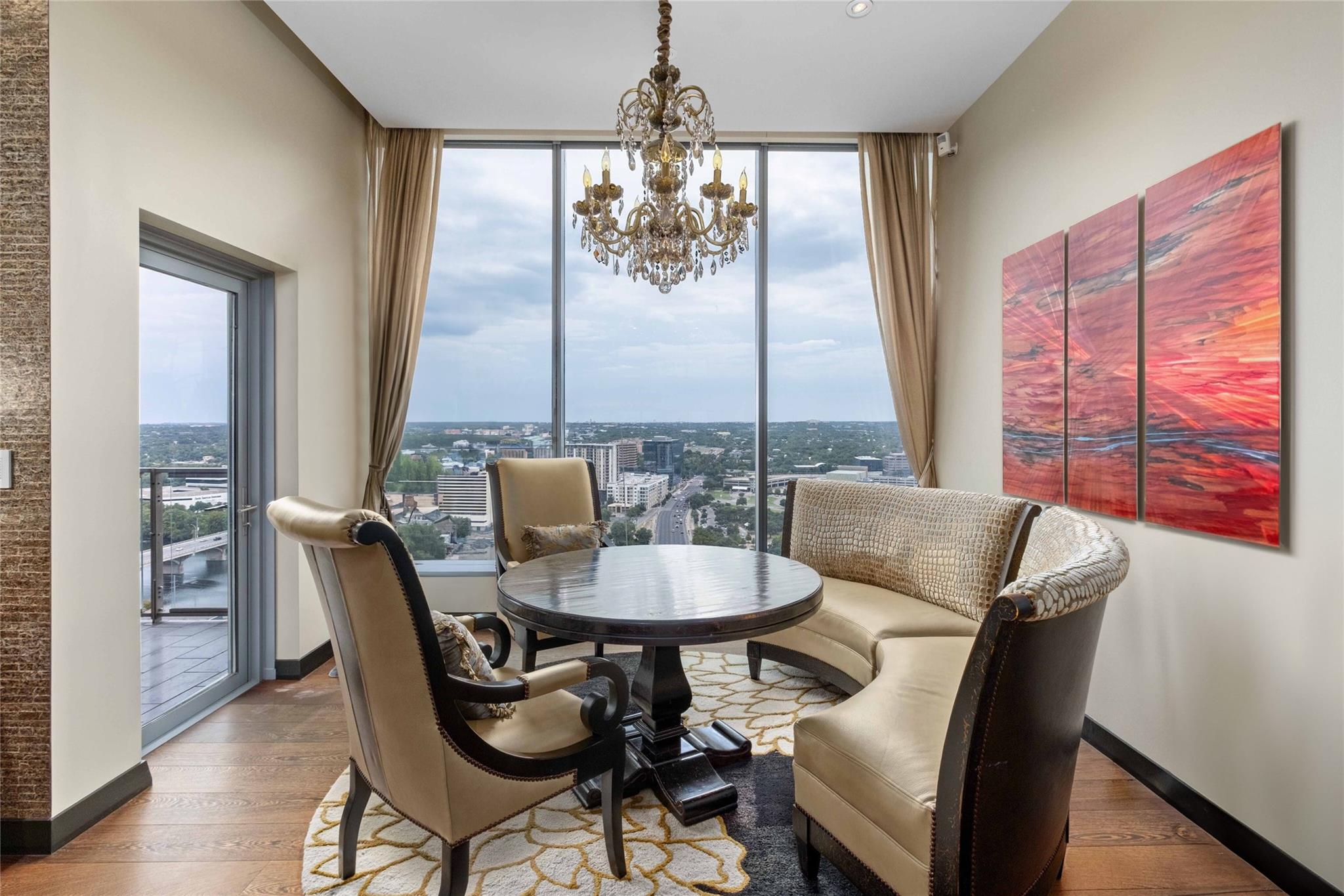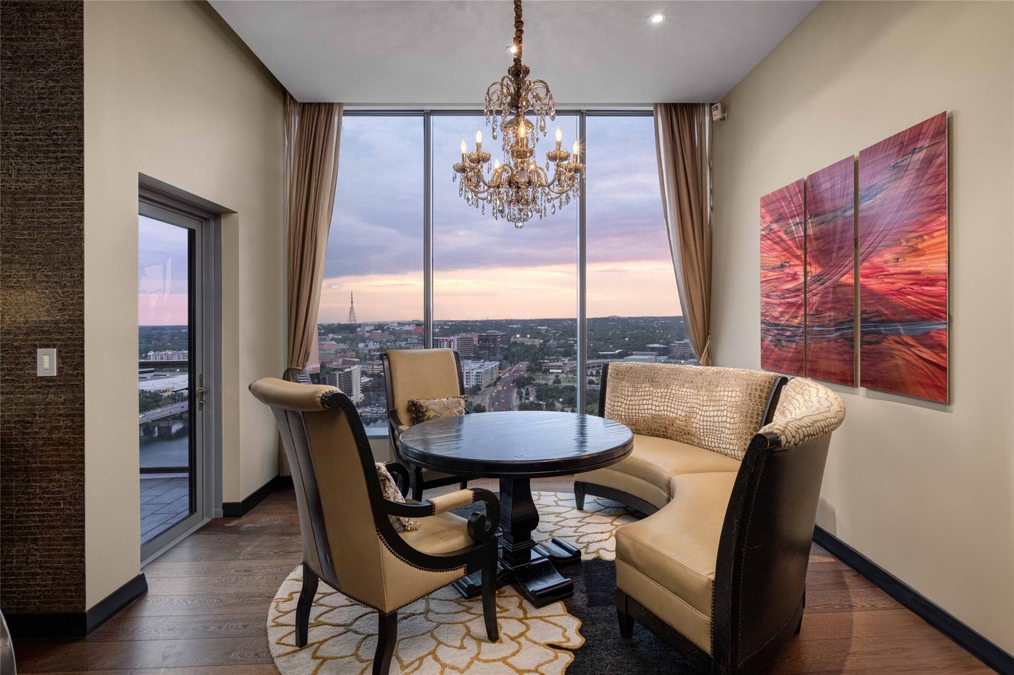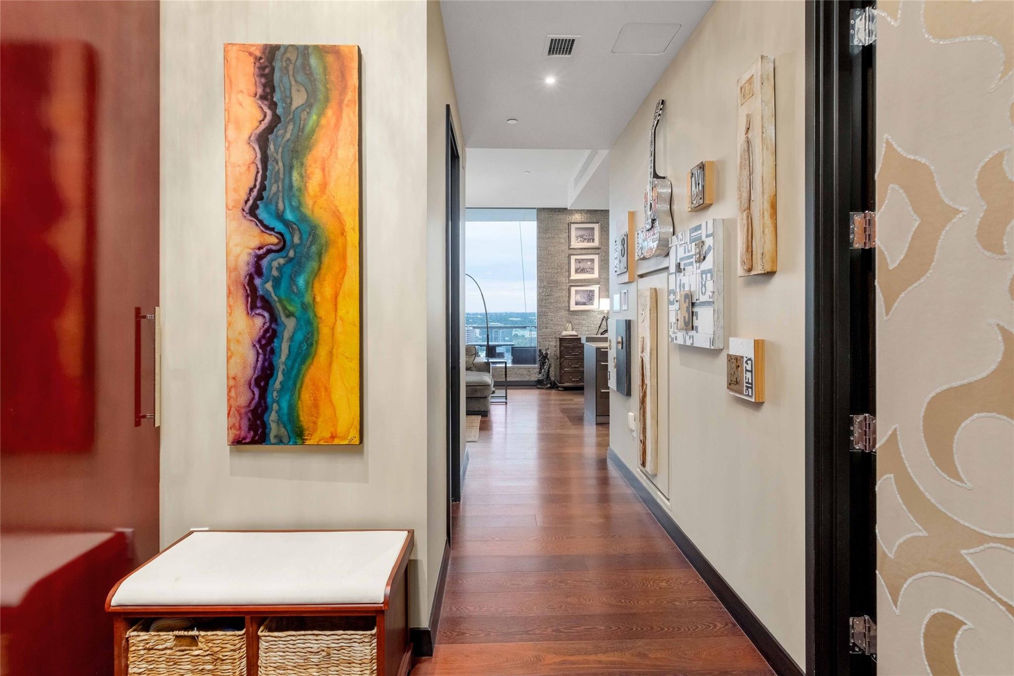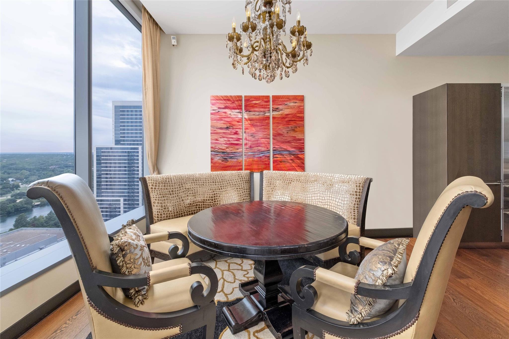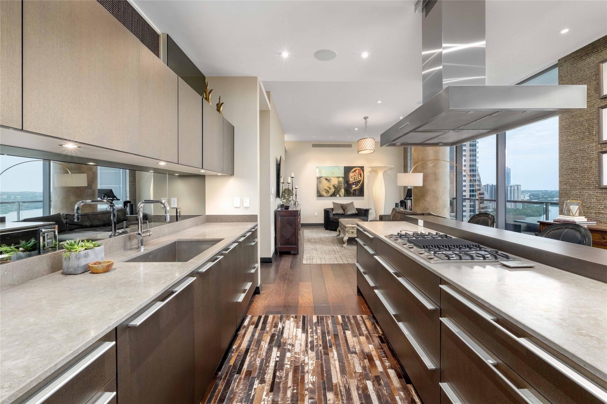 Crafted to elevate your perspective, unit 2201 at The W Residences in downtown Austin unveils breathtaking vistas stretching from Lady Bird Lake to the captivating Hill Country. Take in the incredible views and Texas sunsets through the expansive windows enveloping the living, dining and kitchen areas. Alternatively, venture onto the private terrace for a morning cup of coffee or evening cocktail. The residence features 2 bedrooms, 2.5 bathrooms and several upgrades throughout, including a SubZero refrigerator, custom tile-wrapped cement columns, ornate wall coverings, custom closet built-ins and large sliding doors in the foyer that unveil a discreet desk area and storage. Unit 2201 is complete with a large private storage unit and two reserved parking spaces. Experience the pinnacle of urban sophistication at The W, where luxury hotel amenities seamlessly blend with the privacy and exclusivity of a world-class residence. Enjoy an array of residential access amenities, including 24-hour concierge service, a pool, spa, fitness center, meeting/banquet rooms, an owner’s lounge, rooftop deck, and valet parking—all accompanied by awe-inspiring views. Embrace cosmopolitan living at its finest, with Zilker Park and the Hike-and-Bike trail just moments away, offering convenient access to the outdoors. The highly acclaimed 2nd Street District area awaits, with its renowned restaurants, including the esteemed Trace within the building, providing exceptional dining experiences. Elevate your entertainment quotient with priority access to the world-famous ACL theater, located just an elevator ride away, where you can immerse yourself in the best live performances the country has to offer. 24-Hour Advance Showing Notice.