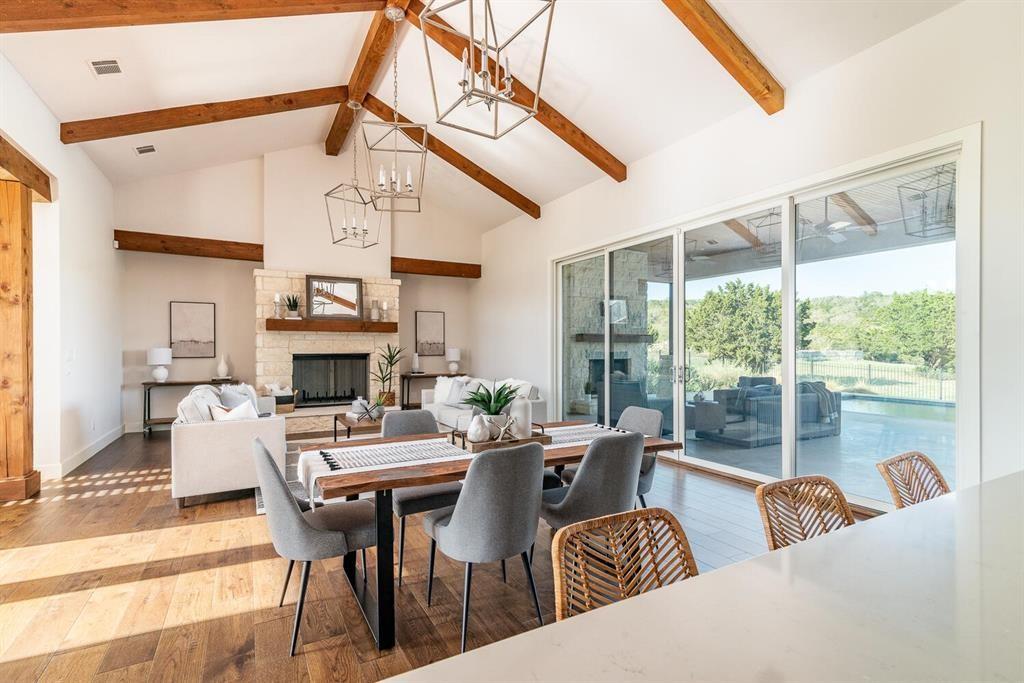 LOWEST PRICED HOME in Belvedere! Bring us an offer! MOTIVATED SELLERS! This 2016 Olson Defendorf masterpiece on a sprawling 1.6-acre lot offers a luxurious, open-concept floor plan perfect for entertaining. With beamed ceilings, recessed lighting, solid wood floors, and abundant natural light, this contemporary gem boasts style and sophistication. Enjoy panoramic hill country views and your own sparkling pool from the spacious covered patio, complete with a fireplace and built-in SS grill. The chef-inspired kitchen features Thermador SS appliances, double ovens, two dishwashers, a microwave drawer, quartz countertops, a large island, breakfast bar, and walk-in pantry. The owner's retreat is a bright sanctuary with bay windows, beamed ceilings, and an en-suite bath featuring a soaking/jetted tub, separate shower, and his/hers walk-in closets. This home also offers a private study, guest bedroom with en-suite bath, and a media room with a built-in sound system on the main level. Upstairs, enjoy additional living/flex space and two guest bedrooms. Belvedere living includes premium amenities like a lazy river, splash pad, sport courts, scenic trails, fishing pond, and more. Just 30 minutes from downtown Austin and zoned for award-winning Lake Travis ISD schools, this is your chance to embrace the Texas Hill Country lifestyle – schedule a showing today!