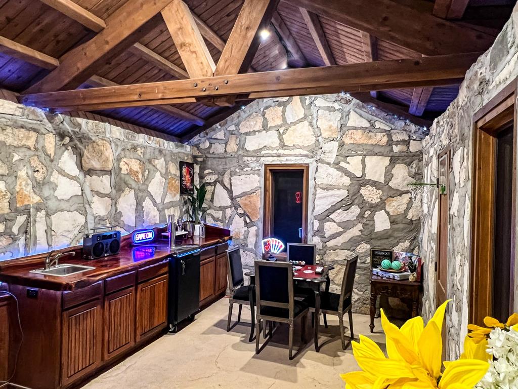 | Interior Features | Bar, Bookcases, Breakfast Bar, Built-in Features, Beamed Ceilings, Vaulted Ceiling(s), Granite Counters, Stone Counters, Double Vanity, Eat-in Kitchen, High Speed Internet, Kitchen Island, Multiple Dining Areas, Multiple Living Areas, Natural Woodwork, Open Floorplan, Pantry, Primary Bedroom on Main, Recessed Lighting, Soaking Tub, Storage, Walk-In Closet(s), Wet Bar | |