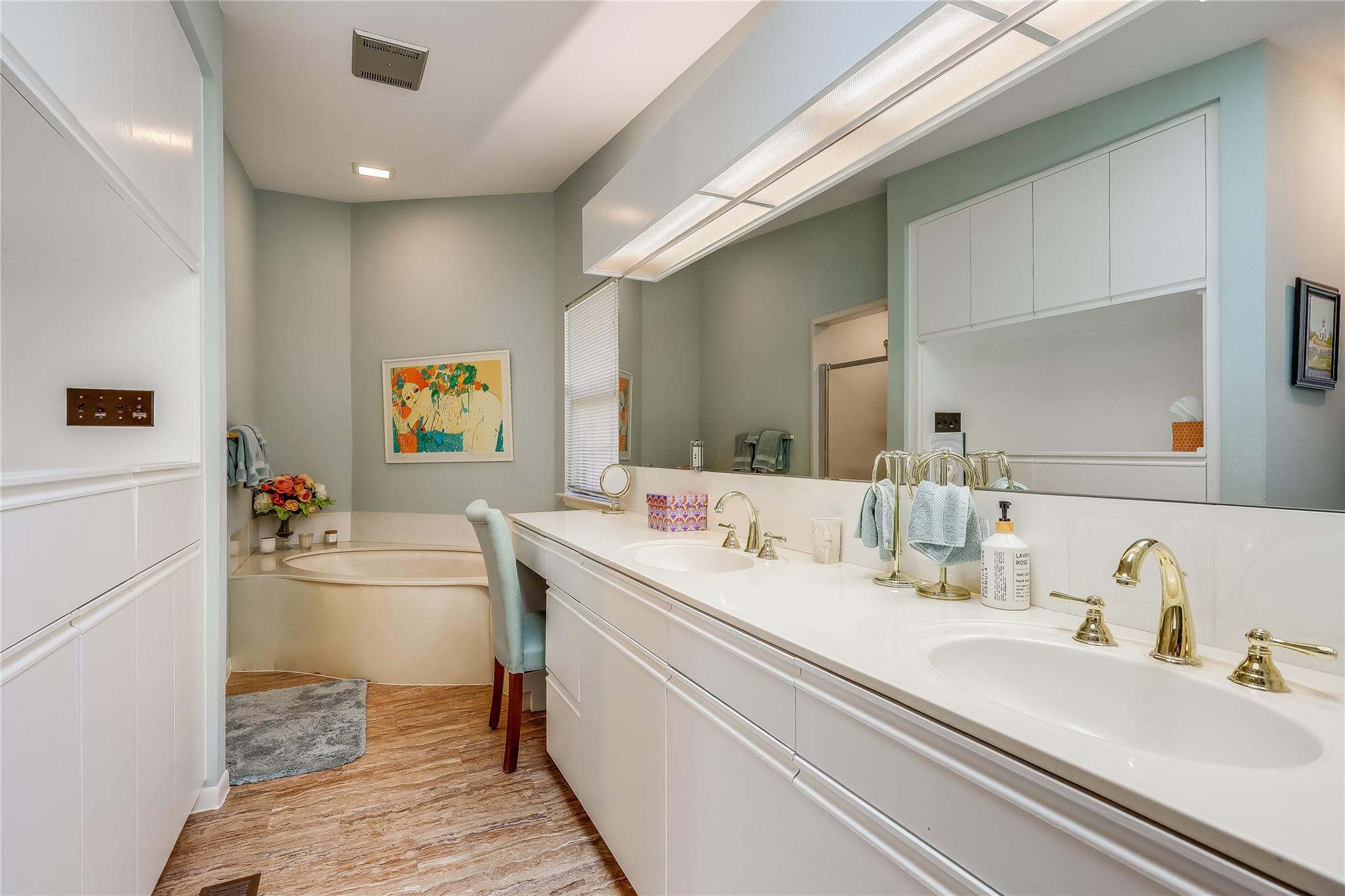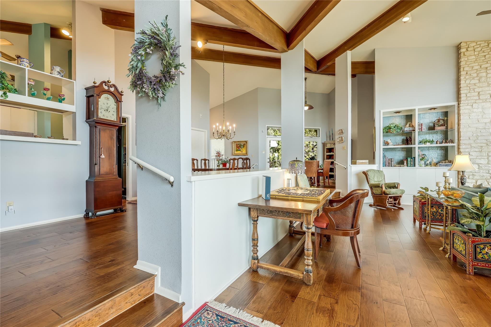 | Interior Features | Breakfast Bar, Built-in Features, Ceiling Fan(s), High Ceilings, Vaulted Ceiling(s), Double Vanity, Electric Dryer Hookup, Eat-in Kitchen, French Doors, Interior Steps, Multiple Living Areas, Natural Woodwork, Open Floorplan, Pantry, Soaking Tub, Storage, Track Lighting, Two Primary Closets, Walk-In Closet(s), Washer Hookup | |