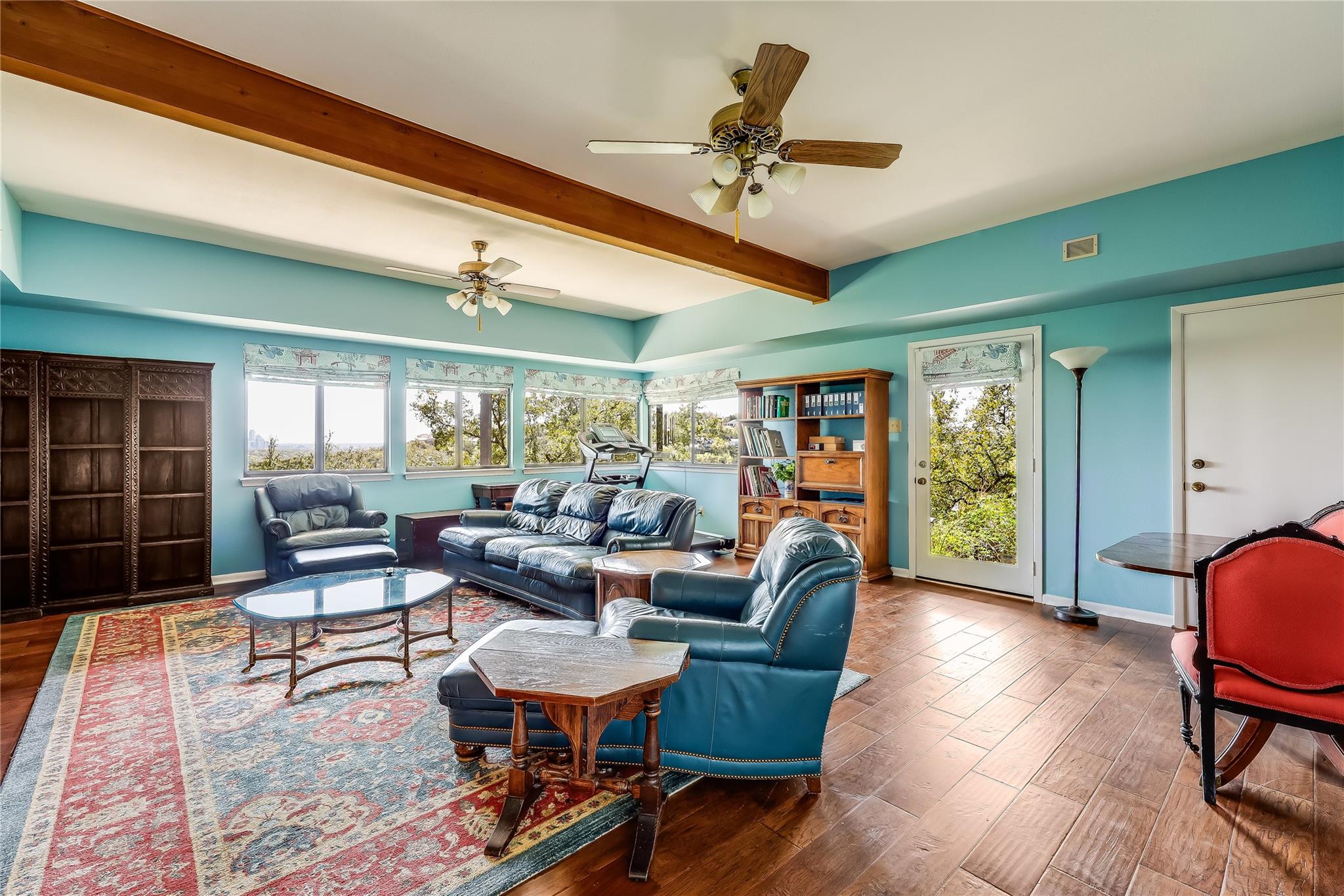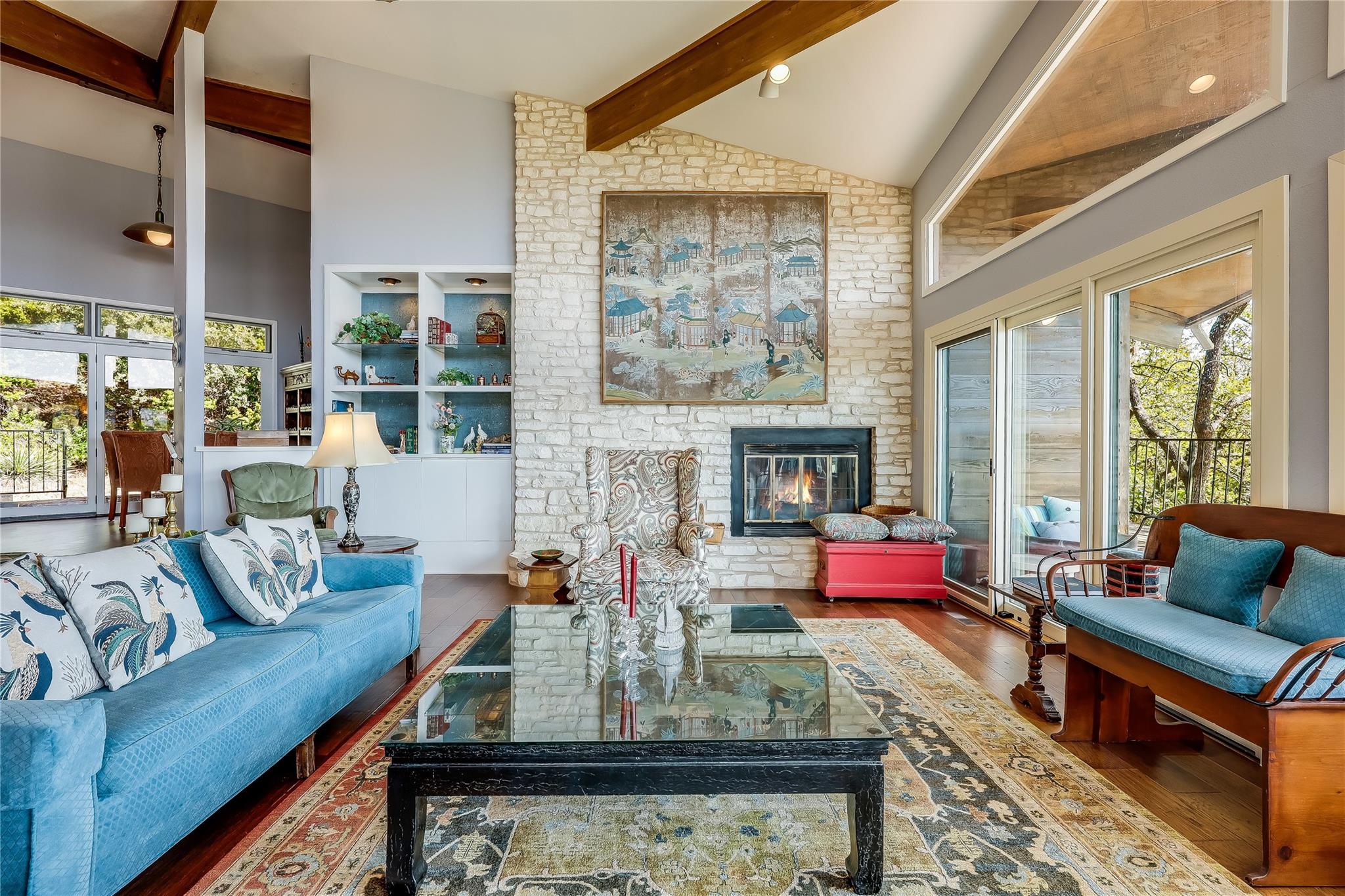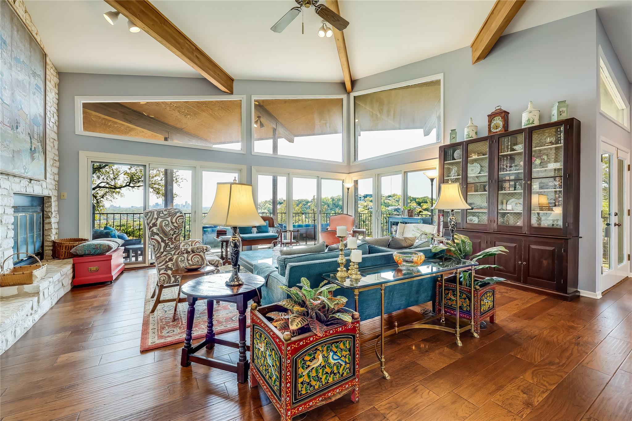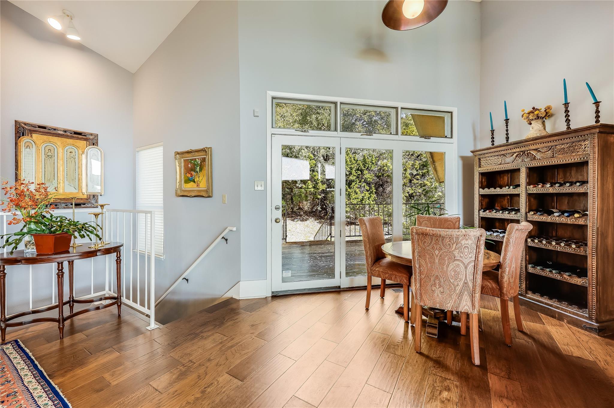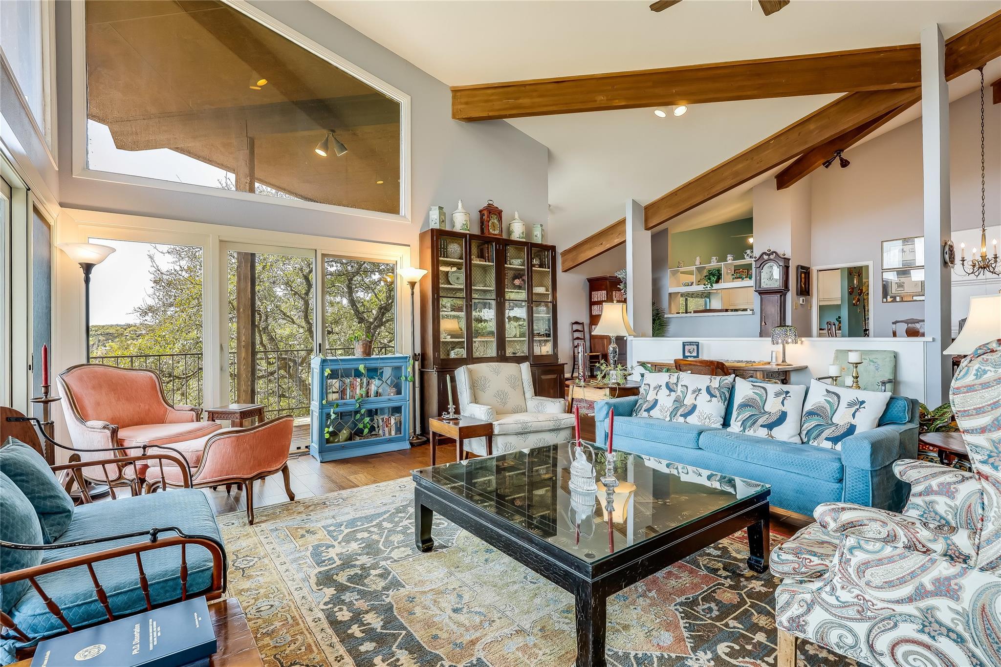 Introducing 4704 Toreador Drive: an emblem of mid-century elegance perched with an unrivaled 220-degree panorama that encompasses the dynamic skyline of downtown Austin, the iconic University of Texas Tower, and the majestic State Capitol, not to mention select views of Lake Austin. Nestled on a serene 1.02-acre expanse, this home is ensconced amidst a canopy of mature oaks, offering both seclusion and natural splendor. The living area emerges as the heart of the residence, where expansive floor-to-ceiling windows not only flood the space with sunlight but also frame the exquisite vistas, blending relaxation with refined entertainment. This residence is ingeniously designed to accommodate multi-generational living, highlighted by a secluded Primary Suite that features lofty ceilings, awe-inspiring views with private access to the front balcony, and a well appointed primary bathroom with two walk-in closets. The suite’s balcony is a sanctuary for witnessing the mesmerizing sunsets that paint the Austin skyline. On the main level, a dedicated office space, boasting the same breathtaking views, provides flexibility for conversion into a nursery or guest room, reflecting the home’s adaptability to its residents’ evolving needs. The dining area, with its direct views of downtown, is easily accessible from the butler’s pantry and kitchen, crafting an ideal environment for social gatherings. The lower level unfolds as a distinct living quarter with a private entrance, perfectly suited for guests, extended family living, or as a lucrative short-term rental option. This level’s thoughtfully planned plumbing infrastructure anticipates the easy addition of a kitchenette. Moreover, the expansive lower living room adapts to various uses, from a fitness area to a creative workshop. Residing within the bounds of the esteemed Eanes Independent School District, 4704 Toreador is zoned to top ranked schools in both academics and sports.