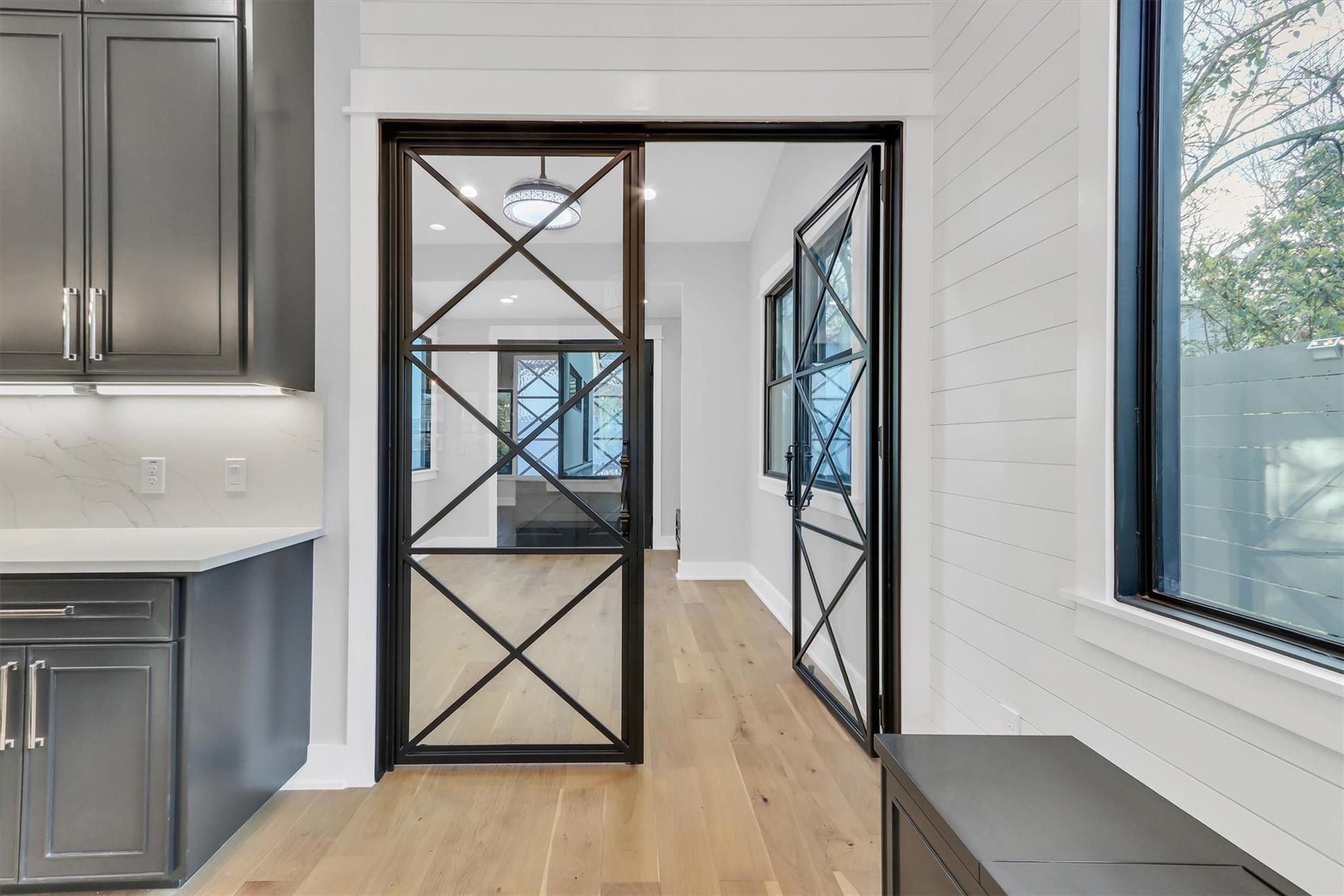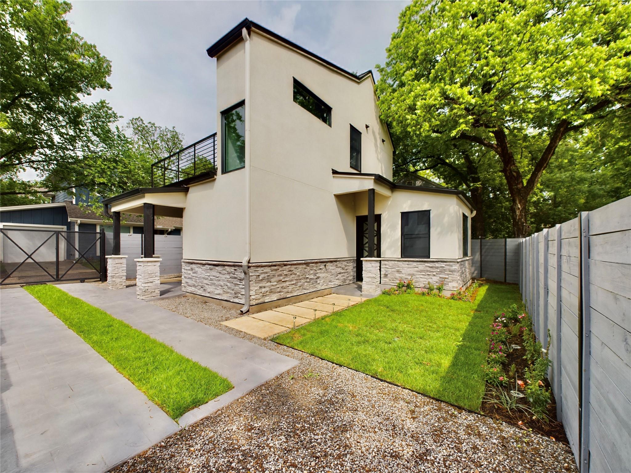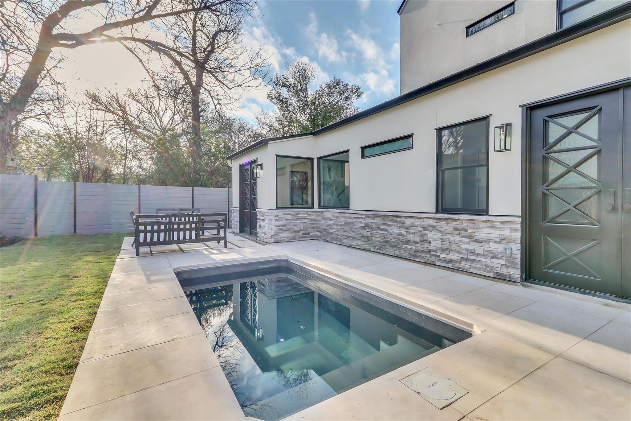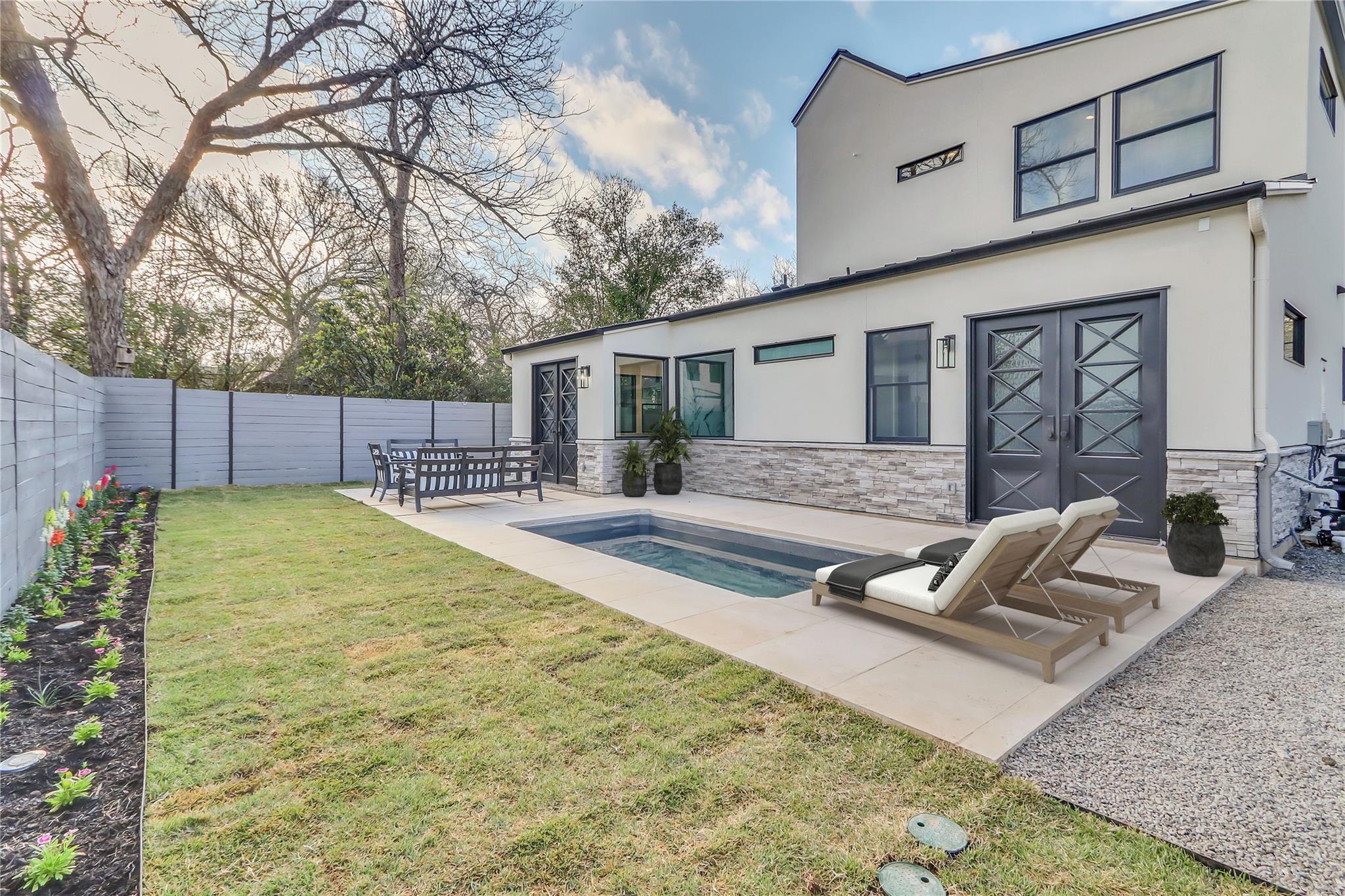 The wonderfully crafted home in the heart of Austin’s North Campus immediately impresses with an alluring great room that overlooks a true chefs kitchen, a bright dining area, and luxury outdoor living space. Complementing the well-designed kitchen is an oversized center island with a breakfast bar, Waterfall counters with expansive cabinet space, Single deep farm house sink and built in appliances. 48 " gas cooktop with 8 burners, double over with European French door. Be enveloped in the warm richness of the wood floors and the deep color of the custom cabinetry. Feel the craftsmenship of the customforged exterior metal doors every time you enter your home. The main floor also boasts a secondary living area perfect for entertaining friends with access to the landscaped back yard and private pool. The marvelous primary bedroom suite is secluded on the main floor, complete with a stunning walk-in closet and a serene primary bath with dual-sink vanity, a large soaking tub, a luxe shower, and private backyard access. Upstairs you will find an additional Bedroom suite with private bath and secondary bedrooms 3 and 4 offering sizable closets and share a full hall bath. Upstairs you will also find an additional living space that can be upgraded to a home office with lots of natural light. A full laundry room completes the upstairs with lots of built-in cabinetry, room for a full size washer and dryer along with a laundry sink. Guest house is in rear with own alley access 2br/2ba, full kitchen, laundry, living room with an expansive roof top deck. This home is fully gated and landscaped to enjoy your homes privacy while still being able to feel part of this vibrant neighborhood and interact with your neighbors. Walk to Civil Goat for your morning coffee and partake in Austin’s BBQ scene just down the street at Black’s Barbecue. Ask about Buyers closing cost incentive package. Deed Restrictions allow for short term rental if desired for the Guest House
