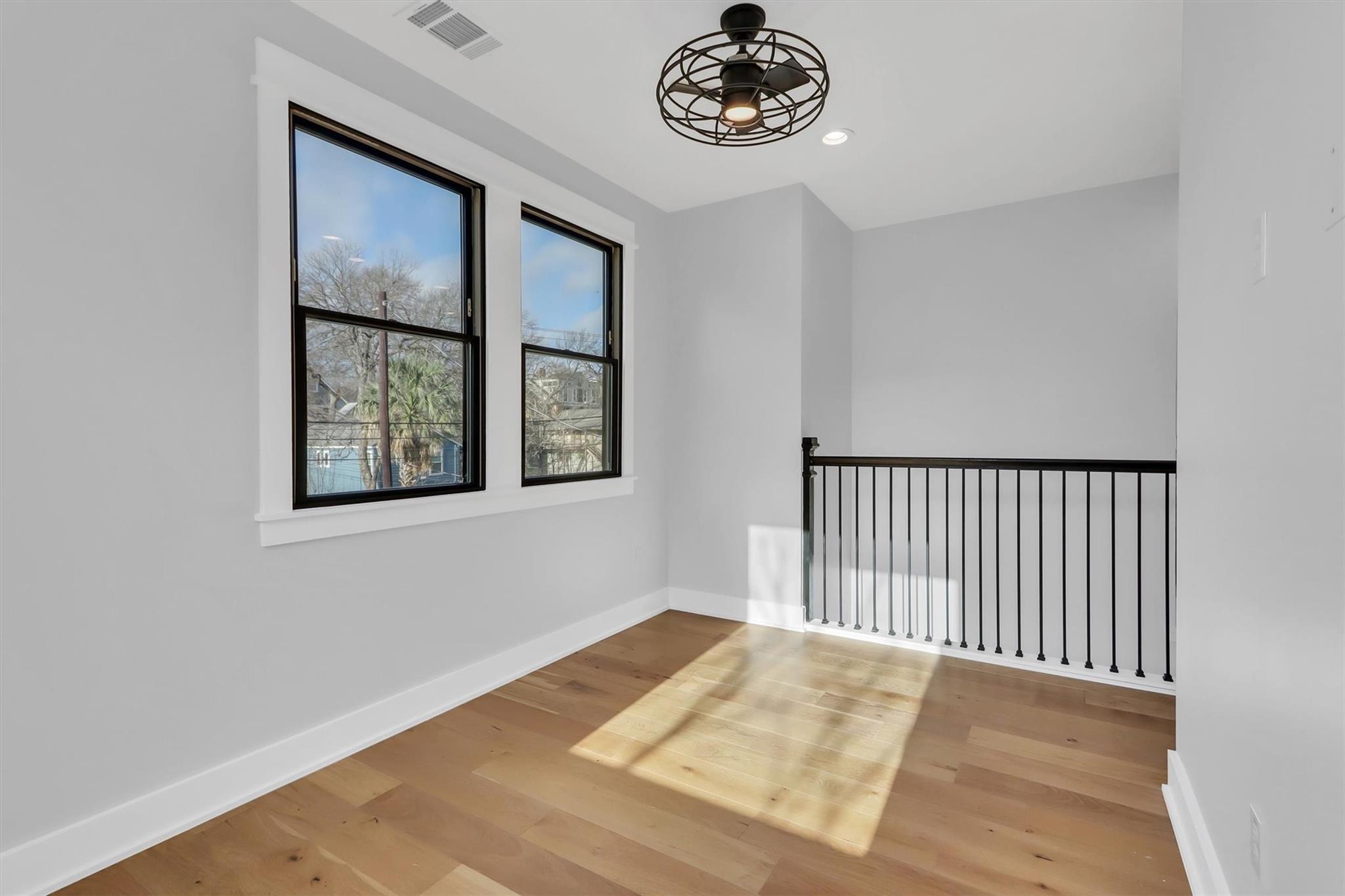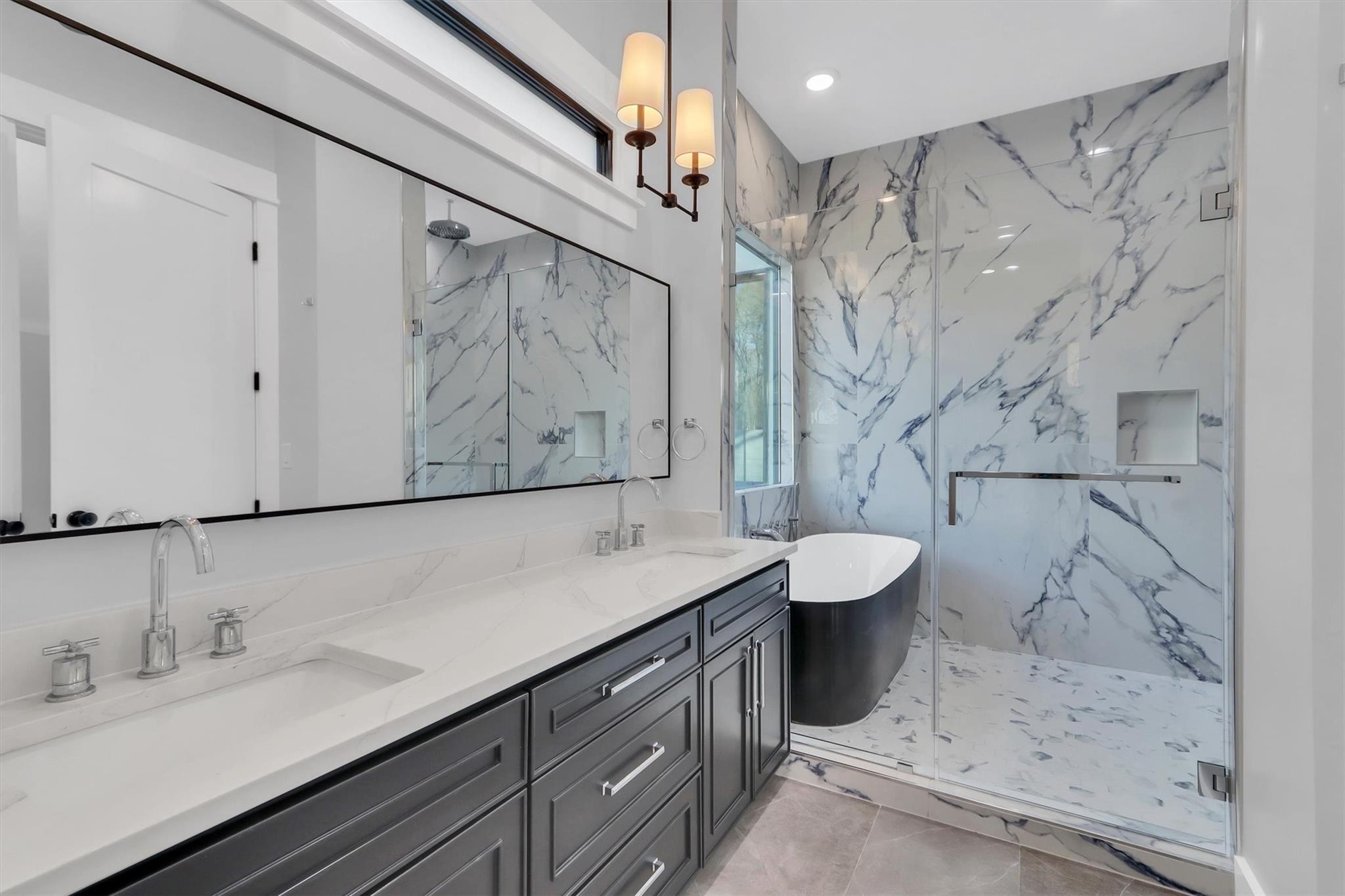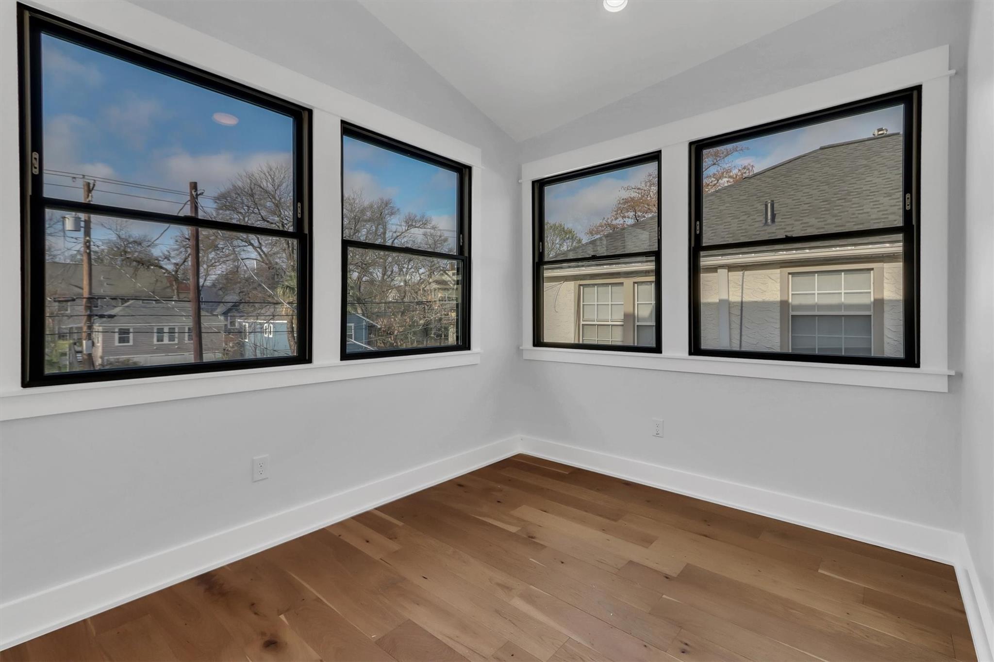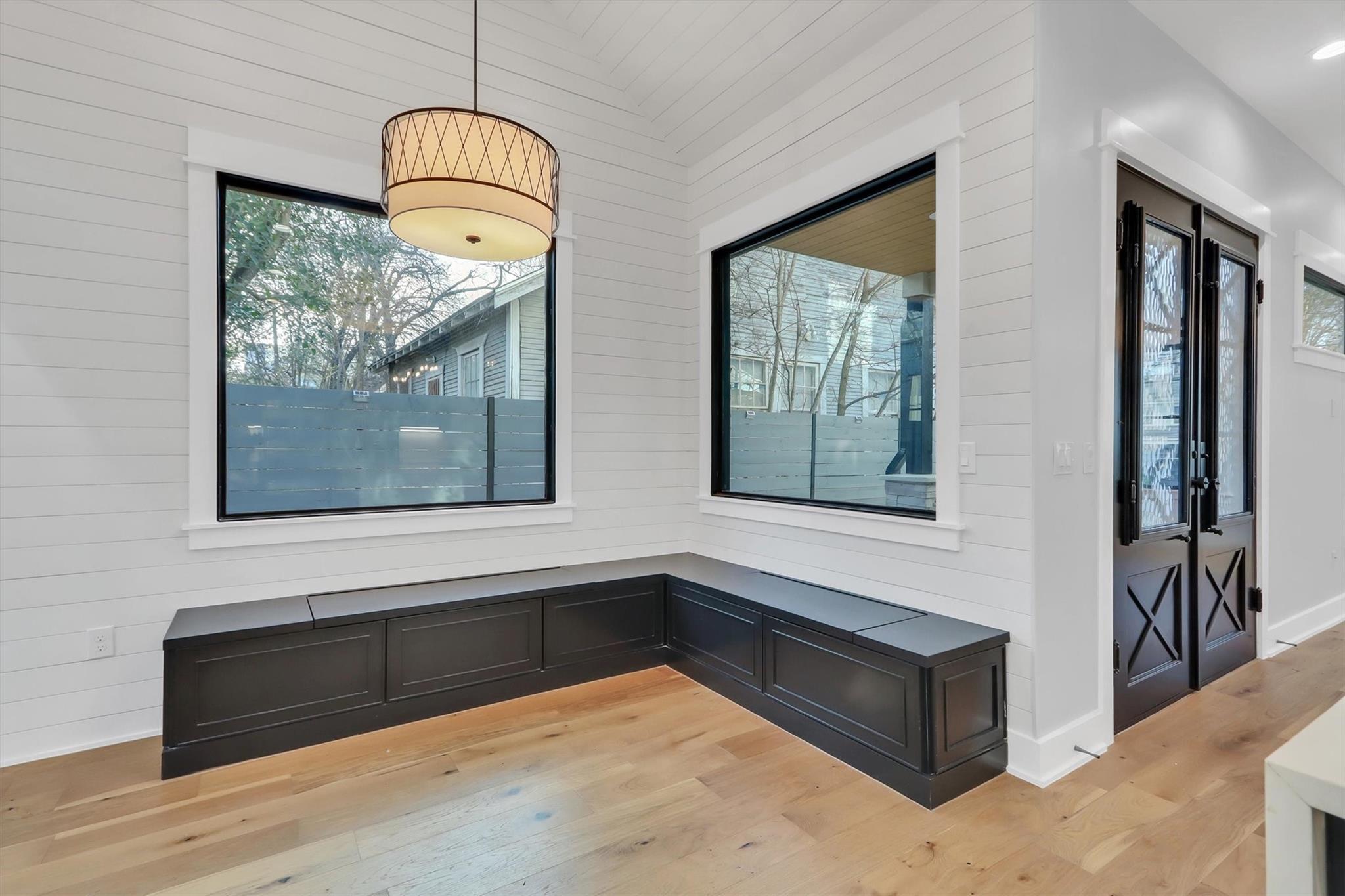 The wonderfully crafted home in the heart of Austin’s North Campus immediately impresses with an alluring great room that overlooks a true chefs kitchen, a bright dining area, and luxury outdoor living space. Complementing the well-designed kitchen is an oversized center island with a breakfast bar, Waterfall counters with expansive cabinet space, Single deep farm house sink and built in appliances. 48 " gas cooktop with 8 burners, double over with European French door. Be enveloped in the warm richness of the wood floors and the deep color of the custom cabinetry. Feel the craftsmenship of the customforged exterior metal doors every time you enter your home. The main floor also boasts a secondary living area perfect for entertaining friends with access to the landscaped back yard and private pool. The marvelous primary bedroom suite is secluded on the main floor, complete with a stunning walk-in closet and a serene primary bath with dual-sink vanity, a large soaking tub, a luxe shower, and private backyard access. Upstairs you will find an additional Bedroom suite with private bath and secondary bedrooms 3 and 4 offering sizable closets and share a full hall bath. Upstairs you will also find an additional living space that can be upgraded to a home office with lots of natural light. A full laundry room completes the upstairs with lots of built-in cabinetry, room for a full size washer and dryer along with a laundry sink. Guest house is in rear with own alley access 2br/2ba, full kitchen, laundry, living room with an expansive roof top deck. This home is fully gated and landscaped to enjoy your homes privacy while still being able to feel part of this vibrant neighborhood and interact with your neighbors. Walk to Civil Goat for your morning coffee and partake in Austin’s BBQ scene just down the street at Black’s Barbecue. Ask about Buyers closing cost incentive package. Deed Restrictions allow for short term rental if desired for the Guest House