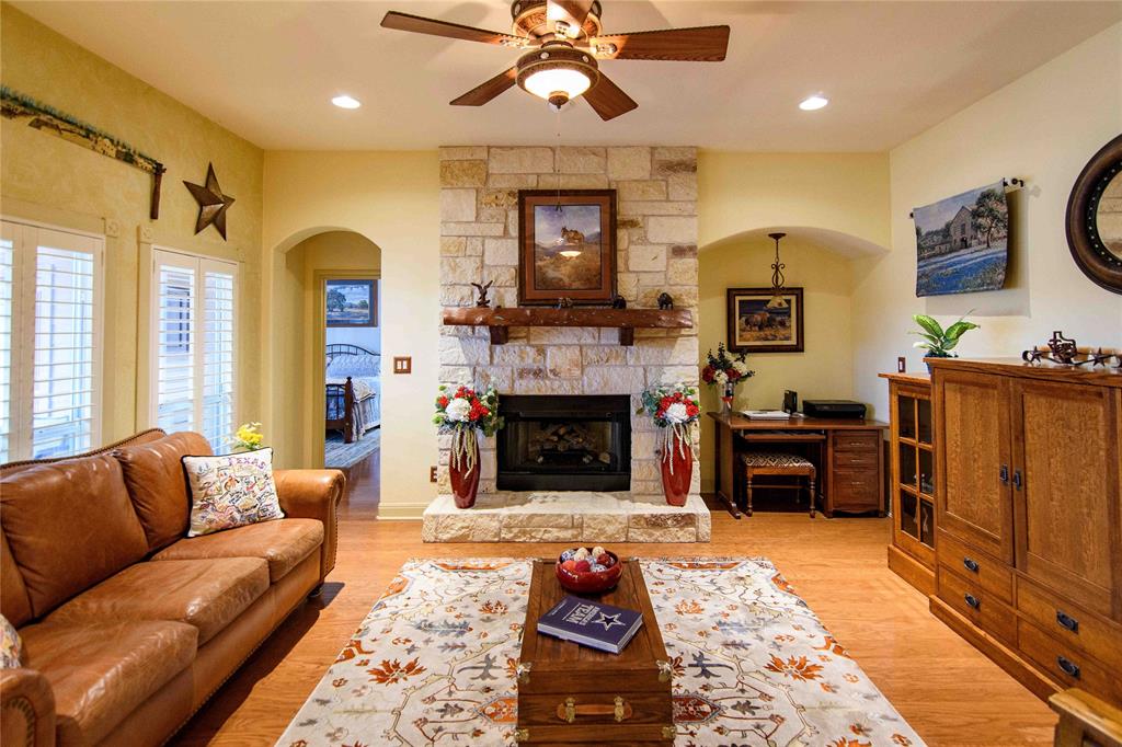 Immerse yourself in the beautiful Texas Hill Country along State Park RD 4 in Burnet, TX one hour northwest of the state capital! Opportunities to own a 30-acre retreat like this don’t come along often. Numerous large live oaks greet you at the front gate, line the approximate 800’ driveway, and surround the south and east sides of this warm inviting custom home. Enjoy peaceful outdoor living on a covered front porch which surrounds three sides of the front of the home or on the back porch as you watch deer & other wildlife in the north pasture. Inside, many appointments such as plantation shutters throughout, varied textures on the walls and ceilings, a gas log fireplace, down to the leather embossed switch plates make this a true Texas home. This home consists of a beautiful living room, large kitchen with two pantries, two dining areas, a cozy family room, private owner’s suite, three additional bedrooms, two additional full baths, and big laundry/utility room. The sewing table in the 4th bedroom is excluded in the sale. A large garage and carport extending beyond the garage can accommodate all your vehicles. Outside, amenities include a 40’x40’ workshop, two wells, 2500-gallon water storage tank, 15 station sprinkler system, and new roof in 2021. The entire property is fenced & cross fenced into two pastures. The entire property has been cleared of cedar except for new saplings. A wildlife tax exemption is in effect. Park RD 4 is owned by the Texas Parks & Wildlife Department. A non-transferrable driveway license must be obtained from the TPWD. Make an appointment today to see this Texas Hill Country gem.