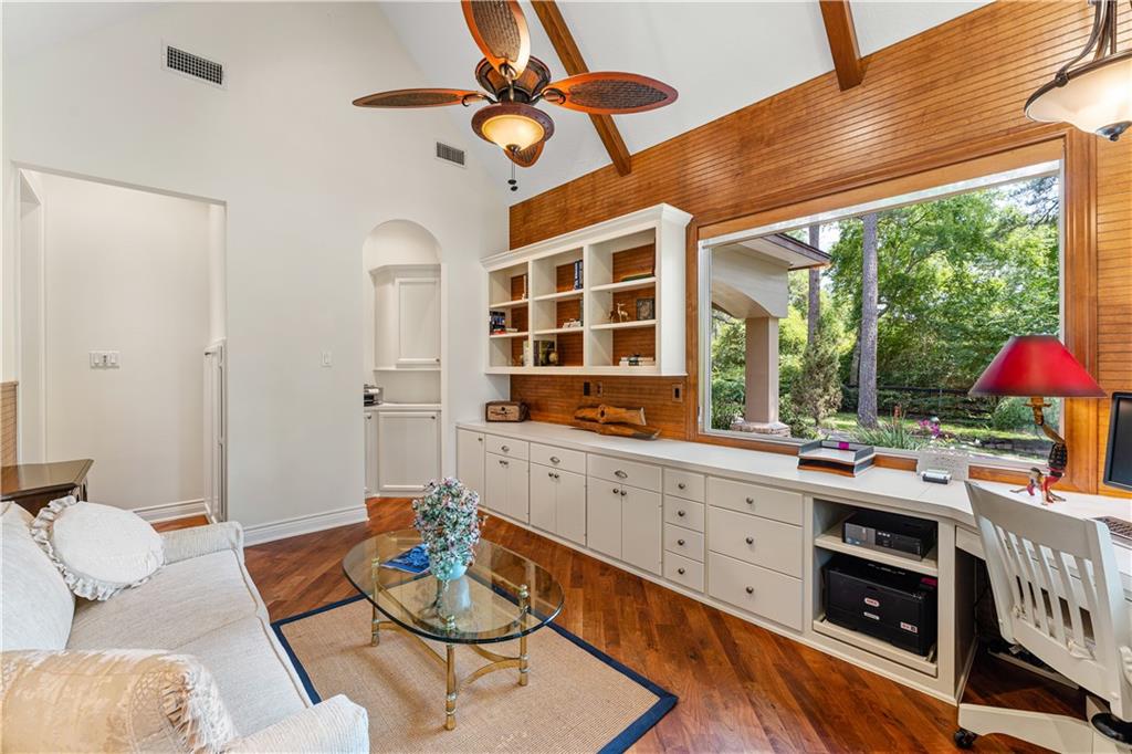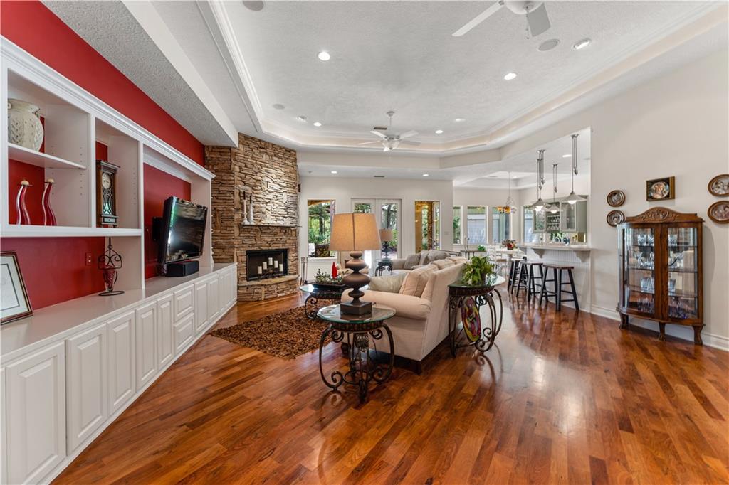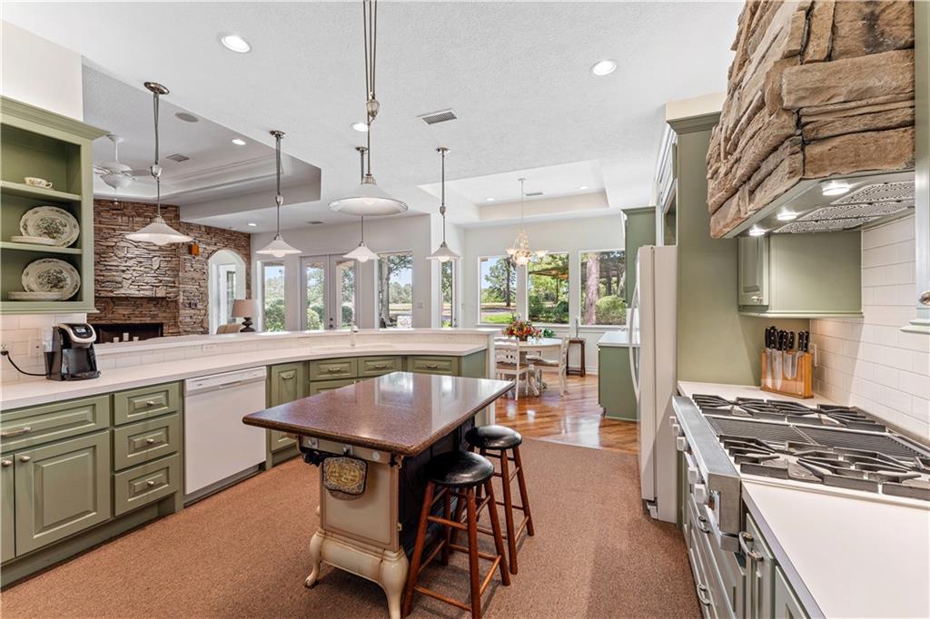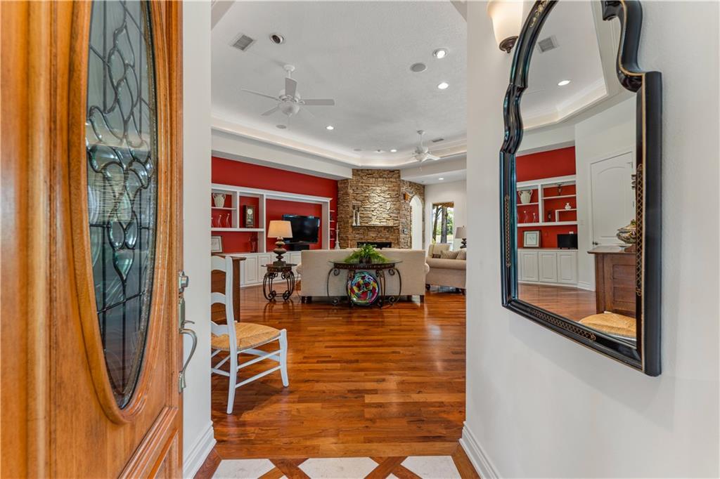 | Interior Features | Bookcases, Breakfast Bar, Built-in Features, Ceiling Fan(s), Beamed Ceilings, Tray Ceiling(s), Granite Counters, Laminate Counters, Crown Molding, Double Vanity, Gas Dryer Hookup, Entrance Foyer, High Speed Internet, Kitchen Island, Low Flow Plumbing Fixtures, No Interior Steps, Open Floorplan, Pantry, Primary Bedroom on Main, Recessed Lighting, Sound System, Walk-In Closet(s), Washer Hookup, Wired for Sound | |