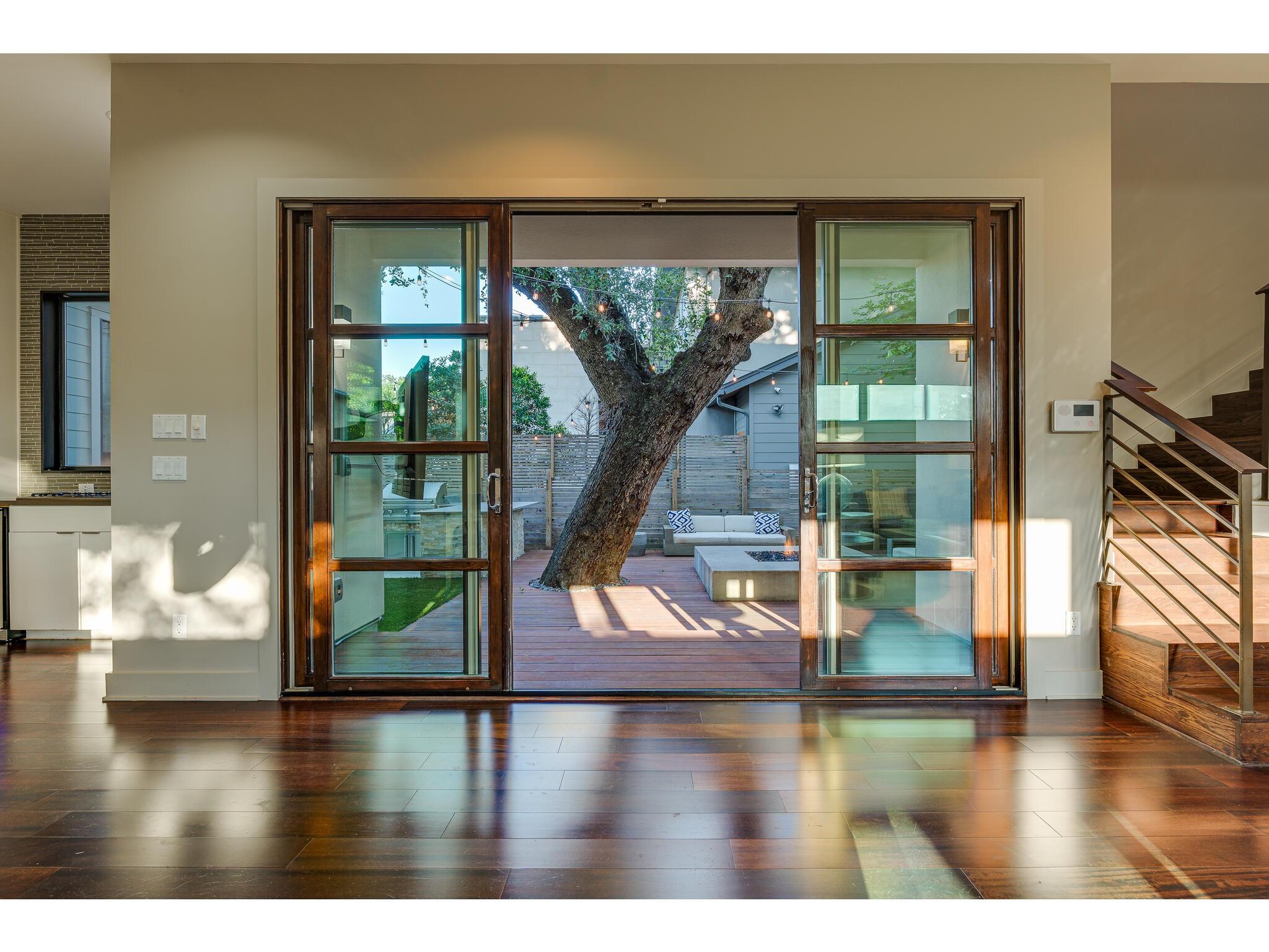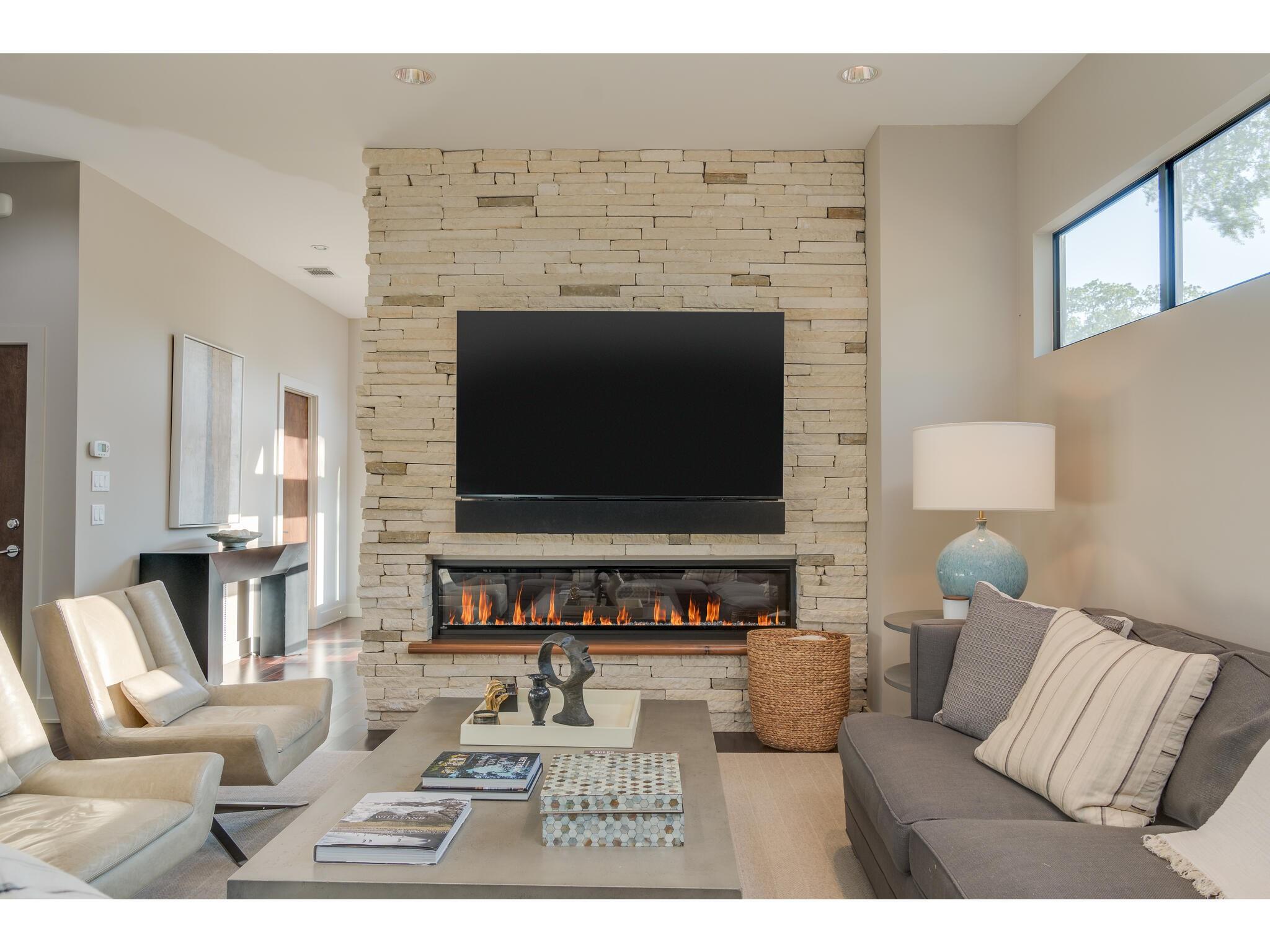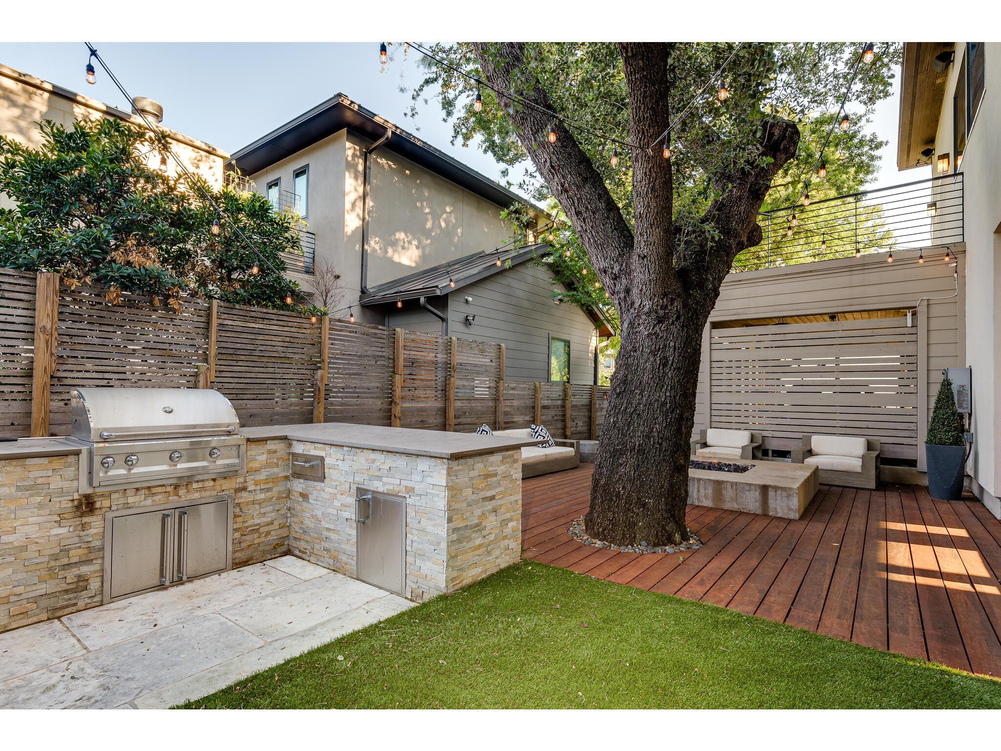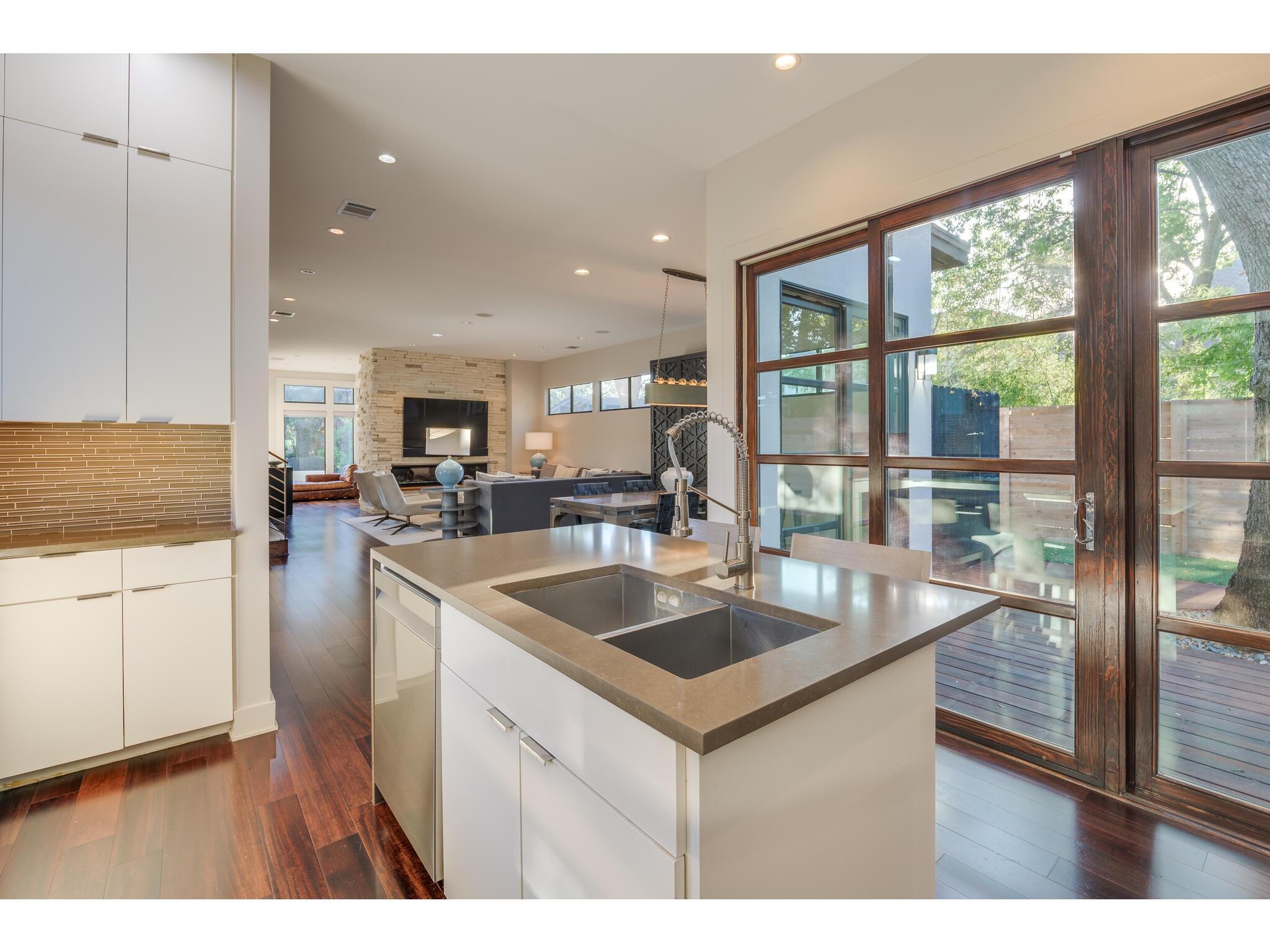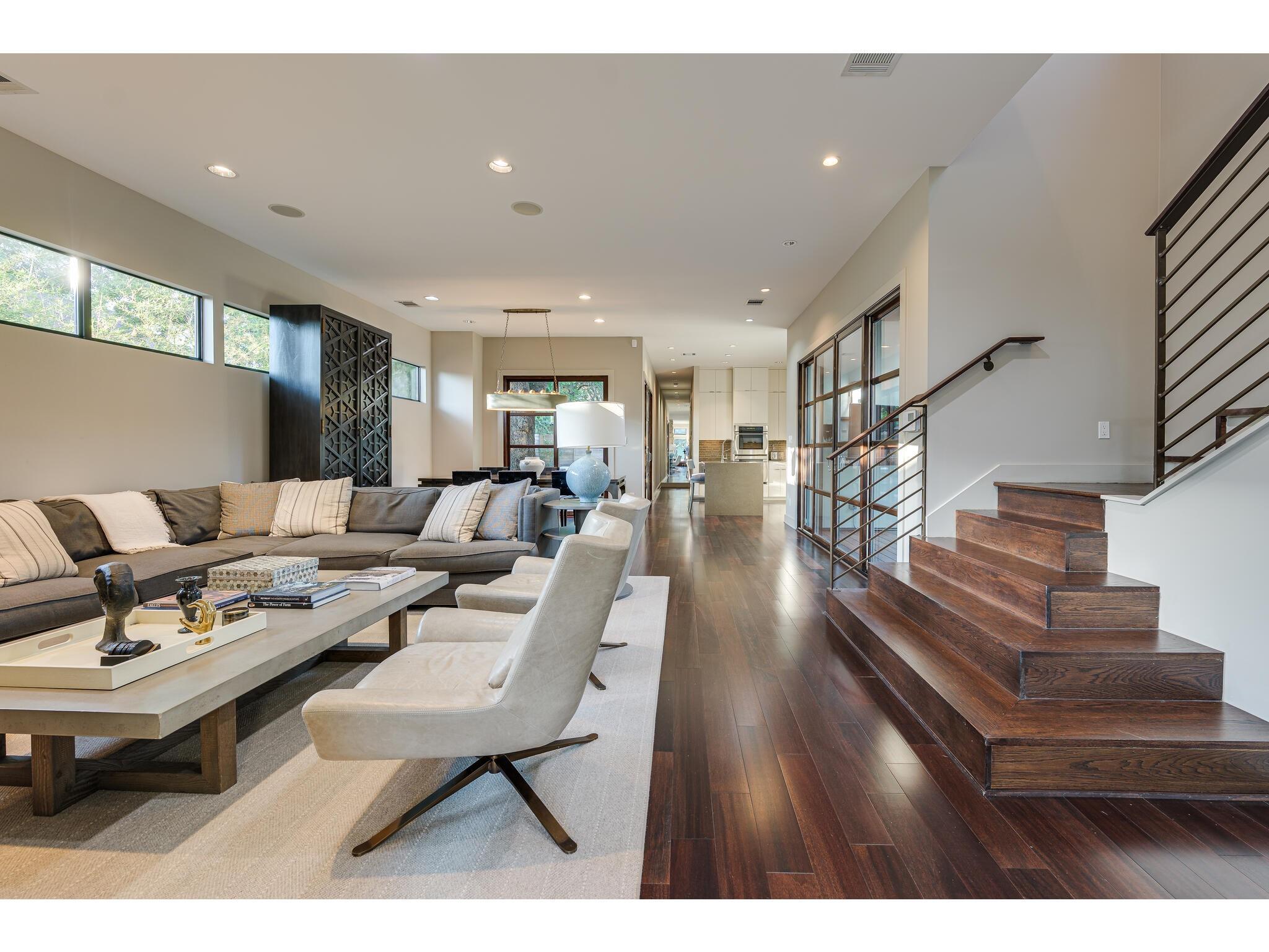 Stunning home beautifully situated in the Deep Eddy area, just west of Downtown Austin. Meticulously maintained with attention to detail throughout. As you enter an amazing open and spacious floor plan you can envision a multitude of entertainment options. Beautifully designed stone wall in foyer creates a warm welcome. Living area, the heart of the home, has a linear modern electric fireplace assuring a cozy and calm ambience. Interior is bathed in abundant natural light through expansive windows, high ceilings and beautiful wood flooring. Modern kitchen is a chef's delight, boasting sleek countertops, stainless appliances with wine refrigerator. Kitchen seamlessly opens to the dining area, making this amazing home ideal for hosting dinner parties and creating lasting memories with family and friends. Primary suite on main level opens to a spectacular backyard with a tranquil atmosphere ideal for reflection. Primary bath is a haven of relaxation. Double vanities with stone backsplash and rich wood cabinetry with built ins create a spa-like retreat. Sitting area upstairs with expansive windows is a great place to unwind. Large work space on 2nd floor can be used for office or study. 2 bedrooms upstairs with large closets perfect for guests or family. Glass sliding panel doors in living and primary bedroom effortlessly connect the indoors to the outdoors. Decking around mature oak trees enhance the natural beauty of the backyard landscape resulting in a harmonious blend of wood and nature. Spectacular outdoor living areas that illuminate at night with a sparkling swimming pool and spa, grill area and outdoor seating around an inviting fire pit. Large deck upstairs has room for additional seating ideal for gatherings. Walking distance to Deep Eddy, Zilker Park, hike and bike trails, restaurants, Lions Municipal Golf Course, modern HEB store and much more. Close to O. Henry Middle School. Austin ISD