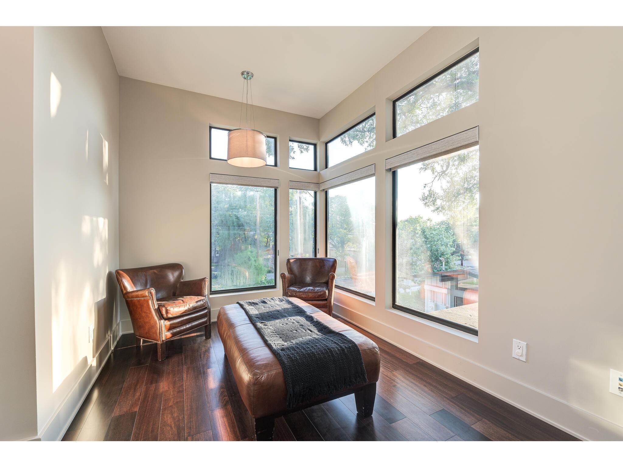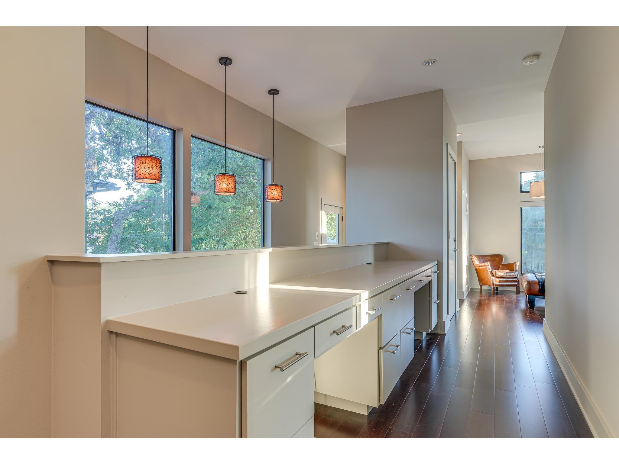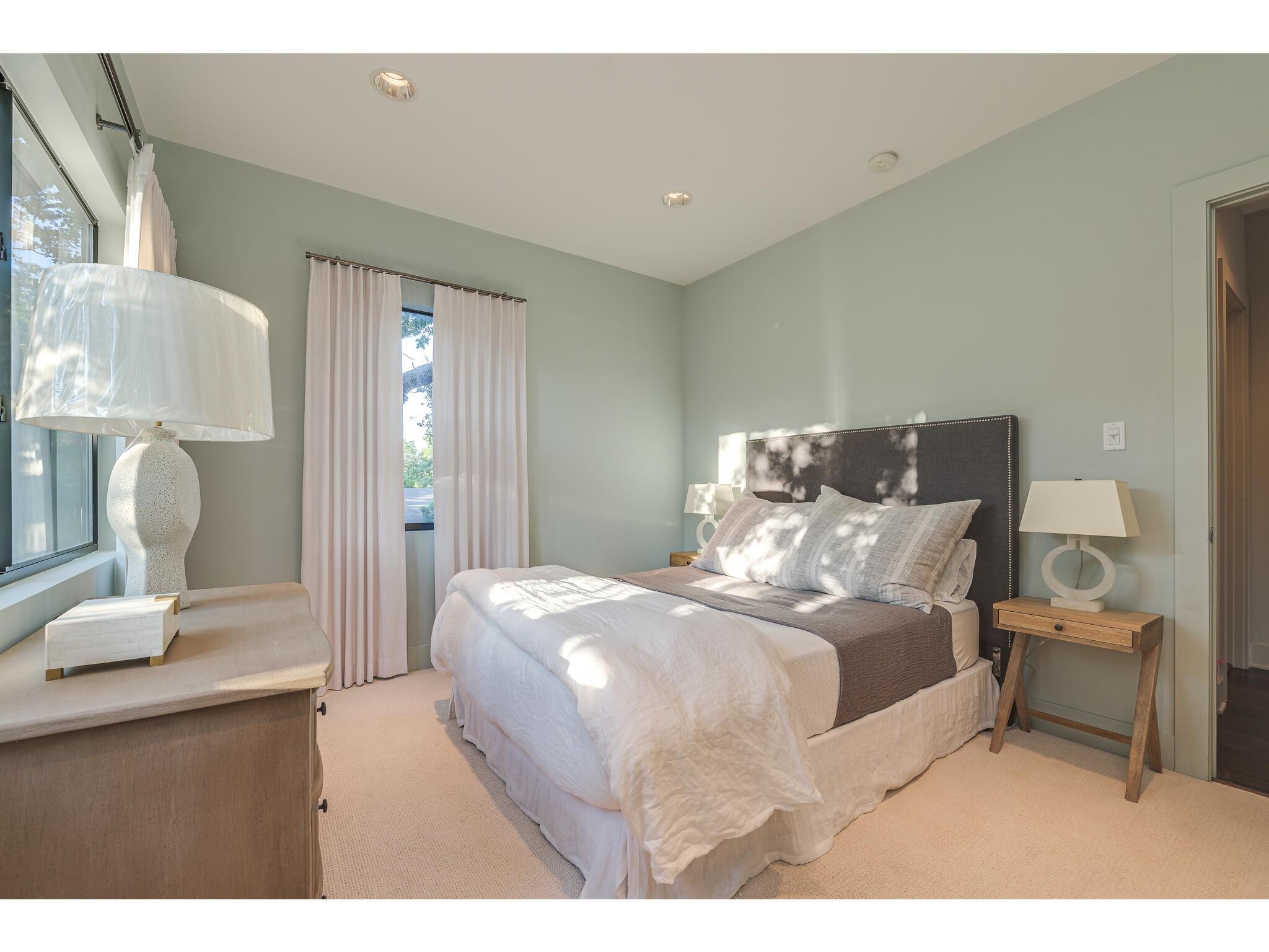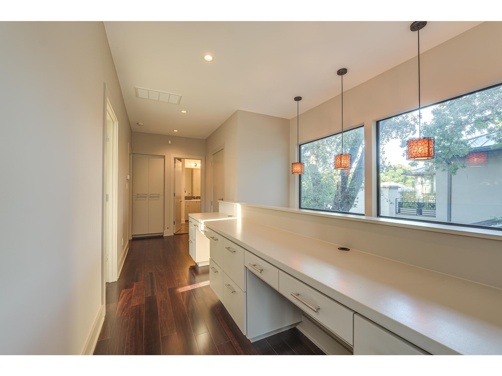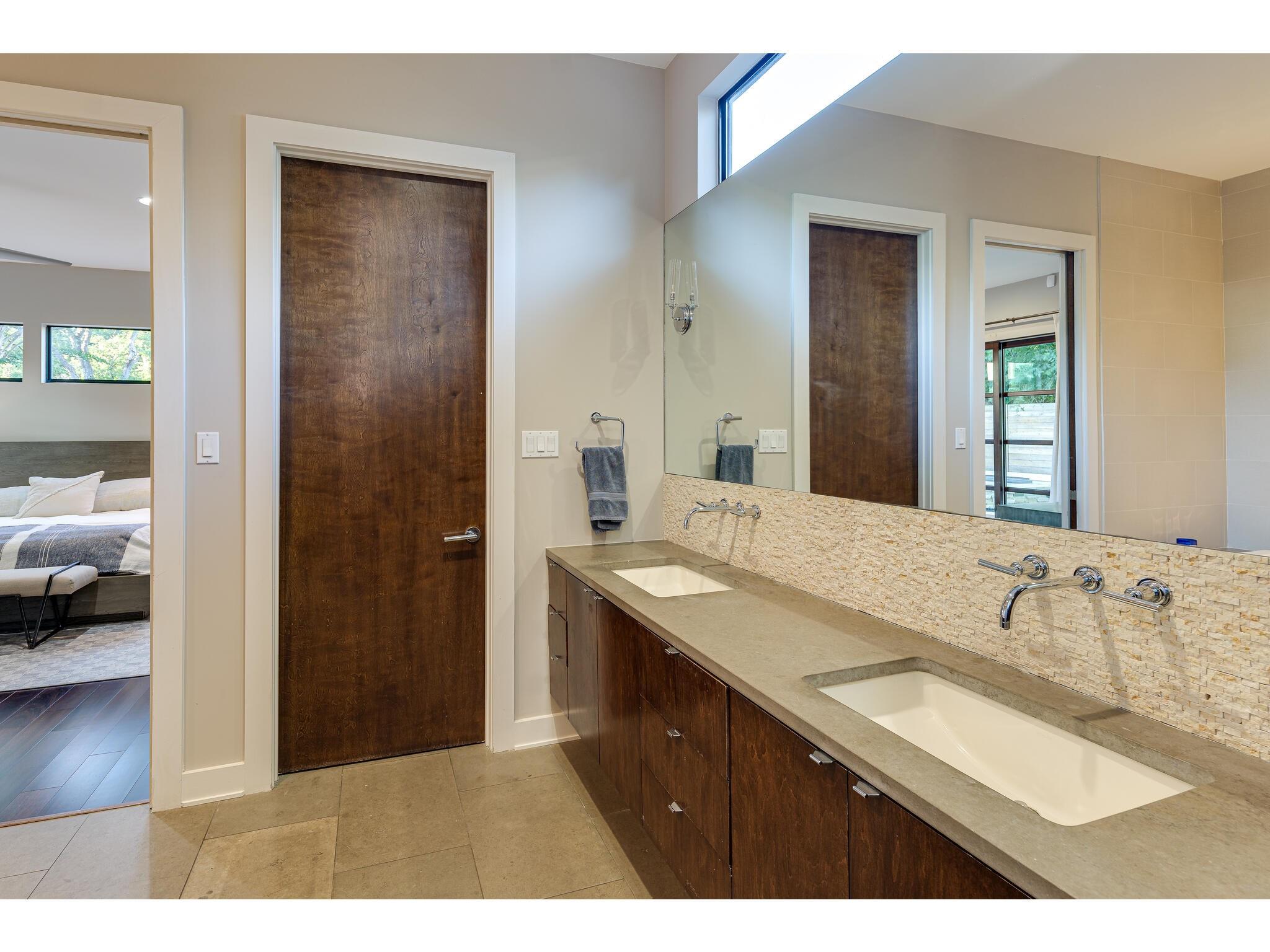 Stunning home beautifully situated in the Deep Eddy area, just west of Downtown Austin. Meticulously maintained with attention to detail throughout. As you enter an amazing open and spacious floor plan you can envision a multitude of entertainment options. Beautifully designed stone wall in foyer creates a warm welcome. Living area, the heart of the home, has a linear modern electric fireplace assuring a cozy and calm ambience. Interior is bathed in abundant natural light through expansive windows, high ceilings and beautiful wood flooring. Modern kitchen is a chef's delight, boasting sleek countertops, stainless appliances with wine refrigerator. Kitchen seamlessly opens to the dining area, making this amazing home ideal for hosting dinner parties and creating lasting memories with family and friends. Primary suite on main level opens to a spectacular backyard with a tranquil atmosphere ideal for reflection. Primary bath is a haven of relaxation. Double vanities with stone backsplash and rich wood cabinetry with built ins create a spa-like retreat. Sitting area upstairs with expansive windows is a great place to unwind. Large work space on 2nd floor can be used for office or study. 2 bedrooms upstairs with large closets perfect for guests or family. Glass sliding panel doors in living and primary bedroom effortlessly connect the indoors to the outdoors. Decking around mature oak trees enhance the natural beauty of the backyard landscape resulting in a harmonious blend of wood and nature. Spectacular outdoor living areas that illuminate at night with a sparkling swimming pool and spa, grill area and outdoor seating around an inviting fire pit. Large deck upstairs has room for additional seating ideal for gatherings. Walking distance to Deep Eddy, Zilker Park, hike and bike trails, restaurants, Lions Municipal Golf Course, modern HEB store and much more. Close to O. Henry Middle School. Austin ISD