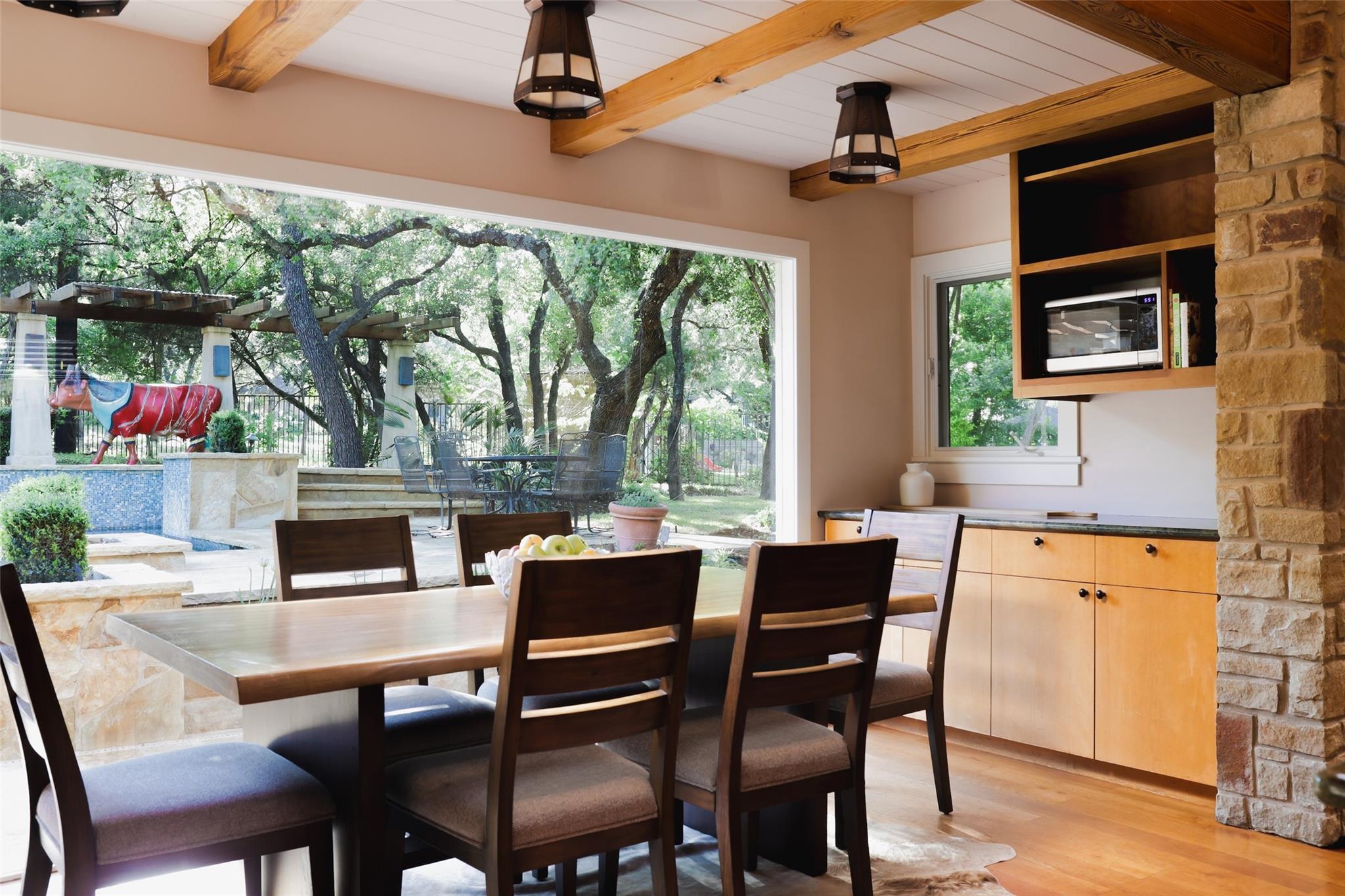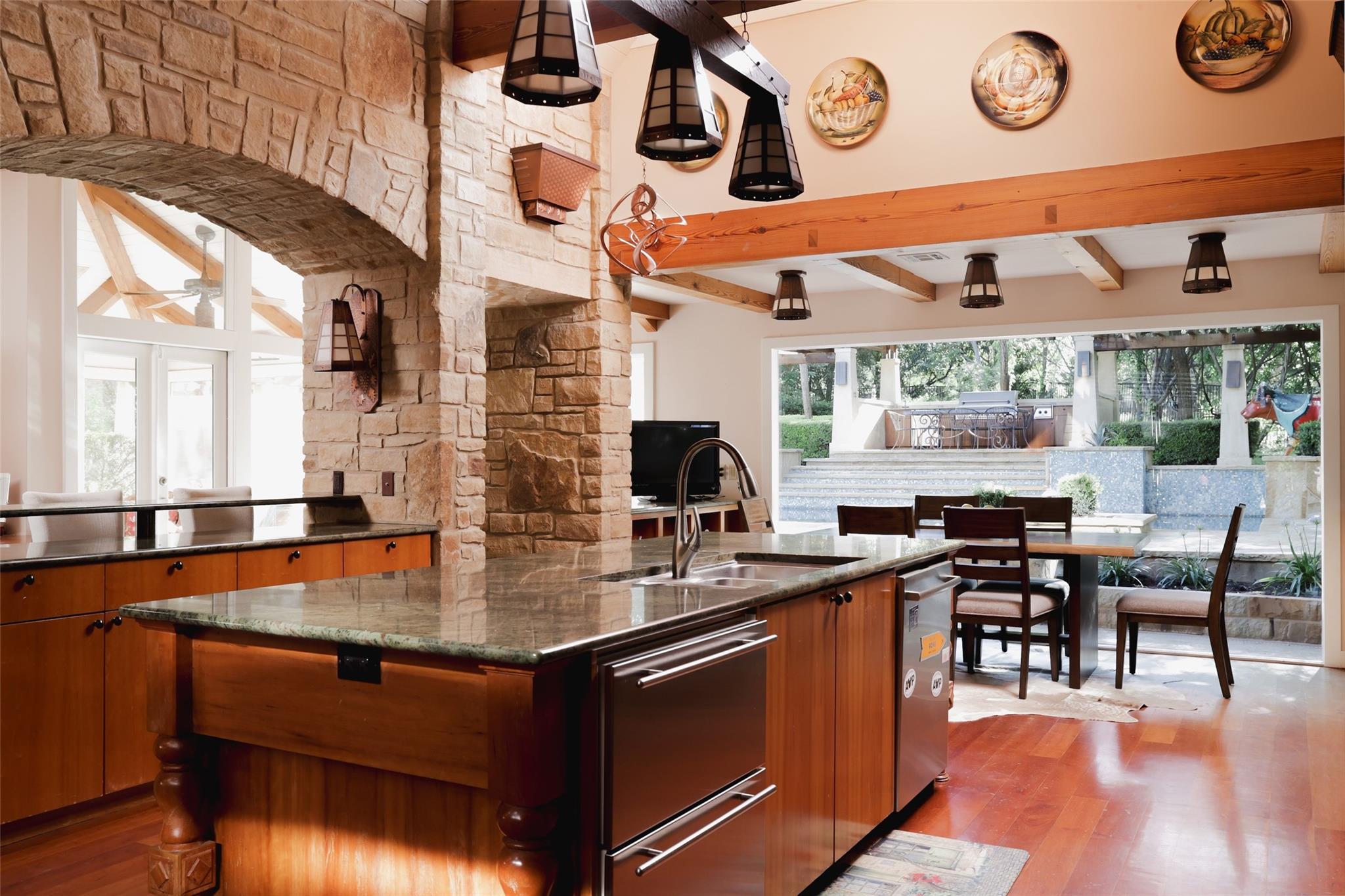 | Interior Features | Bar, Bookcases, Breakfast Bar, Built-in Features, Ceiling Fan(s), Beamed Ceilings, High Ceilings, Vaulted Ceiling(s), Chandelier, Double Vanity, Eat-in Kitchen, Entrance Foyer, Interior Steps, Kitchen Island, Multiple Dining Areas, Multiple Living Areas, Pantry, Primary Bedroom on Main, Recessed Lighting, Storage, Two Primary Closets, Walk-In Closet(s), Wet Bar | |