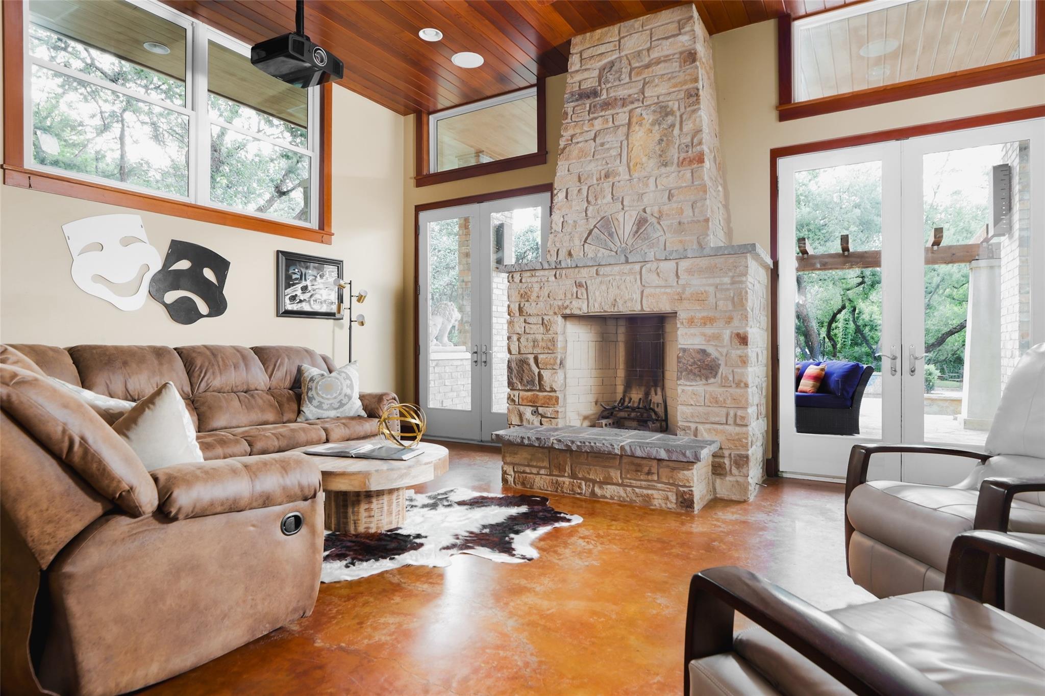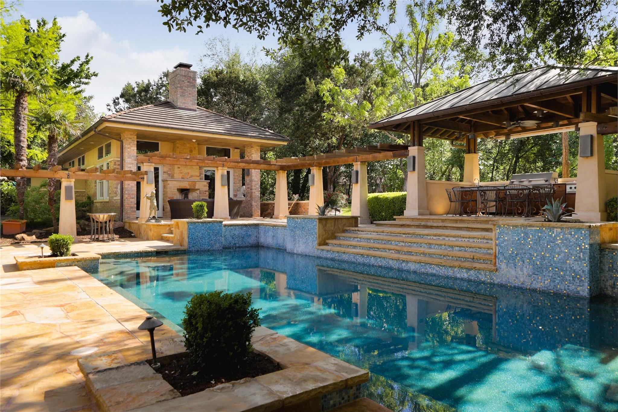 4230 Hidden Canyon Cove is tucked away in a private neighborhood off Westlake Drive near the Austin Country Club. As you wind down the tree lined street, you will pass original estates and many tasteful remodels. At the end of the cul-de-sac, you will arrive to an expansive 1-acre homesite, surrounded by lush landscape, beautiful oaks --- a serene retreat in one of Austin’s most prestigious neighborhoods. Step inside to discover a well-designed home full of timeless charm. The heart of the home lies in the living room, featuring soaring ceilings, wood paneled walls, a gorgeous brick fireplace, and abundant natural light that fills the space with warmth and vitality. Just off the living room is the gourmet kitchen awaiting the culinary enthusiast, complete with high-end appliances and granite countertops, making it the perfect setting for hosting gatherings and creating culinary masterpieces. Adjacent to the kitchen is a planning desk or homework room along with a beautiful screened in porch, perfect for enjoying your morning coffee or an evening glass of wine. On the main level you will find a sprawling primary suite, boasting generous proportions and ready for you to make it your own. Surrounded by large windows and offering picturesque views of the backyard oasis, this room exudes a sense of tranquility and serenity. The spacious bathroom, a true retreat for relaxation and rejuvenation, is also ready for your personal touches —featuring his and her closets, a double vanity, and a walk-in shower and soaking tub. Outside, the expansive backyard beckons with its sparkling pool, lush landscaping, and ample space for outdoor entertaining. Stepping inside the guest casita, you are welcomed into a room adorned with a fireplace, creating a warm and inviting ambiance for relaxation and socializing. Additionally, the second room has been thoughtfully converted into a game room/gym. This versatile space provides the next owner with an array of opportunities.