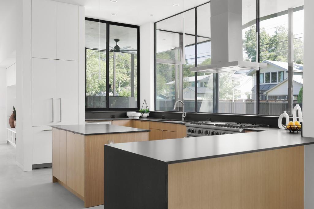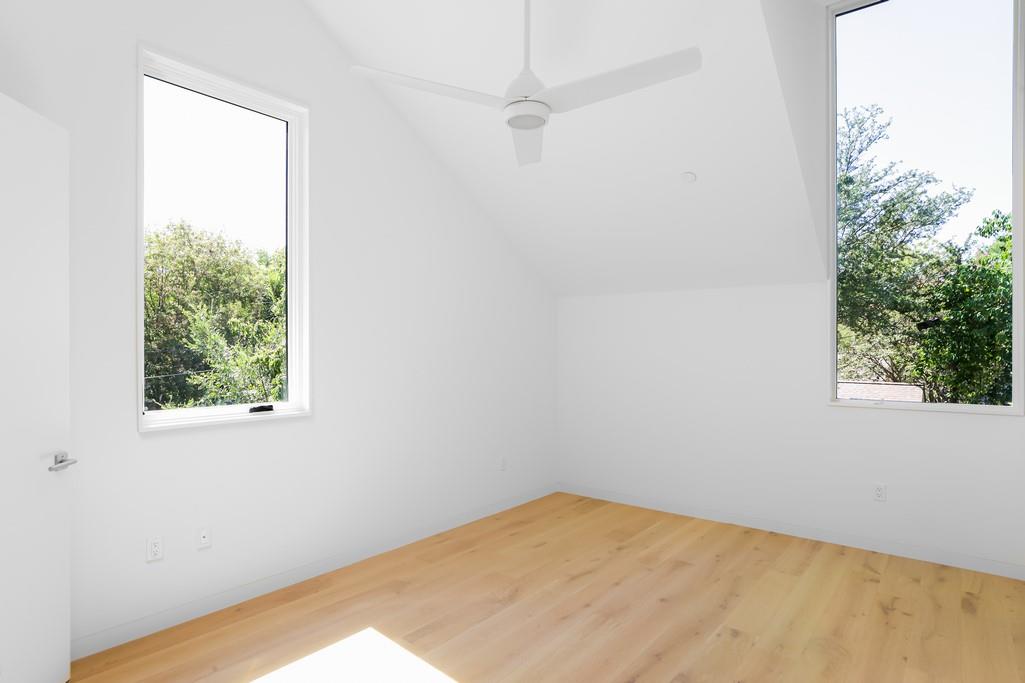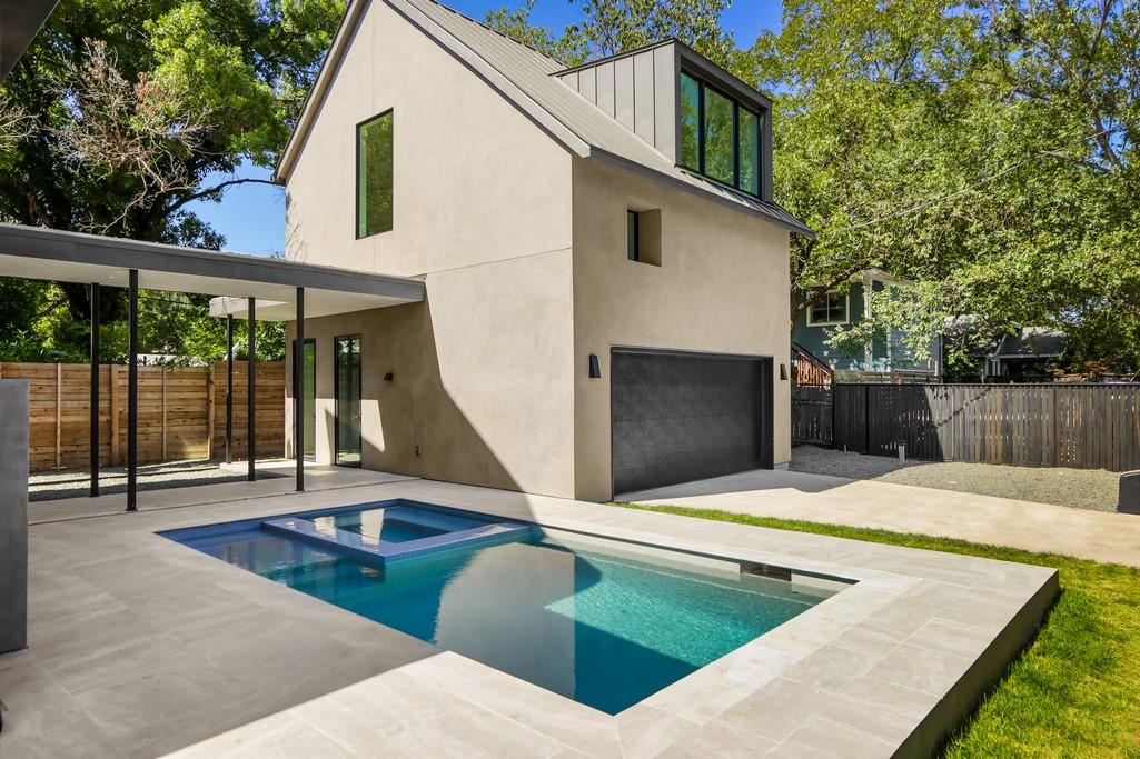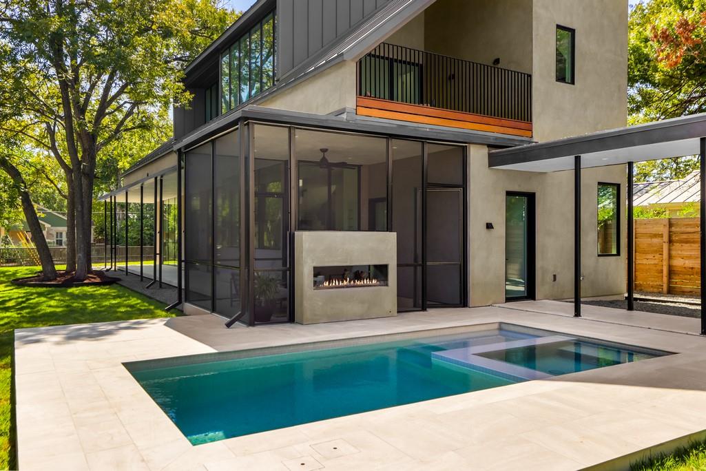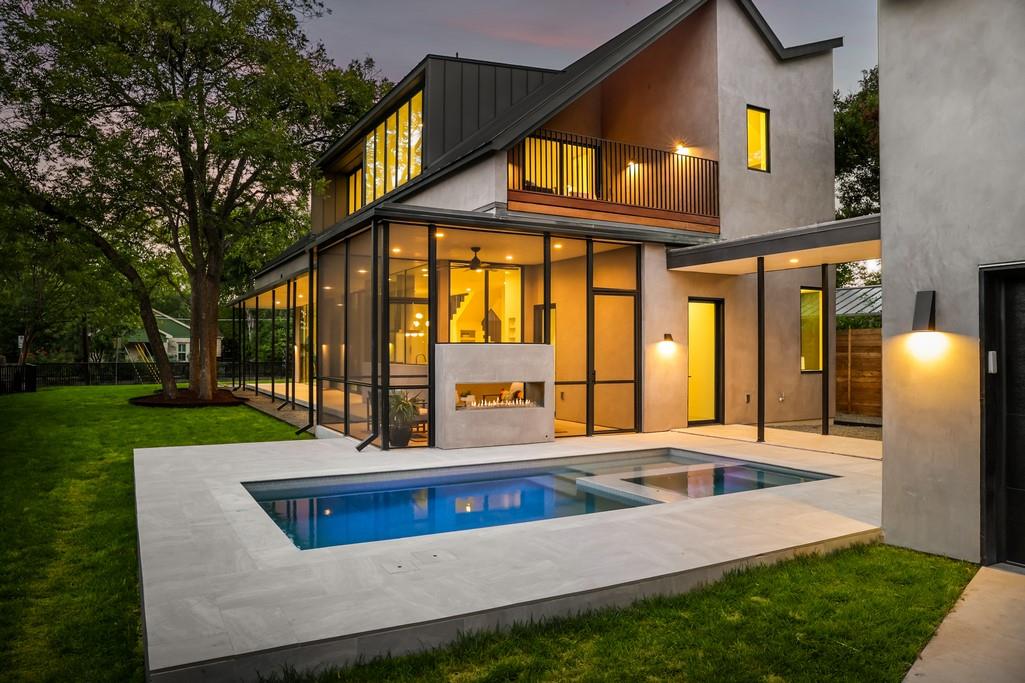 Tucked amid a gently-sloped canopy of pecan trees in one of Austin’s most iconic & diverse neighborhoods, this Bryker Woods retreat culminates in an exceptional, environmentally-conscious residence that caters to every creature comfort. Inside, the minimalist style is complemented by loads of natural light. Soaring ceilings & floor-to-ceiling windows invite the beauty of the natural surroundings to become one with the sprawling, sun-kissed interior. Outfitted for a culinary enthusiast, the chef-worthy kitchen showcases top-of-the-line Thermador/Viking appliances, custom Rift-Sawn White Oak cabinetry, pull-outs, soft-close doors/drawers, quartz countertops, wine fridge & large pantry with appliance garage. Nested inside the protected vaults of the roof, the entire 2nd floor emanates the magical comfort of an undiscovered treehouse hideaway. The owner’s retreat is a sanctuary–inherently connected to nature through its wall of windows & towering cathedral-style ceilings. Its private balcony overlooks the pool/outdoor entertaining area, while the ensuite includes floating cabinetry, wall-mounted faucets, standalone tub, large shower with dual heads & large walk-in dressing room with high-end closet system. The secondary bedrooms are spacious, with tall windows & soaring ceilings. Each includes an ensuite & walk-in closet with organizers & full bath. Downstairs, the screened-in porch comes complete with dual-sided fireplace, kitchen pass-through & wired for outdoor TV. The sparkling pool & heated spa are nestled privately within a low-maintenance porcelain deck on the lush grounds. Accessed via a separate entrance, the guest quarters boast a fully-equipped studio-style living area. The 2-car detached garage comes complete with EV charger, commercial-grade epoxy flooring finish, side-mounted garage door opener & heater. Come home to your personal oasis–one that embodies our interconnectivity to nature. From award-winning architect, Murray Legge and Green Places Inc.