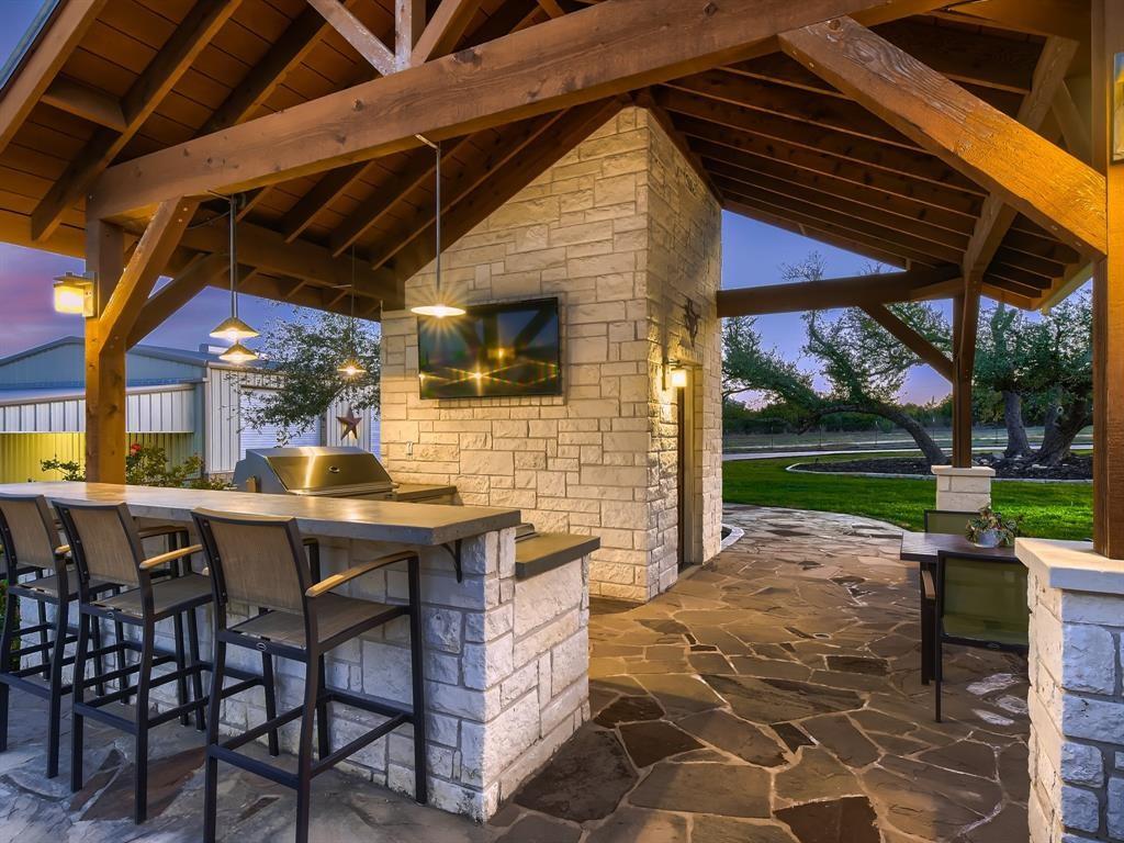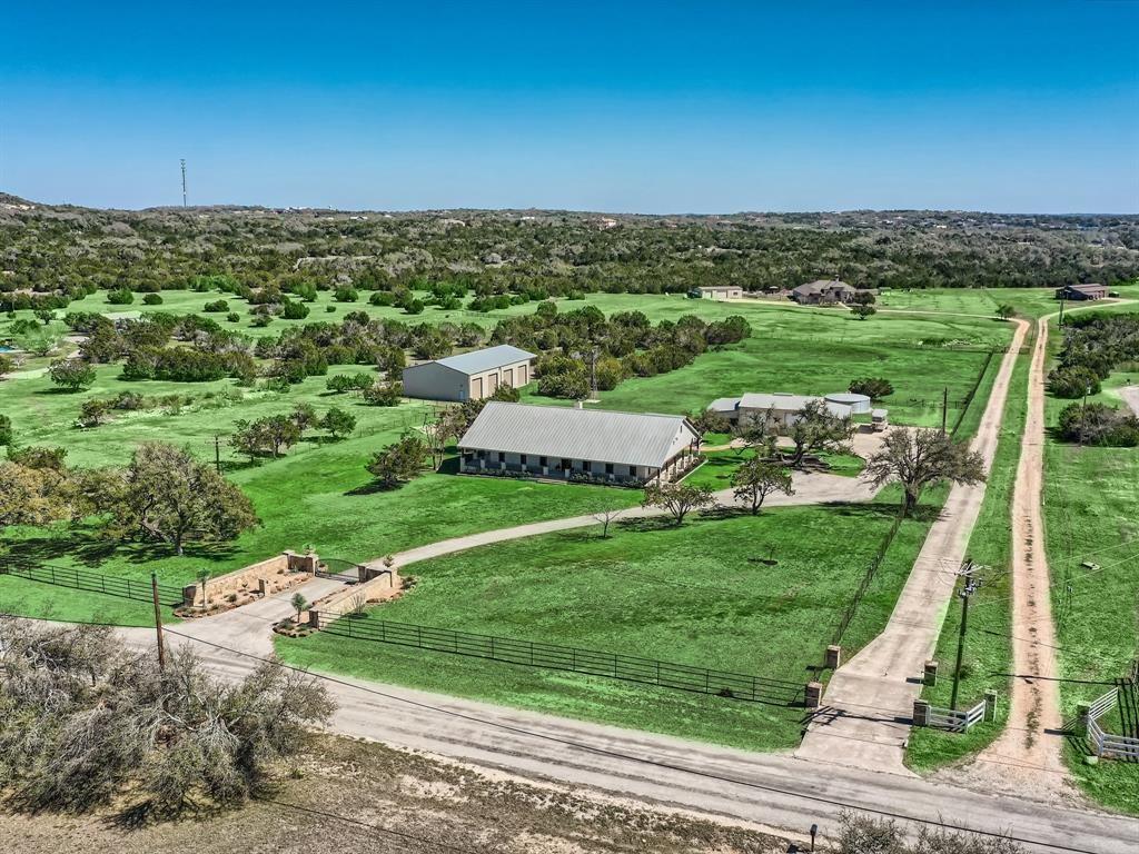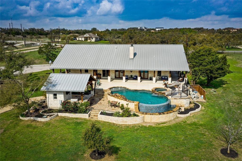 Welcome to a true Texas Gentleman’s Ranch that is a lifestyle property like no other. Enter the 11 acres through a grand, gated, rock entry where you're immediately met by huge oak trees, well-manicured grounds, lush grass and pastures. A paved drive leads you to a nicely appointed custom, Tx Ranch Style home with an inviting, covered, wrap around porch featuring limestone and rough-cut cedar columns. This Ranch Style home features 4 BD/ 3.5 BA, wood flooring, soaring 18 ft beamed ceilings and plenty of natural light with beautiful hill country views from every window. Chefs’ kitchen features double ovens, gas stove and high-end stainless-steel appliances. Dining and living room feature designer chandeliers that perfectly fit the space and highlight the 18 ft ceilings. The centerpiece of the living room is a grand limestone fireplace. Glass doors open to an outdoor entertainers paradise! The expansive outdoor living area is truly one if a kind, featuring a negative edge, resort style pool, (with heating capability), hot tub, and rock waterfall with a deck mounted slide. Relax around the large stone fire pit, custom built outdoor kitchen, bar, tv and flagstone sundeck. Enjoy the breeze while overlooking the Tx hill country views, even an authentic Tx windmill. Property also includes a 4,000 sq ft indoor baseball facility/ sports court! Easily convert it to pickleball, soccer... Or something else! There is a 2,200 sq ft metal building/ garage space w/ roll up doors/ windows and passage doors. Property is well suited for horses, including a 1,600 sq ft shelter, stall, riding arena and tack room. There is also a 30K gal rainwater collection, Generac generator, well water storage tanks, irrigation system, and landscape lighting. Only 25 min to Austin, 10 min to Bee Cave, and right in the mix of hill country favorites like wineries, breweries, swimming holes and the Pedernales River. This is a truly special, unique, “lifestyle” property offering endless possibilities...