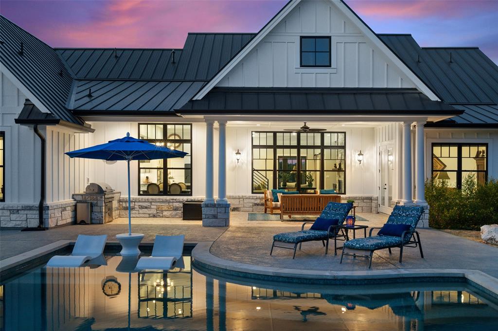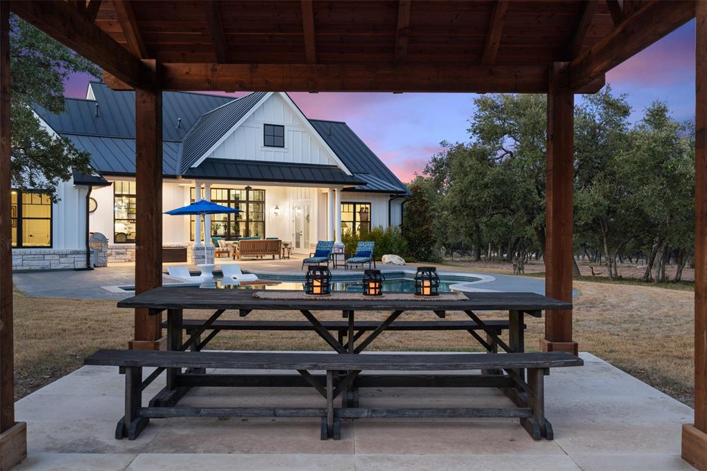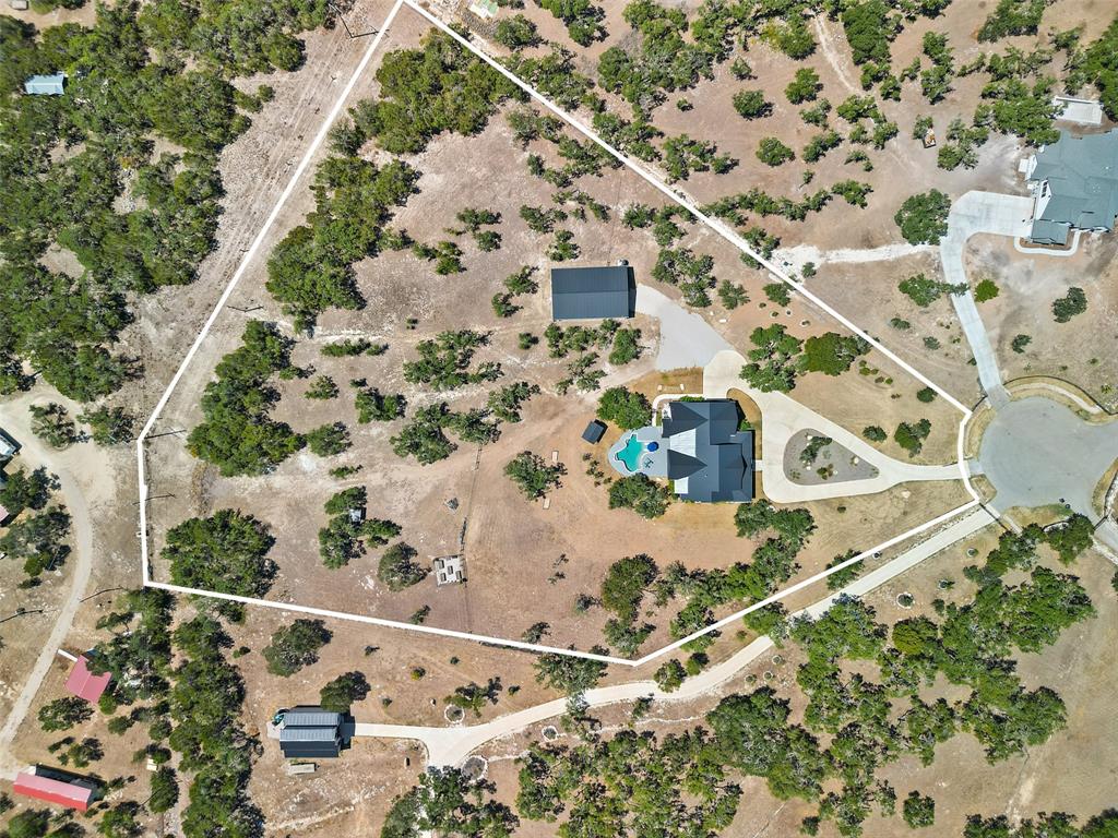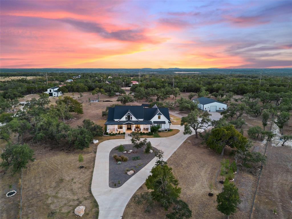 Welcome to Texas Hill Country living in the heart of Dripping Springs! A rare opportunity to own a private 5.047 acre gated estate, with a new modern farmhouse, large 40x60 metal barn, chicken coop, covered pergola, a one-of-a-kind Texas shaped pool, & more! Bring your horses as this lot is fully fenced & cross fenced, all usable land covered in mature oak trees. This stunning 2020 built home welcomes you with lush landscaping & an idyllic front porch, ideal for enjoying a slower-paced lifestyle. The floor plan is perfectly designed for comfortable living, entertaining, hosting guests, or accommodating family. Offering 4 bedrooms, 3.5 bathrooms, 3,947 sqft, high-end finishes throughout, smart storage options, luxurious living & sitting areas/office, an elegantly designed formal dining, to the grand chef's kitchen with an abundance of cabinet & counter space, plus modern black SS appliances, Ceasarstone counters, wine fridge, massive walk-in pantry, & butler's pantry. This kitchen is an entertainer's dream! Indulge in the cool pool views from the spacious primary suite that offers a spa-like bath with an oversized walk-in shower, dual vanities, & roomy walk-in closet. The home lives like a 1.5 story, with one bedroom, secondary living space, full bath, & secret playroom up. Large laundry with sink adjacent to mudroom/drop zone. Outdoor living & entertaining are made effortless with a large covered patio, a beautiful walk-out pool, outdoor kitchen with built-in gas grill, & a spacious yard with raised garden beds & deer proof fencing. Endless opportunities with the metal barn that offers a half bath, mini-split AC unit, 2 oversized ceiling fans, 220V separate from home, & a rain water collection for surrounding flower beds. See agent for additional features. Come enjoy the stars at night & country living with all of the modern conveniences including high-speed internet, nearby dining & entertainment, less than 30 minutes to downtown Austin. City water. DSISD schools!