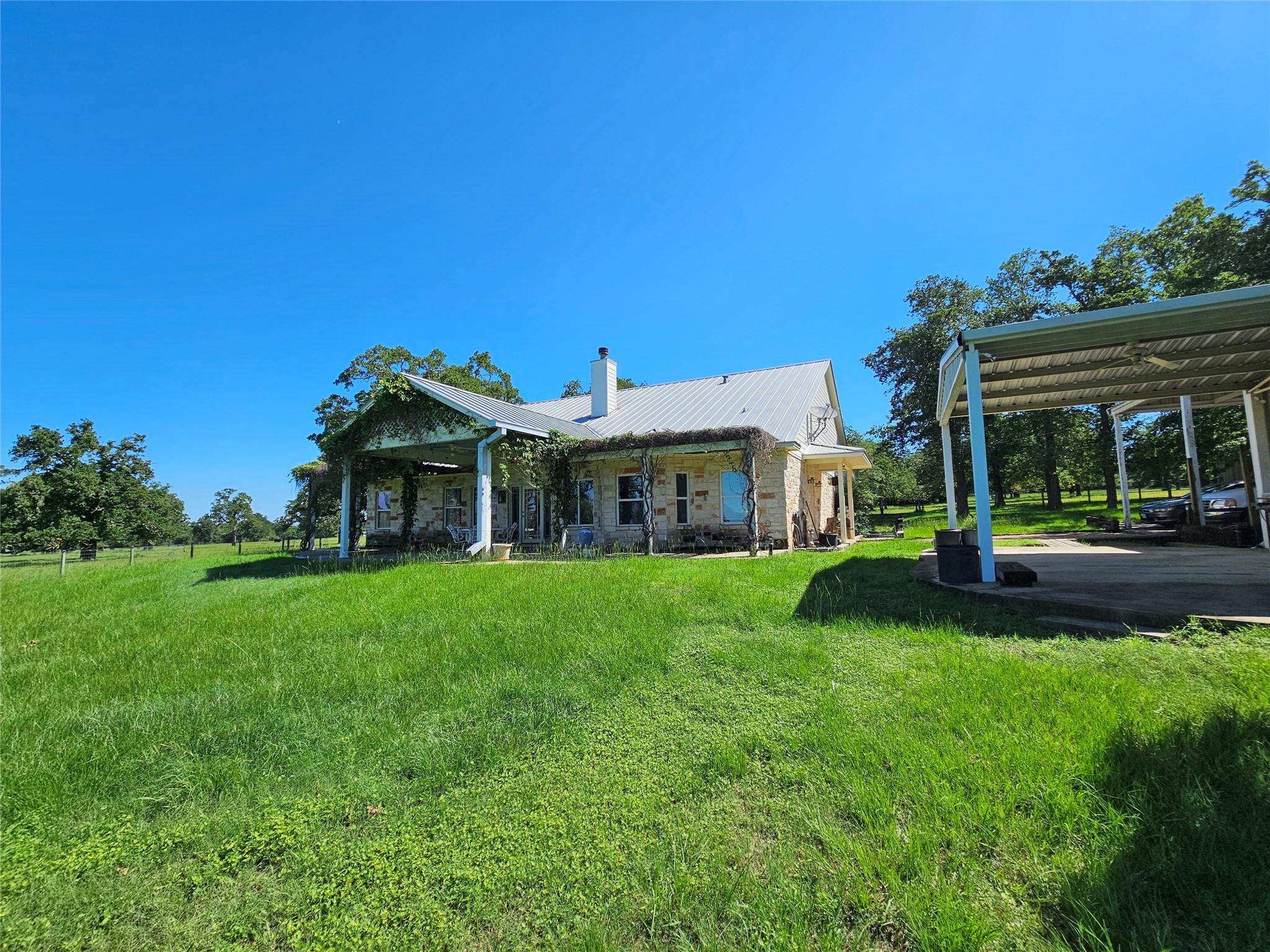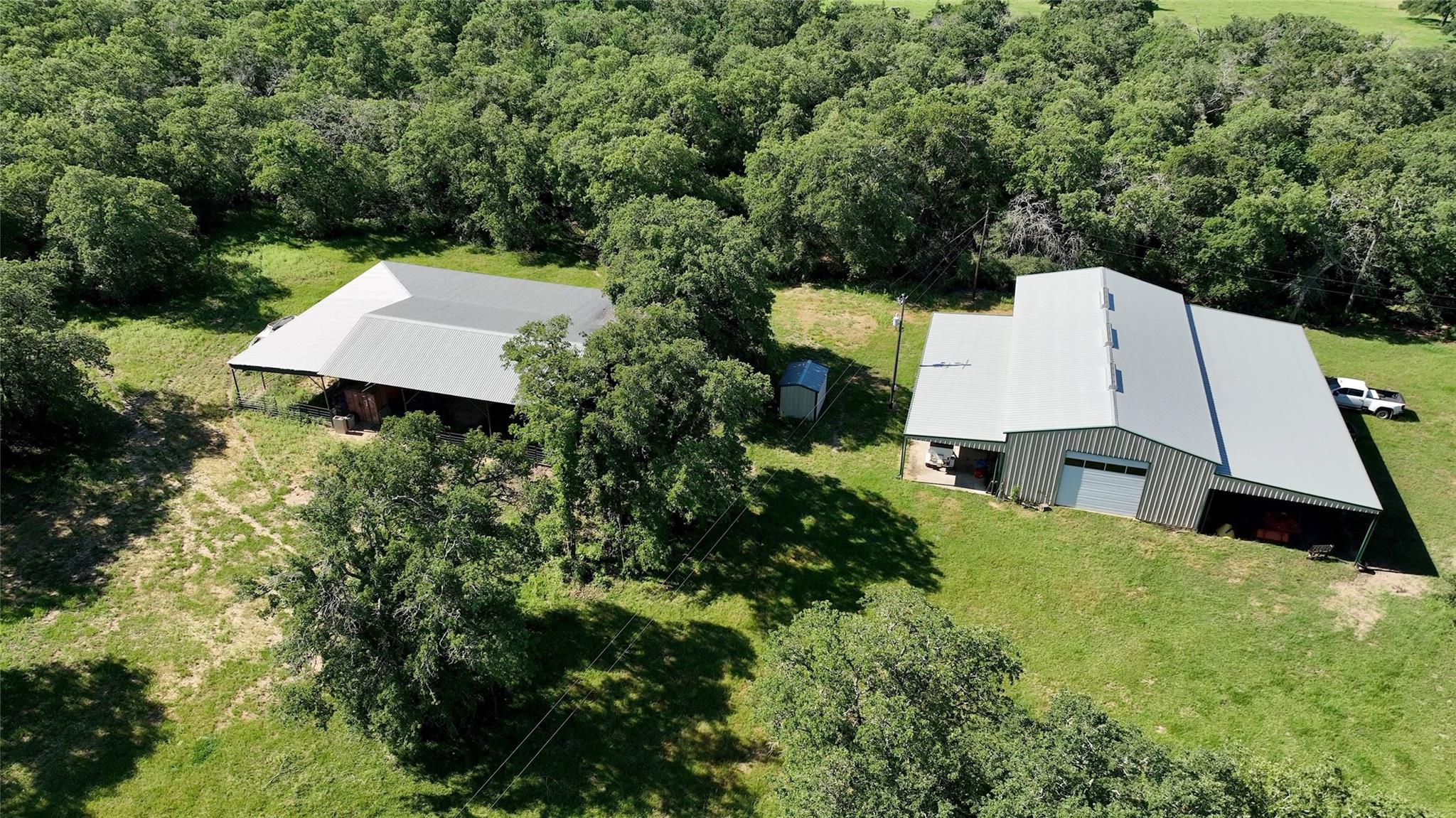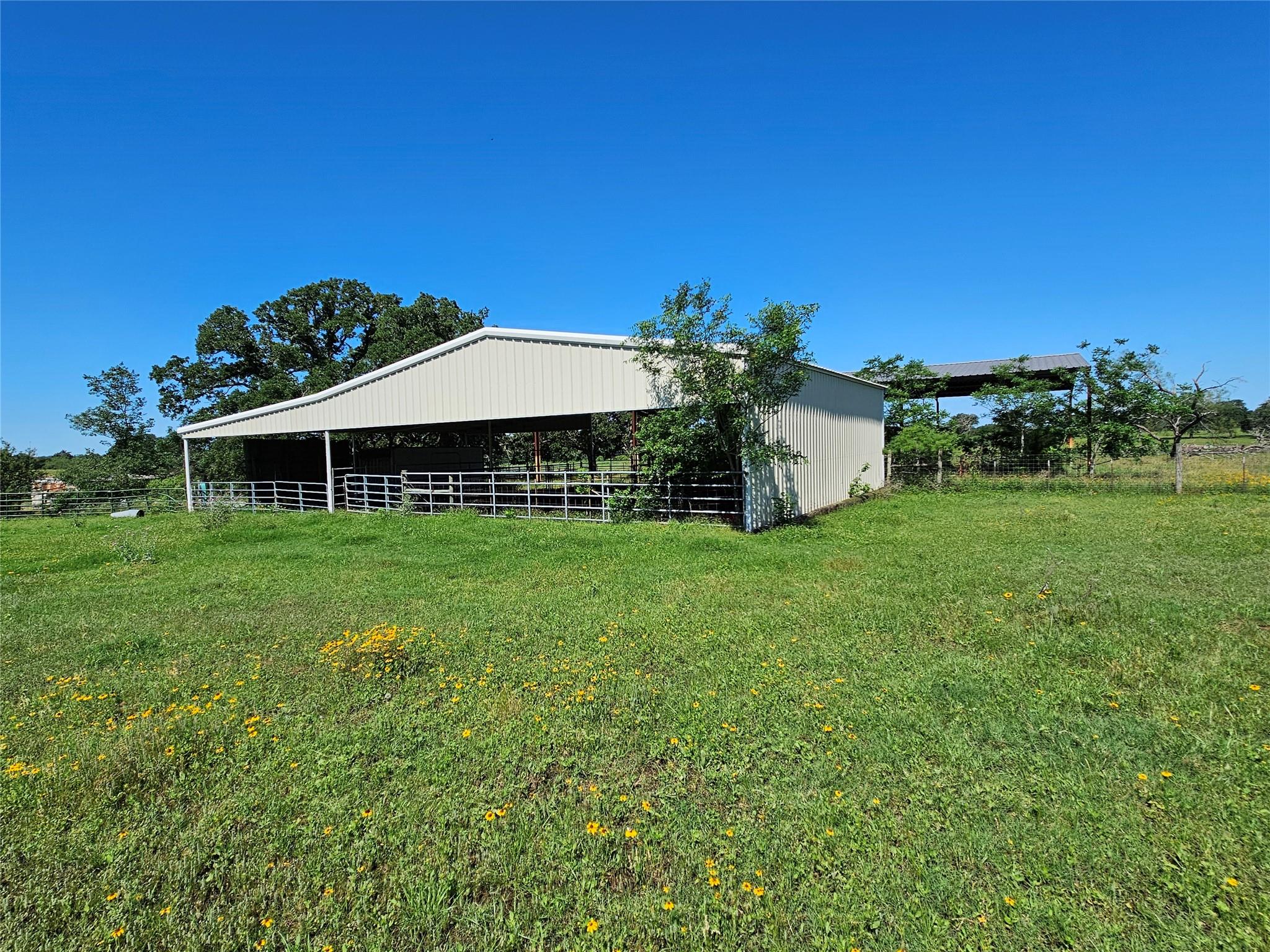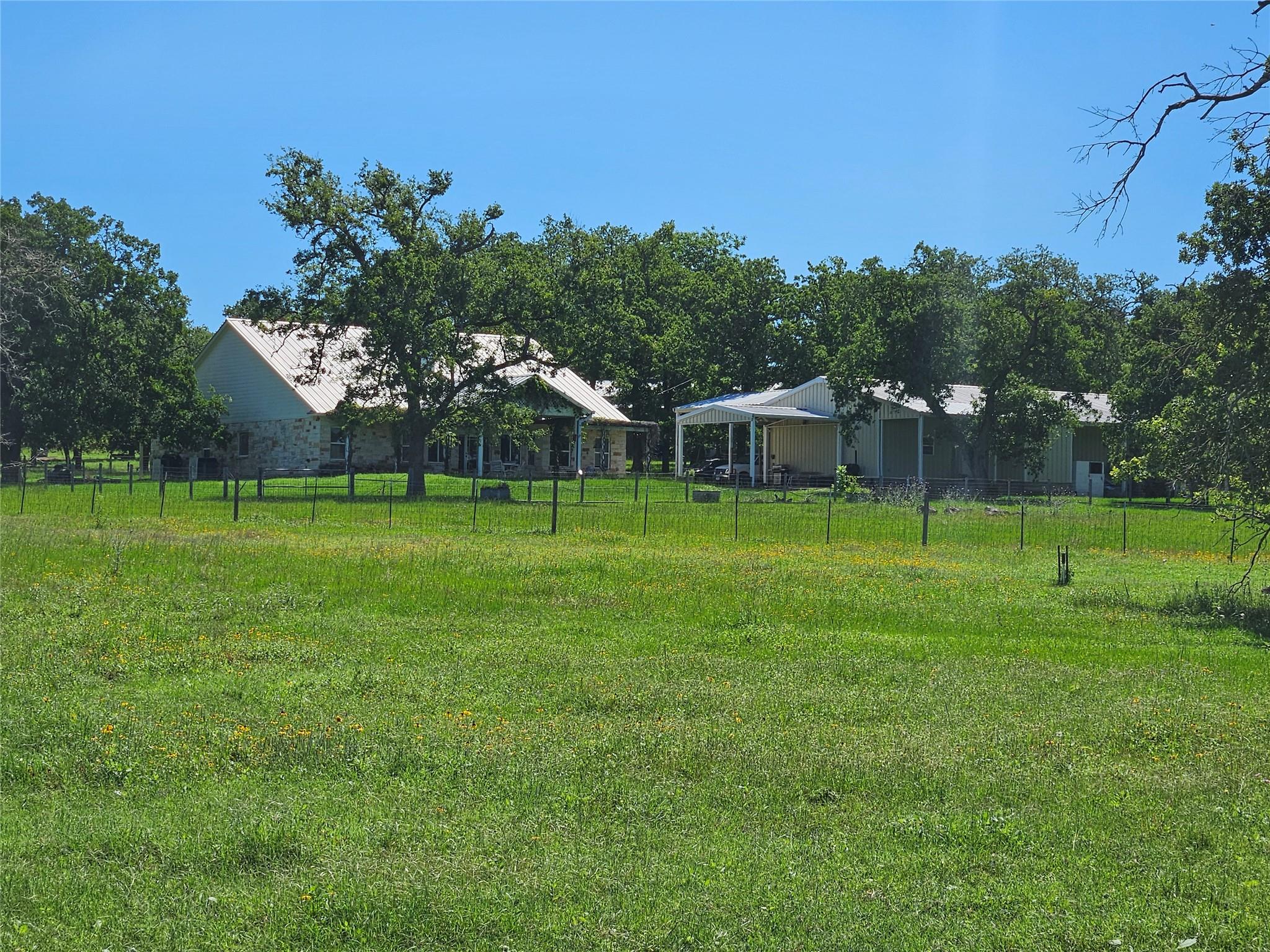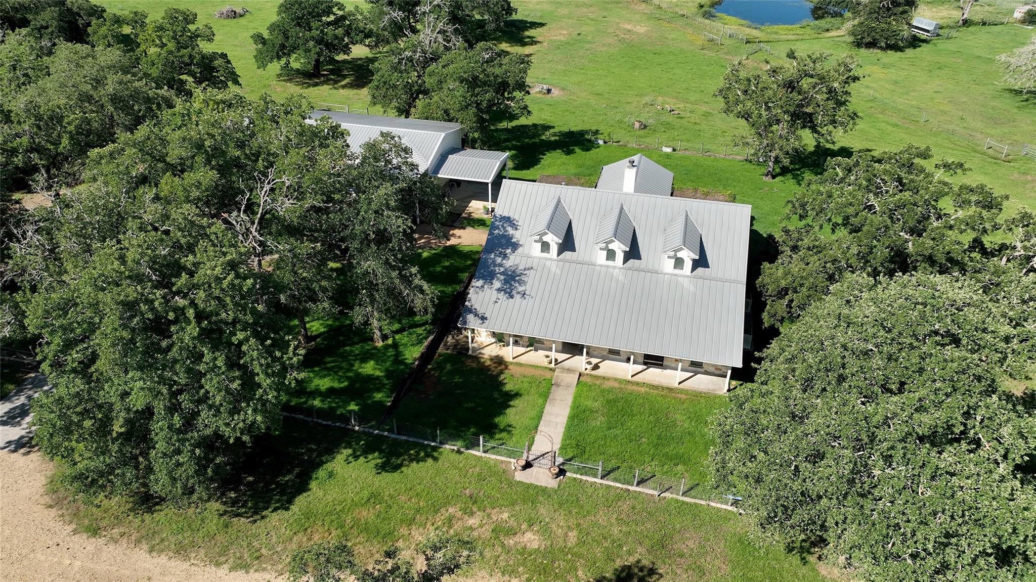Rare opportunity to own a really nice livestock operation, hidden by trees from the County Road is the Custom 3500sf home, 3 BR, 2.5 bath, large DR, garden room, 2 offices, open kitchen. Porches all around and large Oaks surround the house. The 3 bay garage and carport is adjacent to the house, with a 2400sf barn/shop just up the hill, shop has concrete floors and 30 shed roofs off of each side providing lots of covered storage. There is also a large equipment shed with 14' clearance for tractors or field equipment. West of the house is a water trap that 3 pastures are tied to for easy livestock gathering, the cattle working pens are in this trap as well as a 40x60 shed over holding pens and a 80x34 hay shed. There are 5 ponds for livestock and wildlife water, some are stocked for fishing. The ranch is approx. 20% wooded with the balance in coastal bermuda and native grasses. Wildlife in the area include Whitetail Deer, Wild Turkey, Hogs and a variety of small game. All of this is located within the Texas Triangle of DFW, Houston, San Antonio. Only 35 minutes from Bryan/college Station, 40 minutes to Temple or the new Samsung plant in Taylor. 125 acres of the 405 is across CR 237 and can be purchased separately. Check out MLS# 6969281