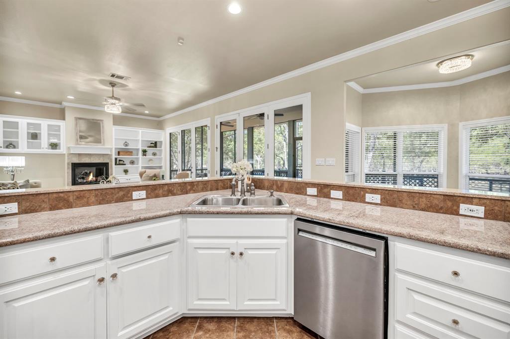Brimming with character, this custom Ruby Ranch home, refurbished in 2023, is just 23 miles from downtown Austin. Spanning 4+ acres, the grounds offer an estate feel. 3-car side entry garage offers an extra element of curb appeal and space. The striking entrance opens to views from every angle, with gracious hardwoods covering most of the main level. The entry opens to a spacious formal dining with stunning chandelier and a dedicated study. Upon entering the heart of the home, the open concept floor plan presents stunning views of the property, natural tones and living room built-ins that create a relaxing and beautifully appointed space perfect for recharging or hosting a gathering. Light and bright, the kitchen’s spacious design is a true entertainer’s delight featuring an easy flow with lovely granite, exceptional storage, butler pantry, and an open view of all the actions in living and oversized breakfast area! The breakfast nook is filled with natural light and lovely nature views of the backyard. An exceptional main level living space is the screened in porch off living room, offering the sights and sounds of nature. The 2023 built Trek deck off the screened in area invites you out to enjoy views of the property and offers additional gathering and dining spots. The home offers 7 generous bedrooms including one bedroom and full bath on main level with separate entrance. The primary suite offers sweeping views of the hill country and has its own screen enclosed balcony. Complete with customized bath, this suite offers a luxurious spa-like space featuring two walk in closets, bidet(s), and indulgent jacuzzi bath. Additional bedrooms share an ensuite bath, window seats, and generous closet space. Huge mud room walled with extensive cabinetry offers the perfect entrance to assist with an orderly beginning and winding down of the day. Home has 2 laundry rooms one upstairs and another in the garage.