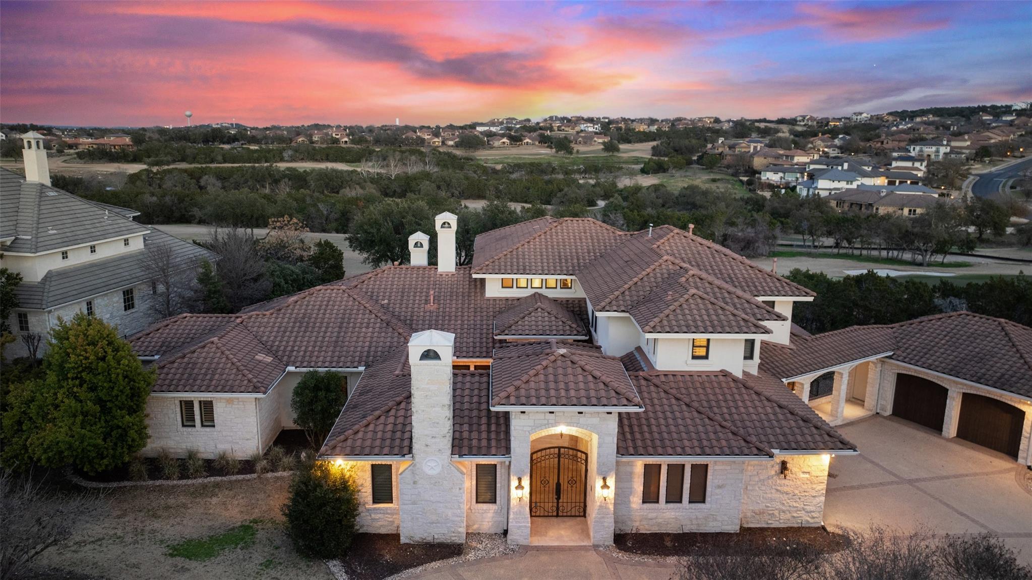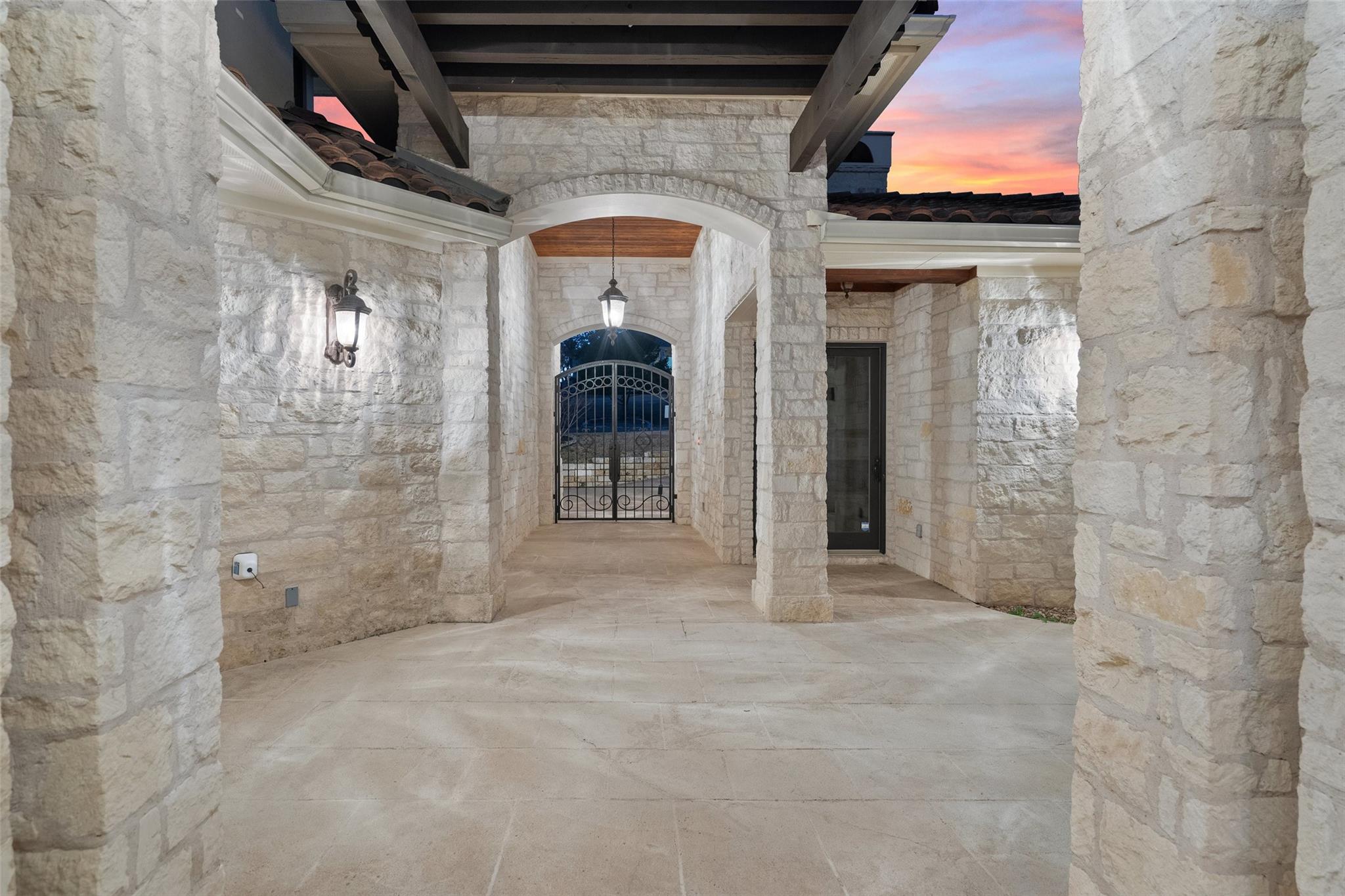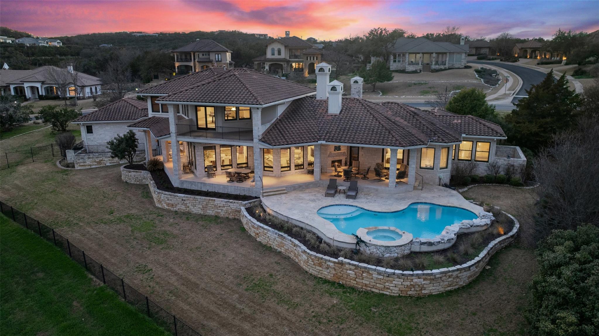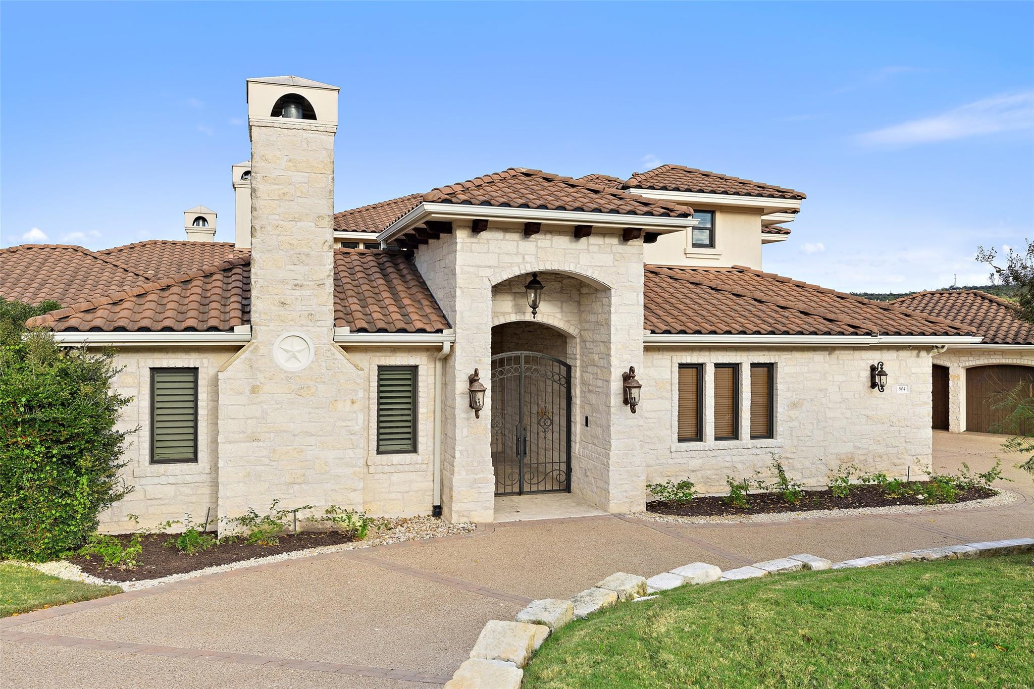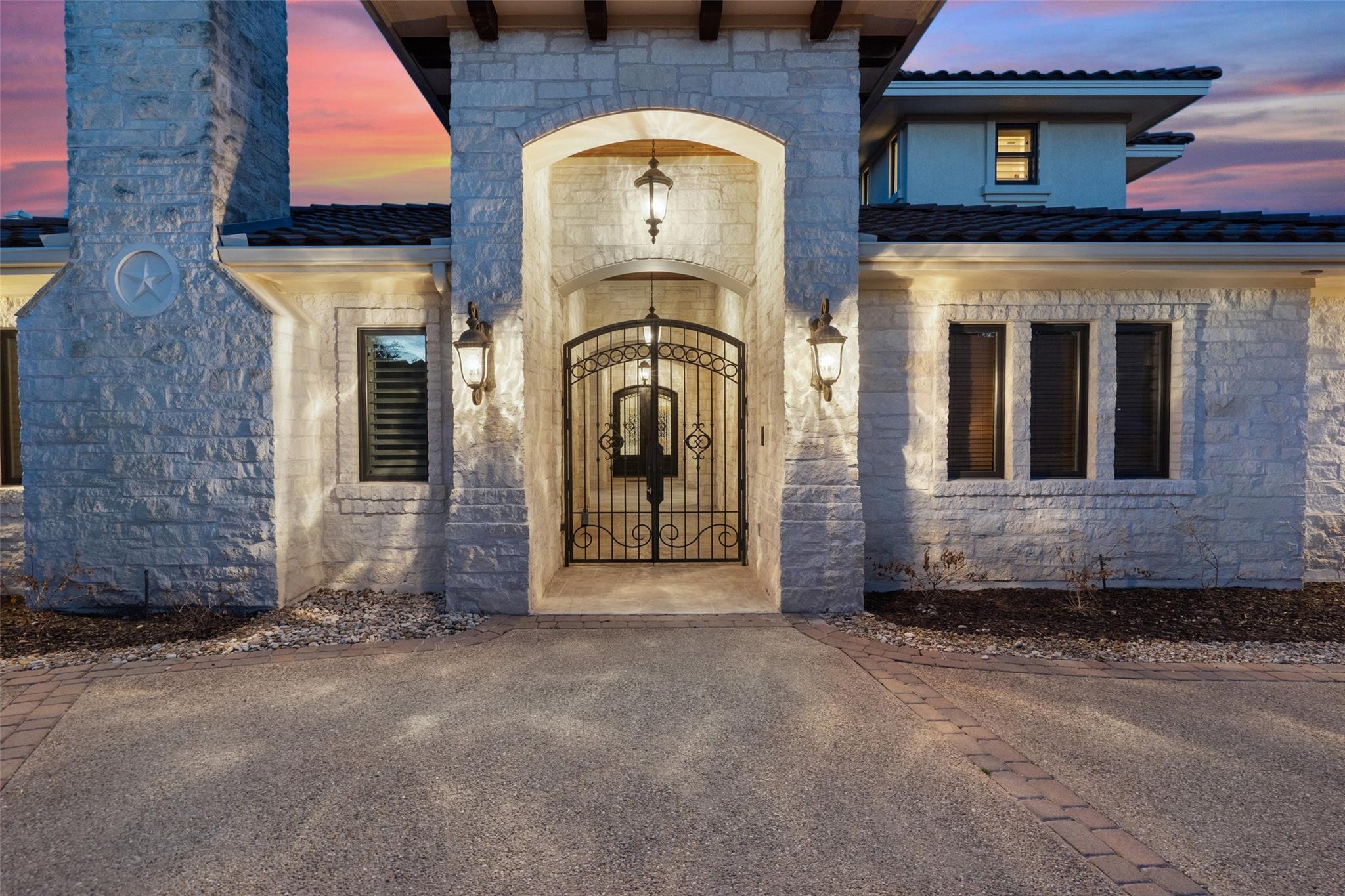 Located in the highly sought-after gated community of Flintrock at Hurst Creek, this exquisite home exemplifies luxurious living at its finest. Enter through the ornate wrought iron gates to a beautiful courtyard to find a meticulously designed and built stately residence which offers the perfect blend of elegance and comfort. The main home is a 4 bedroom, 3.5 bath property featuring an array of upscale amenities, such as home theater, dog washing station, two dedicated offices with storage, gym, outdoor kitchen, stunning pool and spa, and large yard with a view of the golf course and picturesque vistas. The detached casita is a one bedroom, one bath with a kitchenette and closet, perfect for a MIL plan, au pair or guest quarters. This home represents the pinnacle of Austin's coveted golf course living. Set on a beautiful .806 acres and backs to the golf course, 504 Golden Bear embraces panoramic views of the Flintrock Falls Golf Course from its backyard and views from many areas of the home.The first floor primary bedroom w/sitting room & attached flex space/gym features a generous walk-in closet, spa-like en-suite bathroom complete w/sauna, separate shower and tub & dual vanities. The heart of this home is the gourmet kitchen featuring top-of-the-line appliances, granite countertops, and an island for both culinary enthusiasts and casual dining.The outdoor living area is a true escape with a covered patio, an outdoor kitchen, and a sparkling pool and hot tub complete with a water feature. Additional upstairs family room, 3 bedrooms (one with en-suite bath), additional flex room. Updated with freshly epoxied 4 car garage and paint. Welcome to a lifestyle that is second to none, with flexible floor plans, seamlessly blending upscale living with the perks of a prestigious golf community. With a great location and zoning to Lake Travis ISD Schools and proximity to shopping in Lakeway and the Hill Country Galleria, this home is not to be missed.