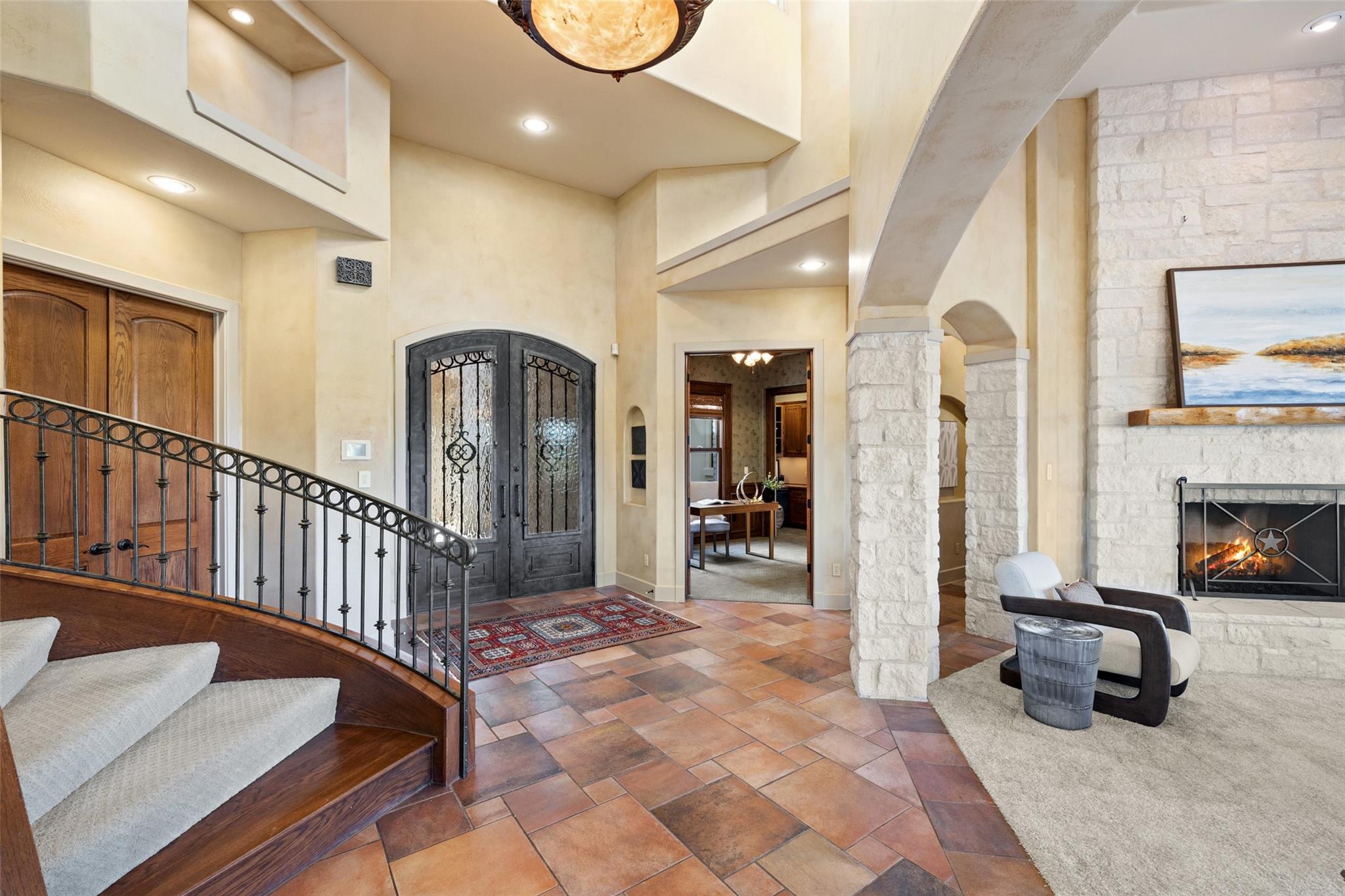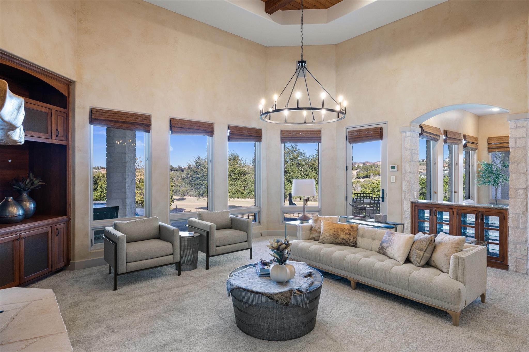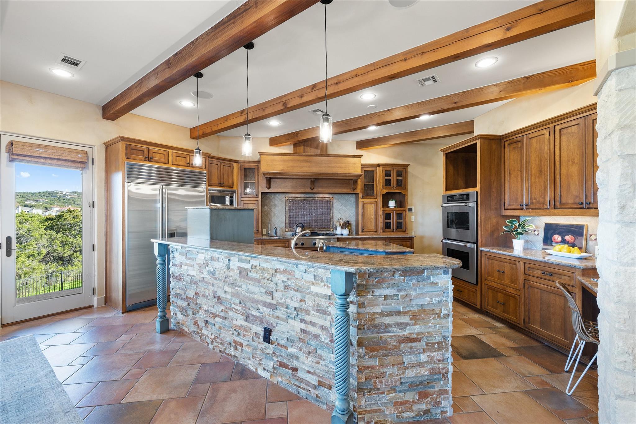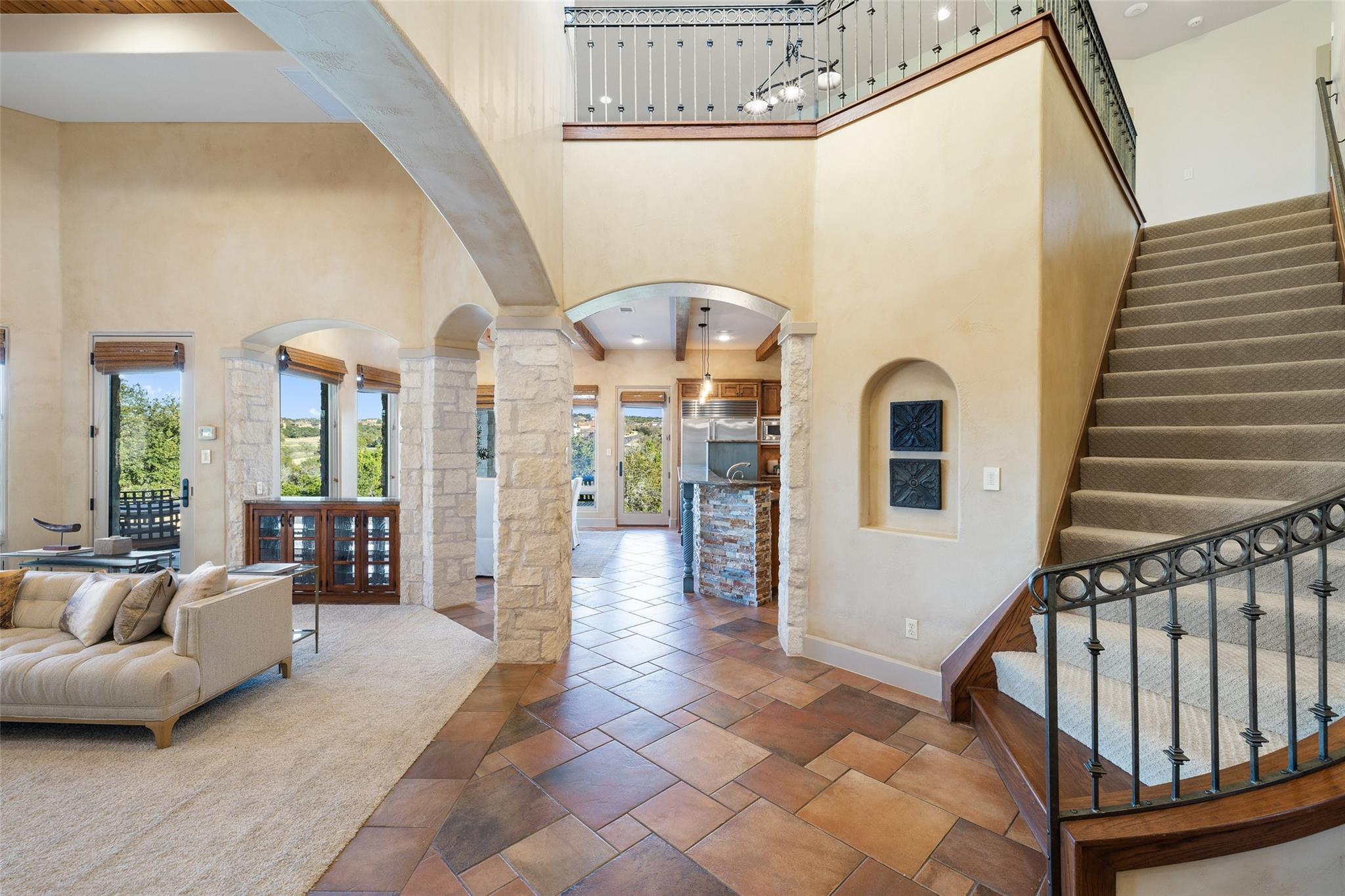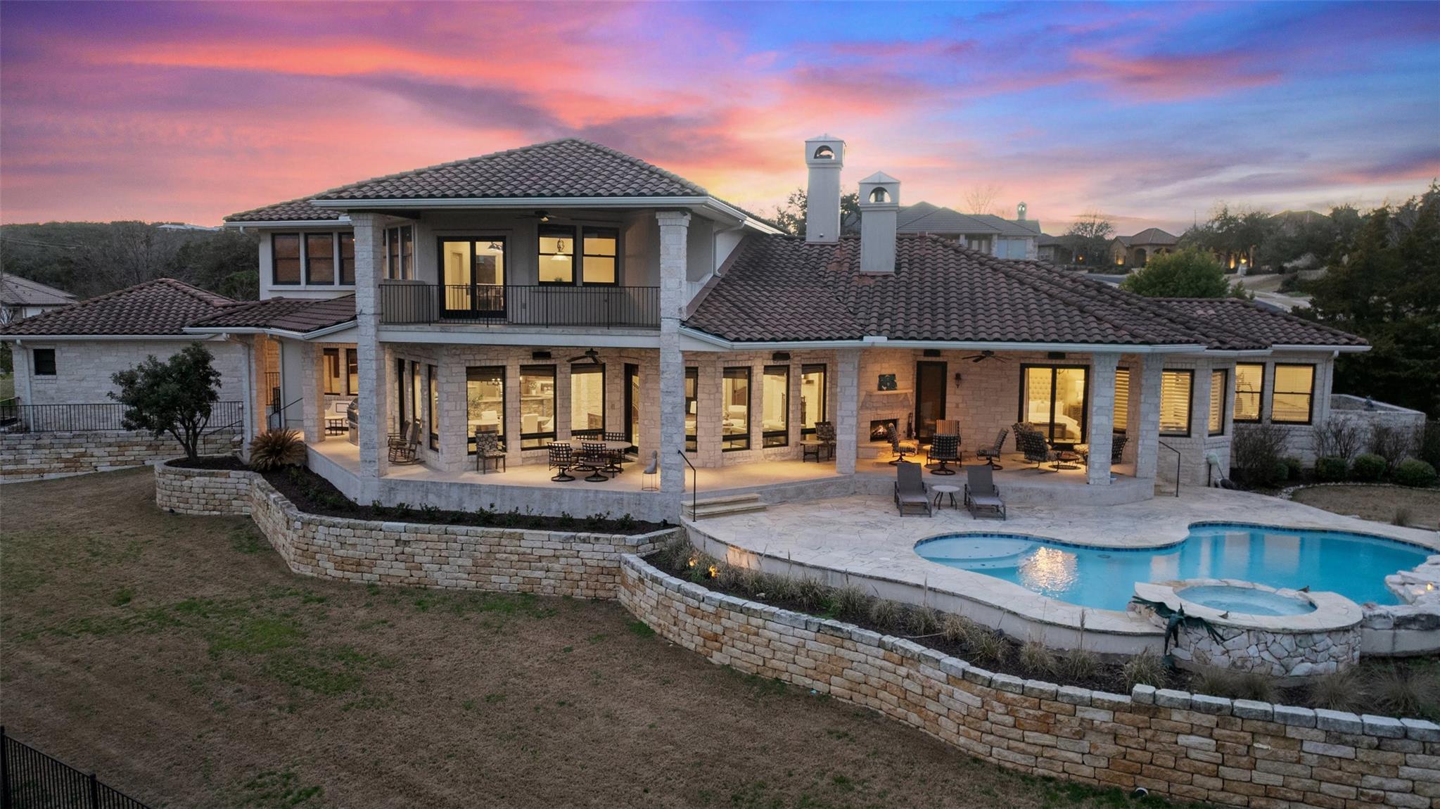 Located in the highly sought-after gated community of Flintrock at Hurst Creek, this exquisite home exemplifies luxurious living at its finest. Enter through the ornate wrought iron gates to a beautiful courtyard to find a meticulously designed and built stately residence which offers the perfect blend of elegance and comfort. The main home is a 4 bedroom, 3.5 bath property featuring an array of upscale amenities, such as home theater, dog washing station, two dedicated offices with storage, gym, outdoor kitchen, stunning pool and spa, and large yard with a view of the golf course and picturesque vistas. The detached casita is a one bedroom, one bath with a kitchenette and closet, perfect for a MIL plan, au pair or guest quarters. This home represents the pinnacle of Austin's coveted golf course living. Set on a beautiful .806 acres and backs to the golf course, 504 Golden Bear embraces panoramic views of the Flintrock Falls Golf Course from its backyard and views from many areas of the home.The first floor primary bedroom w/sitting room & attached flex space/gym features a generous walk-in closet, spa-like en-suite bathroom complete w/sauna, separate shower and tub & dual vanities. The heart of this home is the gourmet kitchen featuring top-of-the-line appliances, granite countertops, and an island for both culinary enthusiasts and casual dining.The outdoor living area is a true escape with a covered patio, an outdoor kitchen, and a sparkling pool and hot tub complete with a water feature. Additional upstairs family room, 3 bedrooms (one with en-suite bath), additional flex room. Updated with freshly epoxied 4 car garage and paint. Welcome to a lifestyle that is second to none, with flexible floor plans, seamlessly blending upscale living with the perks of a prestigious golf community. With a great location and zoning to Lake Travis ISD Schools and proximity to shopping in Lakeway and the Hill Country Galleria, this home is not to be missed.