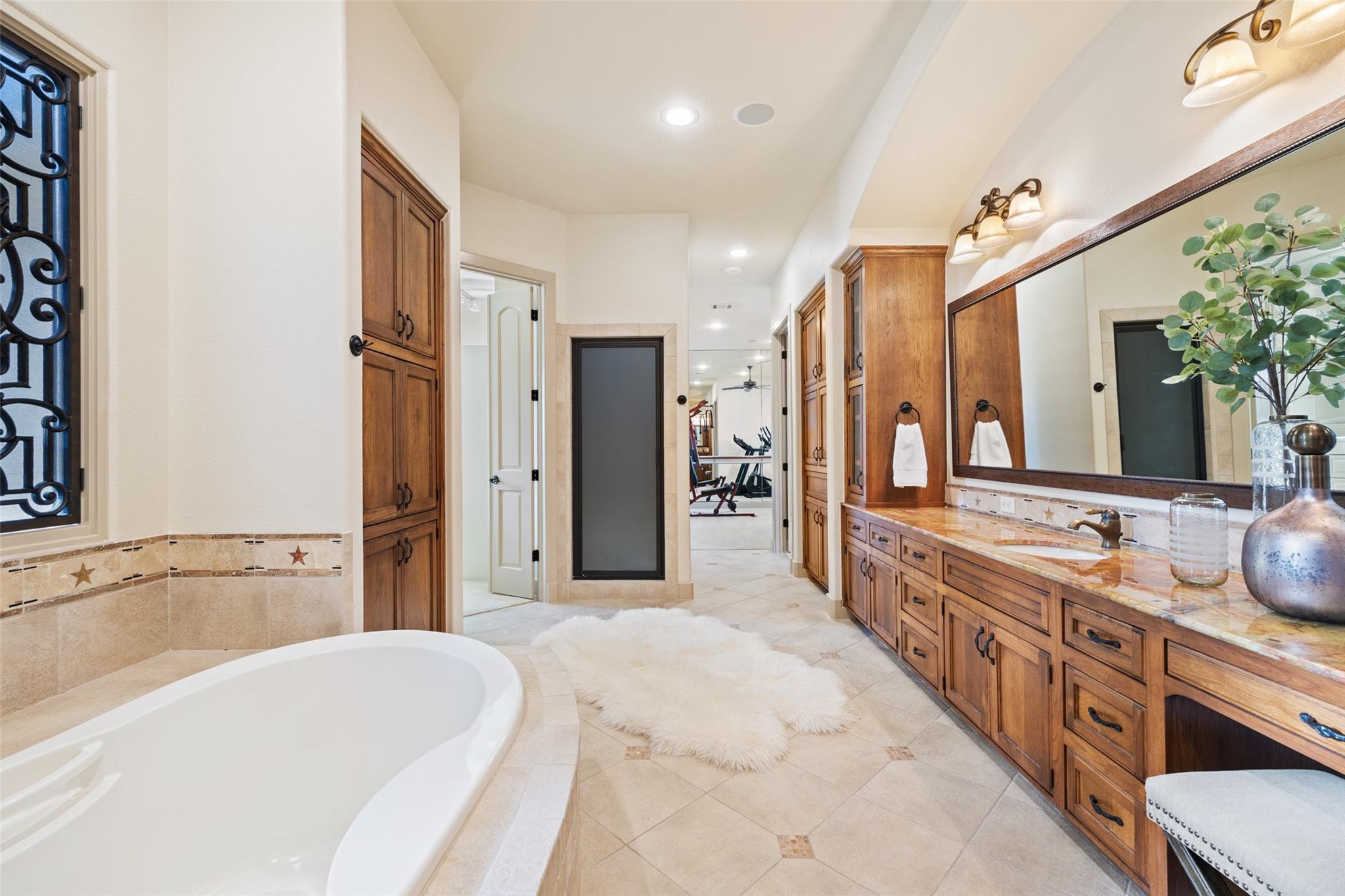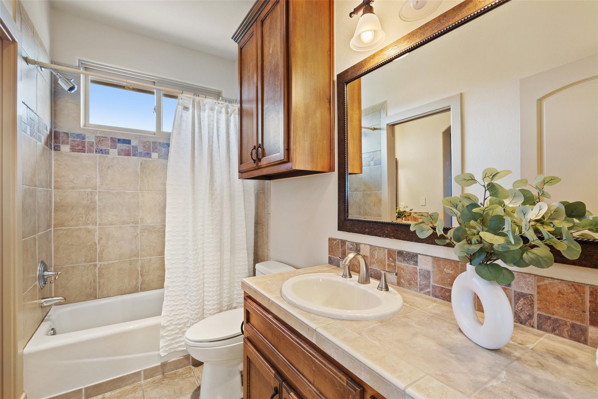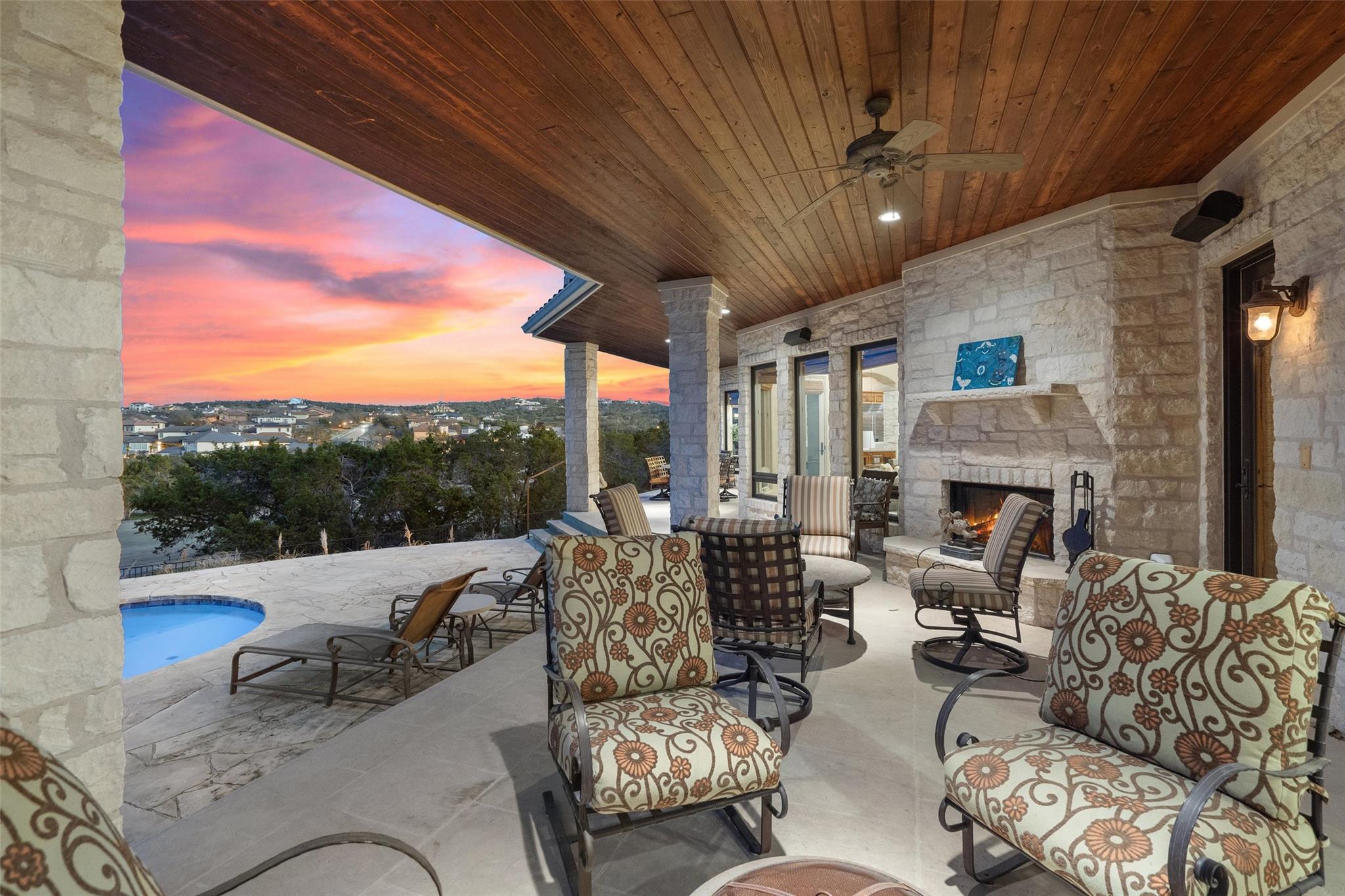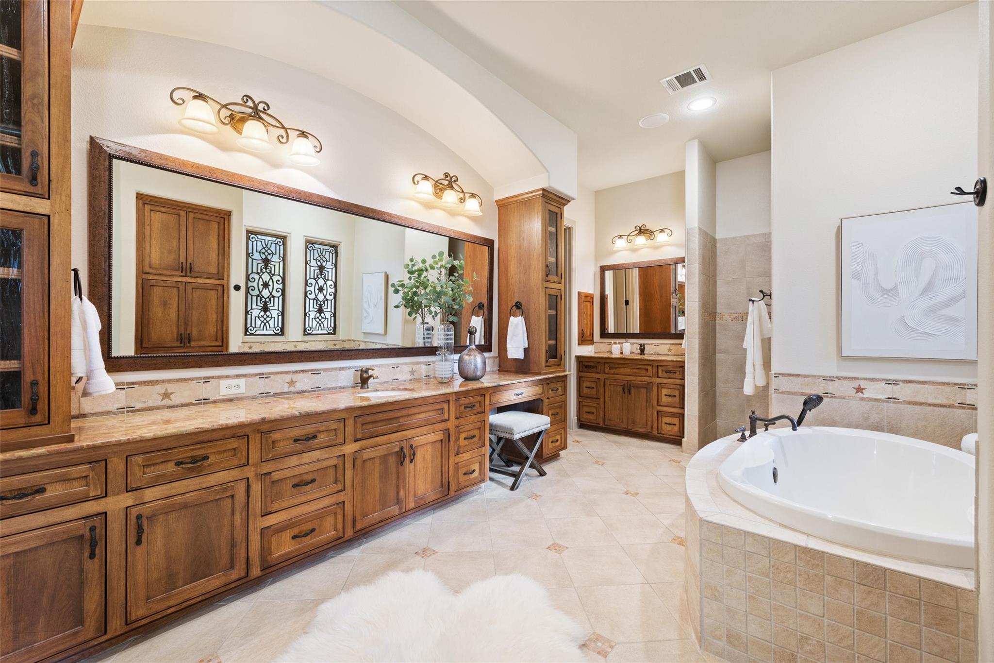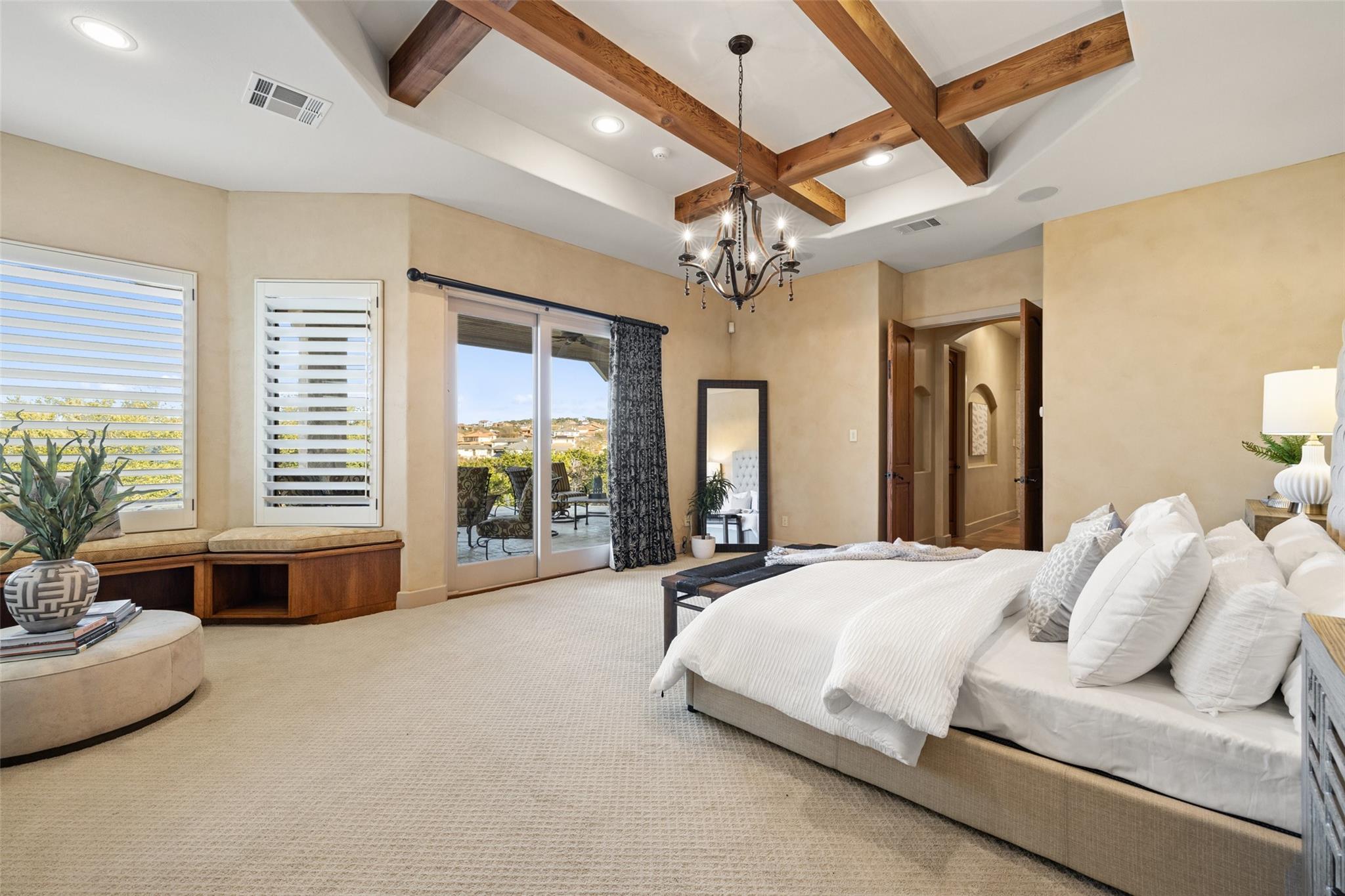 Located in the highly sought-after gated community of Flintrock at Hurst Creek, this exquisite home exemplifies luxurious living at its finest. Enter through the ornate wrought iron gates to a beautiful courtyard to find a meticulously designed and built stately residence which offers the perfect blend of elegance and comfort. The main home is a 4 bedroom, 3.5 bath property featuring an array of upscale amenities, such as home theater, dog washing station, two dedicated offices with storage, gym, outdoor kitchen, stunning pool and spa, and large yard with a view of the golf course and picturesque vistas. The detached casita is a one bedroom, one bath with a kitchenette and closet, perfect for a MIL plan, au pair or guest quarters. This home represents the pinnacle of Austin's coveted golf course living. Set on a beautiful .806 acres and backs to the golf course, 504 Golden Bear embraces panoramic views of the Flintrock Falls Golf Course from its backyard and views from many areas of the home.The first floor primary bedroom w/sitting room & attached flex space/gym features a generous walk-in closet, spa-like en-suite bathroom complete w/sauna, separate shower and tub & dual vanities. The heart of this home is the gourmet kitchen featuring top-of-the-line appliances, granite countertops, and an island for both culinary enthusiasts and casual dining.The outdoor living area is a true escape with a covered patio, an outdoor kitchen, and a sparkling pool and hot tub complete with a water feature. Additional upstairs family room, 3 bedrooms (one with en-suite bath), additional flex room. Updated with freshly epoxied 4 car garage and paint. Welcome to a lifestyle that is second to none, with flexible floor plans, seamlessly blending upscale living with the perks of a prestigious golf community. With a great location and zoning to Lake Travis ISD Schools and proximity to shopping in Lakeway and the Hill Country Galleria, this home is not to be missed.