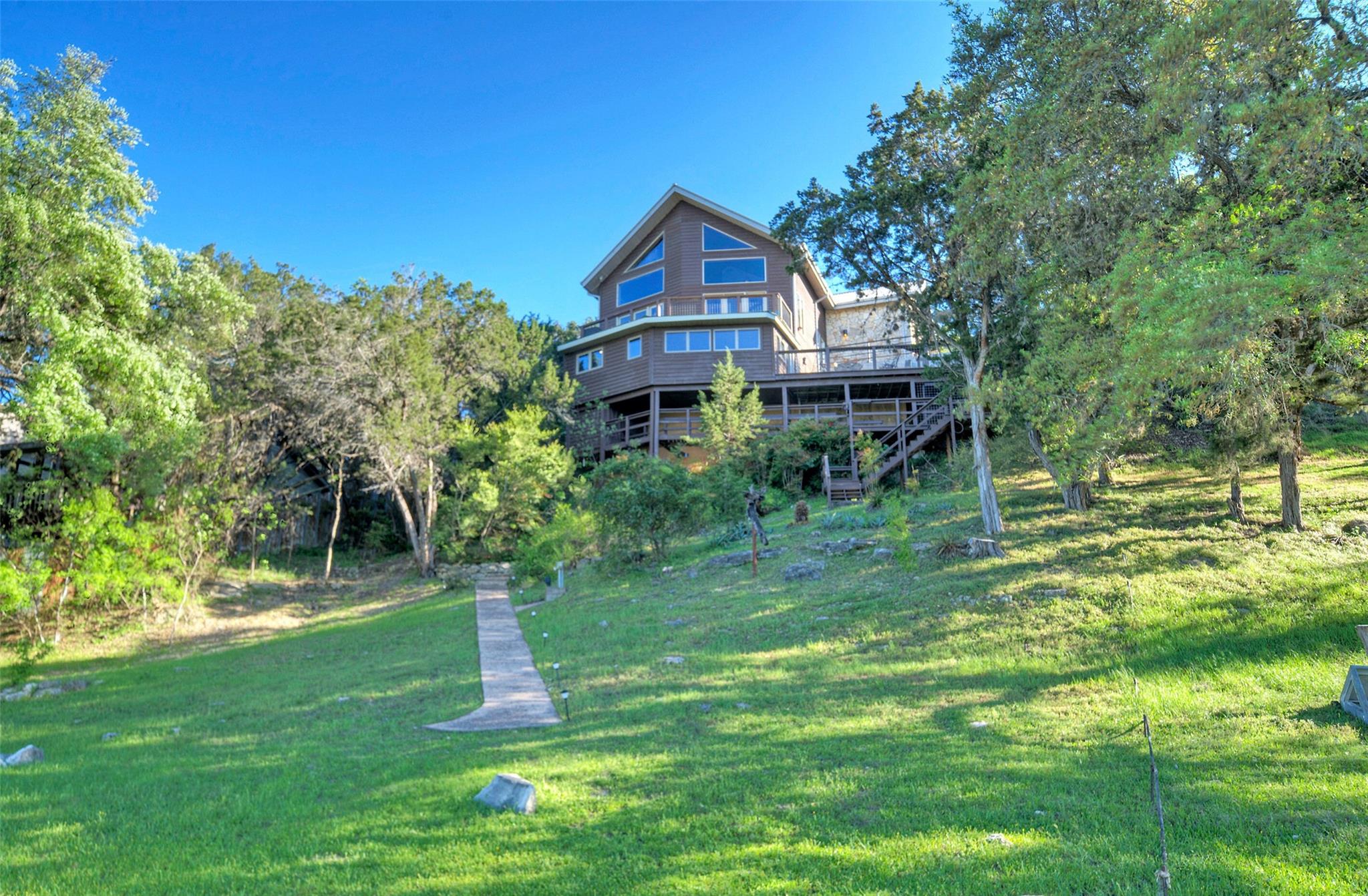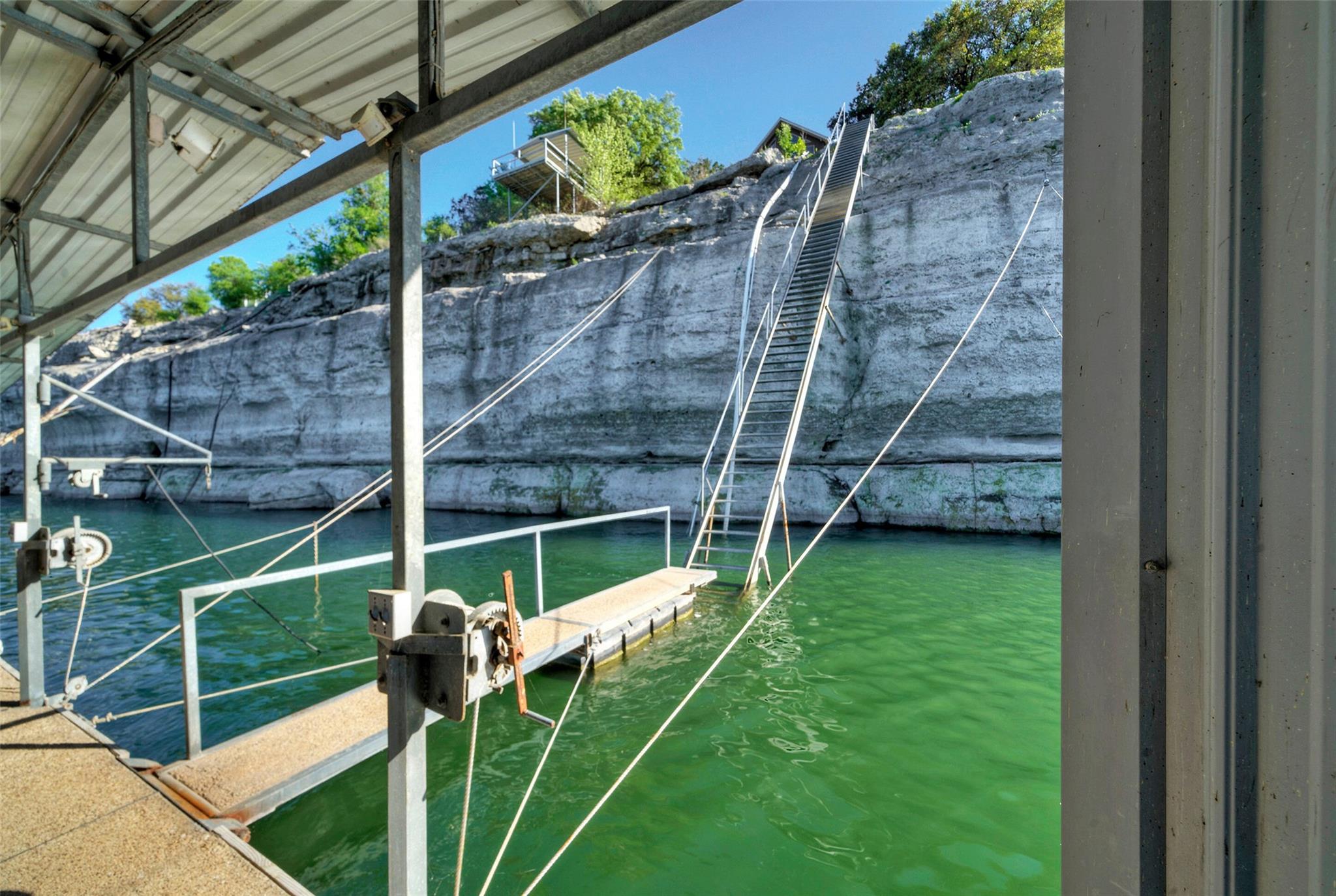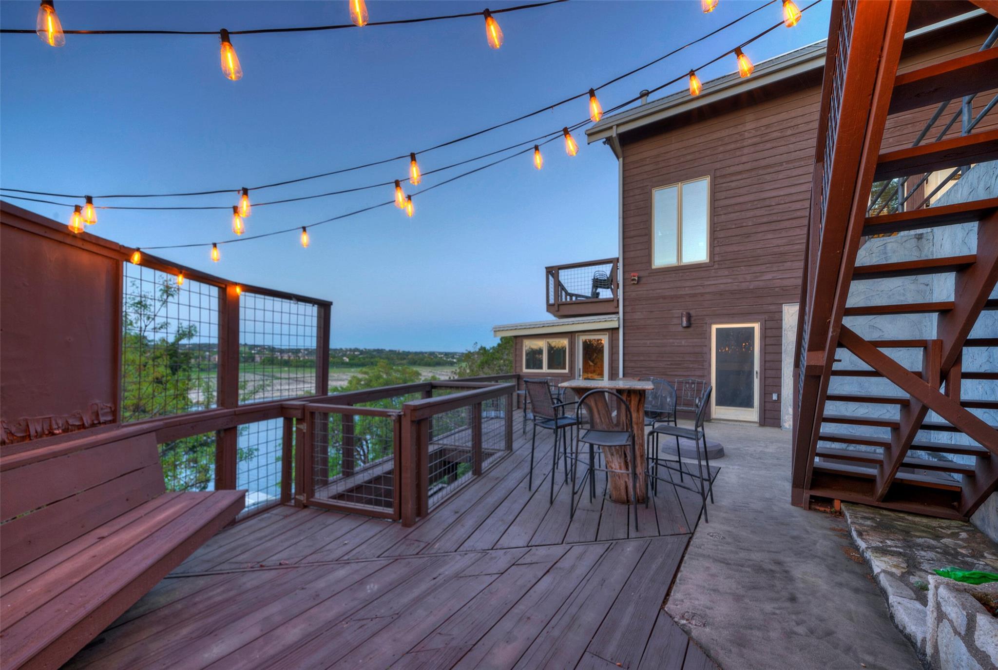 Discover exclusivity with this lake home in rare deep-water. Four tiers of separate decks work downward to a shared, private dock for relaxation. Once inside, the clear, panoramic views of Lake Travis rival which floor you is the favorite! Handcrafted rustic lodge interior spans the three levels. Lake and hill country views further set apart the expansive master suite that crowns the upper level -complete with a studio loft. The main level is idyllic with a sizable bedroom, bath, living area, and kitchen. Hosting abounds in the lower level - boasting an authentic Texas-style bar, game room, and third bunk-style bedroom with bath. Quality finishes include granite countertops in the kitchen, Pella windows, tile work, and hardwood floors. Experience the pinnacle of water activities on Lake Travis given consistent depths that hold value for rental or residential investment. The property currently has a history of successful luxury short-term rental and a secondary lake house. The home is being sold as a turnkey property. Open Concept Main Floor -Dining space overlooking the water with ample seating and incredible views. -Plenty of comfortable seating with large windows to take in the incredible views and those amazing Lake Travis Sunsets Upstairs -Master bedroom with a king-size bed in a very spacious room, walk-in closet, full bathroom with a walk-in shower, and a stand-alone bathtub. -Upstairs loft with comfy seating to read a book, play games or work! Downstairs -Large comfortable sectional where the whole family can gather -Game room with Air Hockey table and bar-type seating with an amazing lake view -Bunk bedroom with 2 bunk beds! The bottom bunks are full-sized, and the top bunks are twin-sized beds. The owner's slip is currently designed to support/lift a wakeboard boat. Briarcliff Marina is just down the street and boats can be launched from there water level permitting. Briarcliff Marina also offers daily slip rentals!