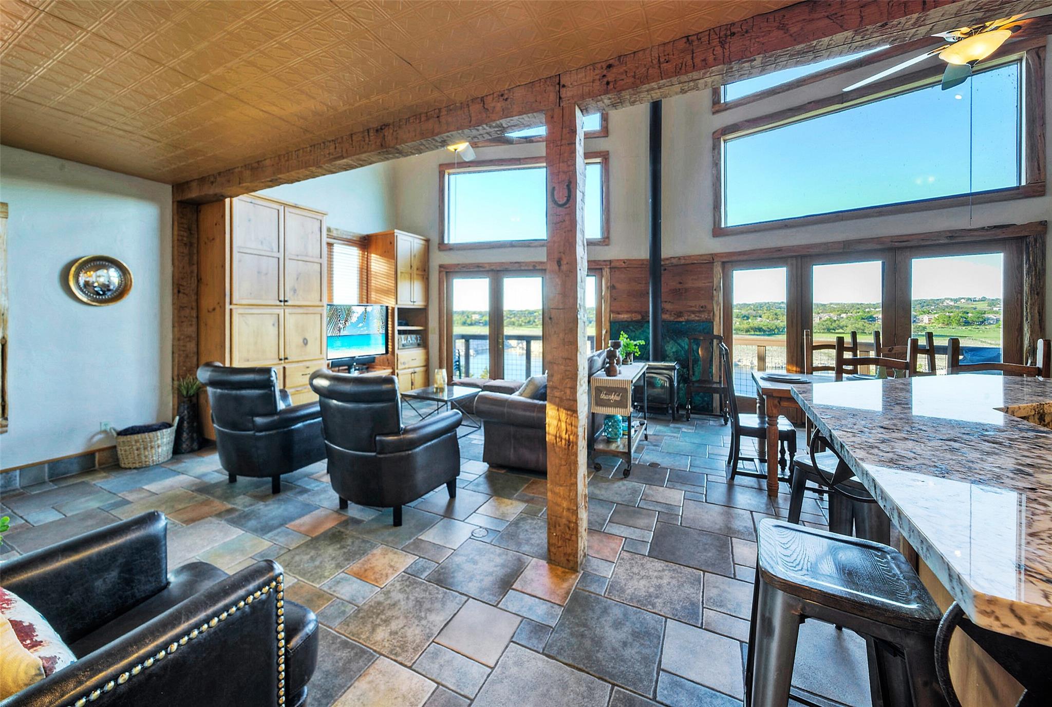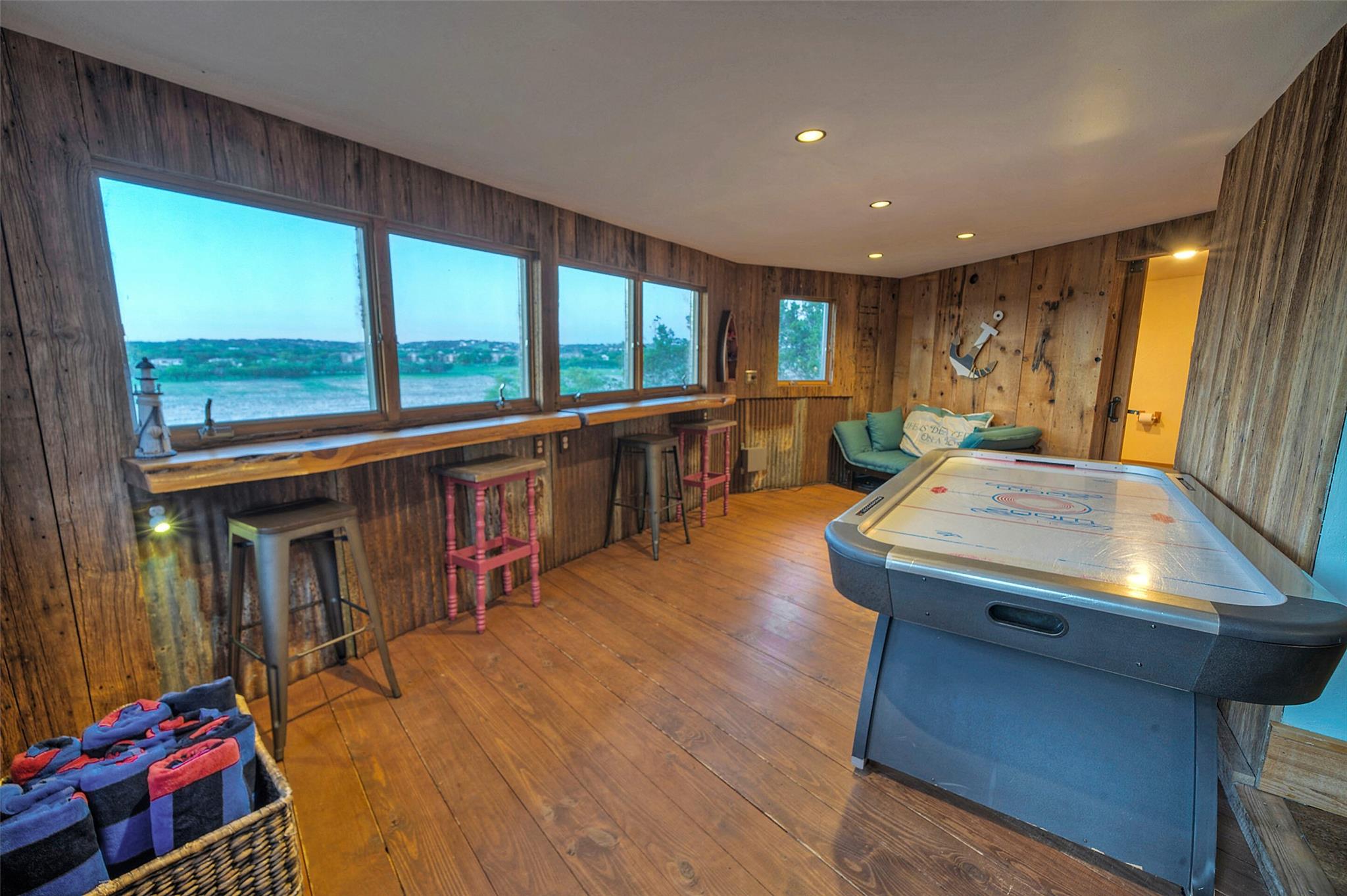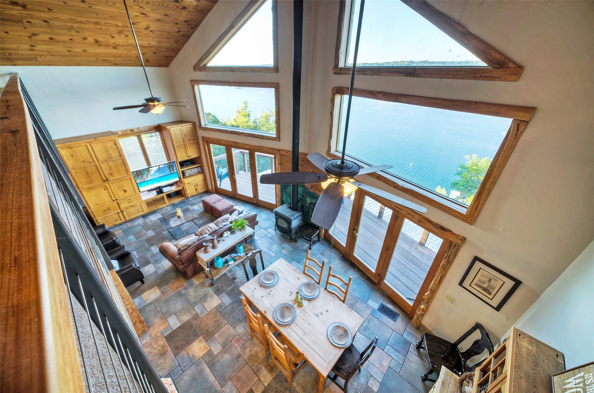 Discover exclusivity with this lake home in rare deep-water. Four tiers of separate decks work downward to a shared, private dock for relaxation. Once inside, the clear, panoramic views of Lake Travis rival which floor you is the favorite! Handcrafted rustic lodge interior spans the three levels. Lake and hill country views further set apart the expansive master suite that crowns the upper level -complete with a studio loft. The main level is idyllic with a sizable bedroom, bath, living area, and kitchen. Hosting abounds in the lower level - boasting an authentic Texas-style bar, game room, and third bunk-style bedroom with bath. Quality finishes include granite countertops in the kitchen, Pella windows, tile work, and hardwood floors. Experience the pinnacle of water activities on Lake Travis given consistent depths that hold value for rental or residential investment. The property currently has a history of successful luxury short-term rental and a secondary lake house. The home is being sold as a turnkey property. Open Concept Main Floor -Dining space overlooking the water with ample seating and incredible views. -Plenty of comfortable seating with large windows to take in the incredible views and those amazing Lake Travis Sunsets Upstairs -Master bedroom with a king-size bed in a very spacious room, walk-in closet, full bathroom with a walk-in shower, and a stand-alone bathtub. -Upstairs loft with comfy seating to read a book, play games or work! Downstairs -Large comfortable sectional where the whole family can gather -Game room with Air Hockey table and bar-type seating with an amazing lake view -Bunk bedroom with 2 bunk beds! The bottom bunks are full-sized, and the top bunks are twin-sized beds. The owner's slip is currently designed to support/lift a wakeboard boat. Briarcliff Marina is just down the street and boats can be launched from there water level permitting. Briarcliff Marina also offers daily slip rentals!