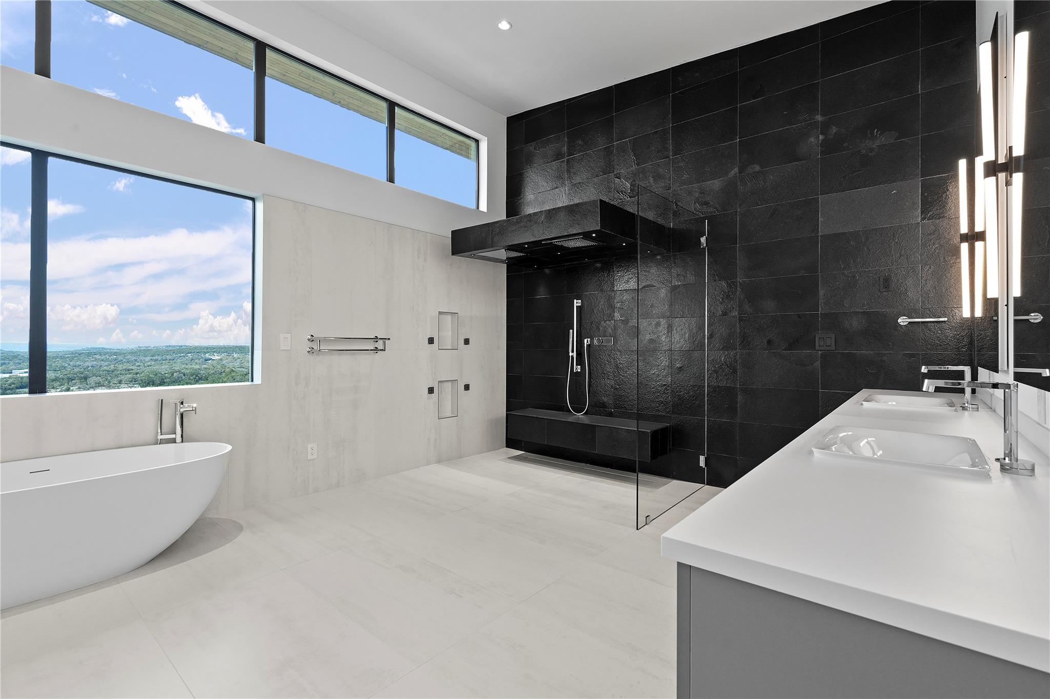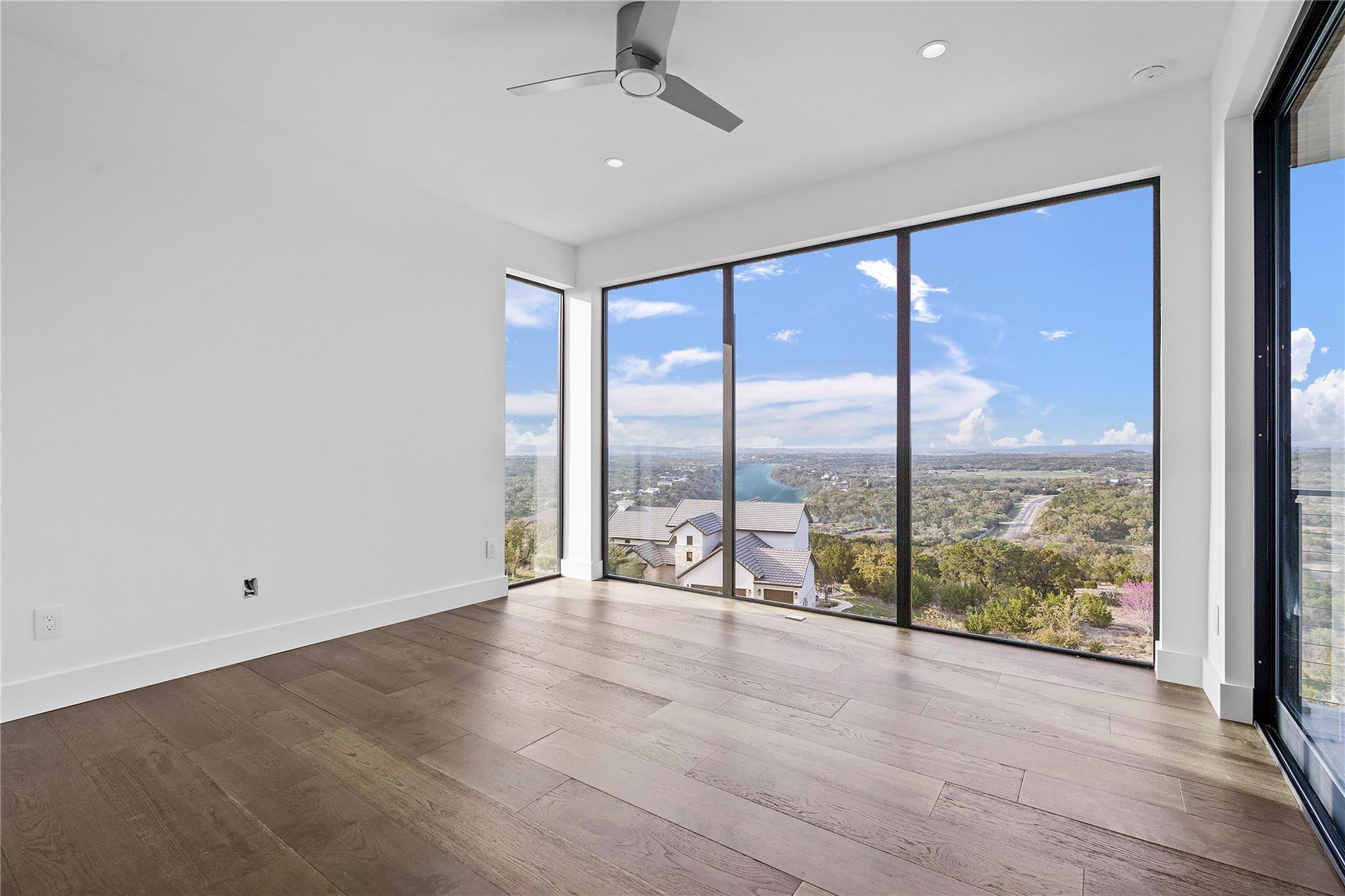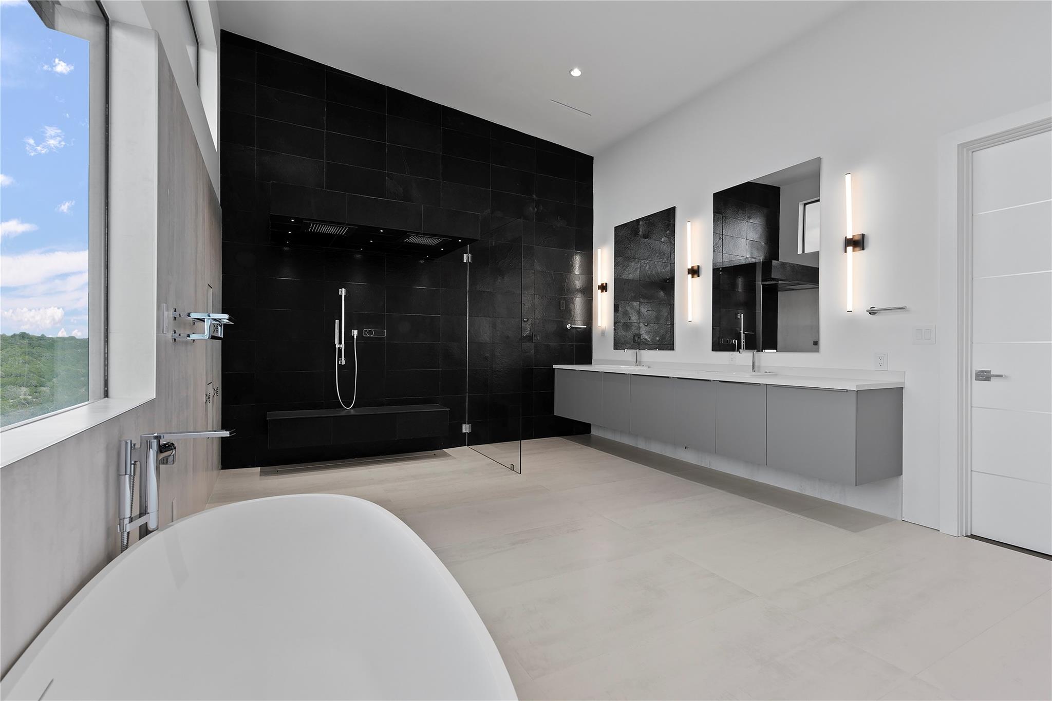 Discover the epitome of luxurious modern living at 1702 Moonlight Trace, where the glamor of Hollywood Hills seamlessly merges with the tranquility of Austin Hill Country. Crafted to perfection by Steve Zagorski Architects and constructed by Credence Custom Homes of Austin, this exceptional residence is a testament to innovative design, offering an unparalleled blend of style, function, and technology. Nestled on a sprawling 1.0-acre lot within the prestigious Tierra Vista gated community - recognized as the 2015 Development of the Year - this home boasts awe-inspiring panoramic views of the Pedernales River and the majestic Hill Country landscape. With 4,970 square feet of meticulously designed living space, including 5 bedrooms and 5 bathrooms, every detail exudes opulence and sophistication. Step inside to discover carefully curated upscale luxury finishes, state-of-the-art technology, and high-efficiency building materials and appliances throughout. The open floor plan flows effortlessly, offering generous living areas perfect for entertaining and daily relaxation. Four large covered patios with tongue and groove stained wood ceilings provide intimate outdoor spaces year-round, while the custom infinity-edge pool and spa offer the ultimate in relaxation and enjoyment. Retreat to the luxurious Primary Bedroom and Bath, where privacy and comfort await. The spacious walk-in closet features custom built-ins and an LG steam/dry cleaning unit, while the en-suite bathroom offers a spa-like experience with double vanities, a freestanding soaking tub, and an impressive oversized walk-in shower with frameless glass. Located in the sought-after community of Spicewood, with easy access to Hwy 71 and just minutes from The Galleria, restaurants, and exemplary Lake Travis ISD schools, this modern marvel presents an exceptional opportunity for discerning buyers. With construction concluded in February 2024, this property is turnkey and ready for immediate move-in.