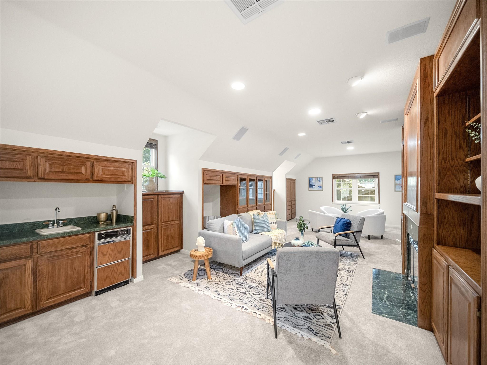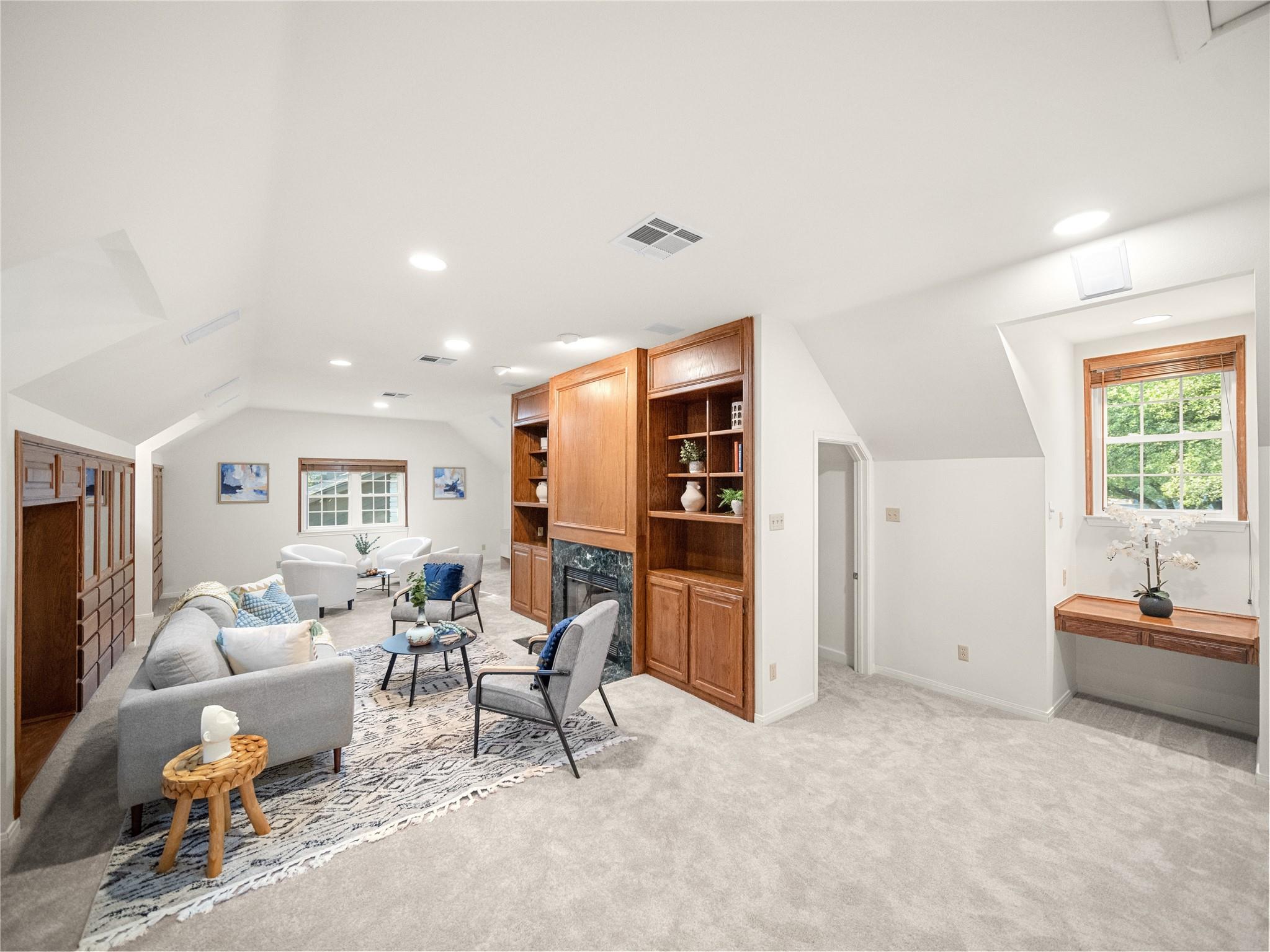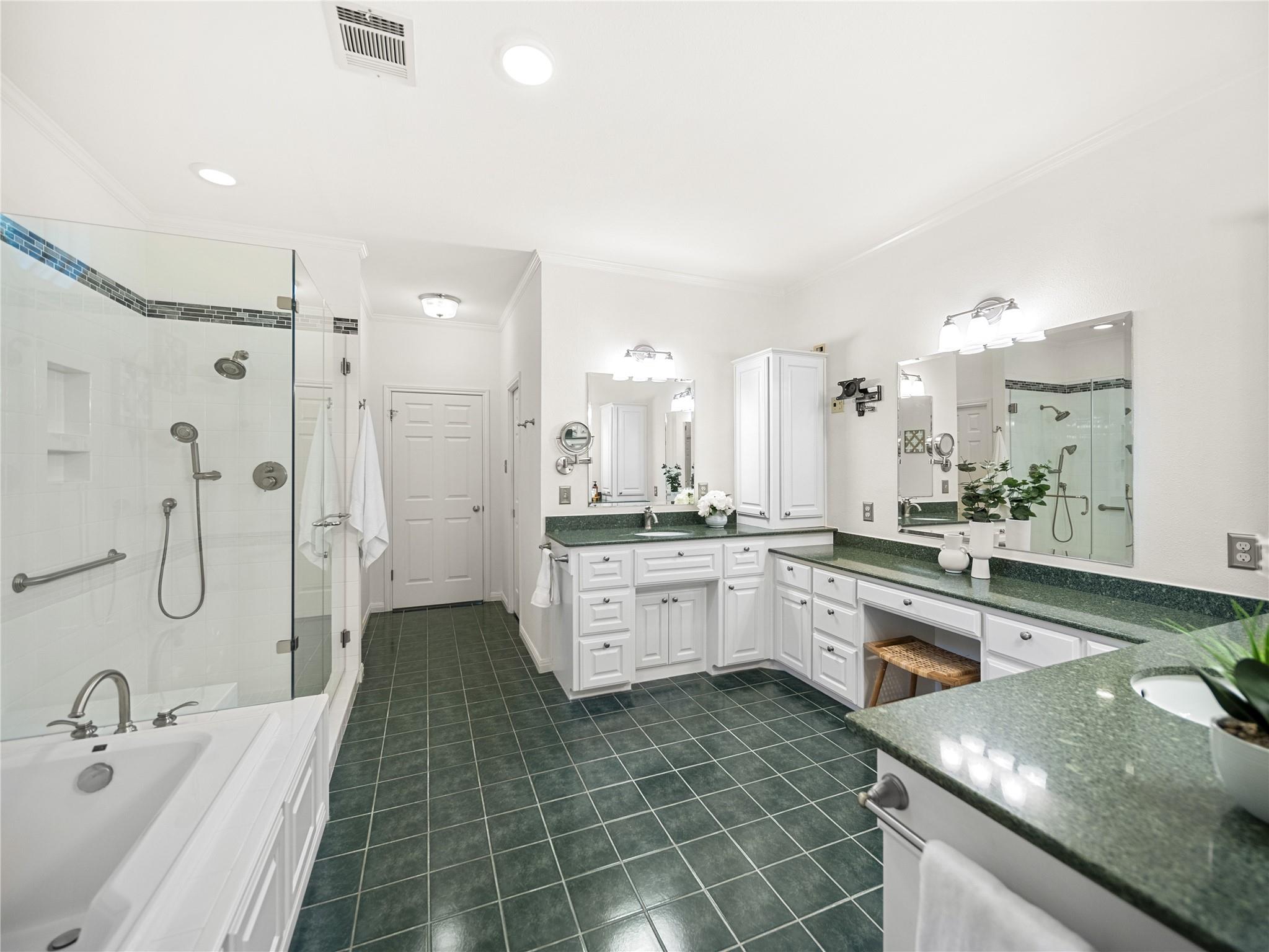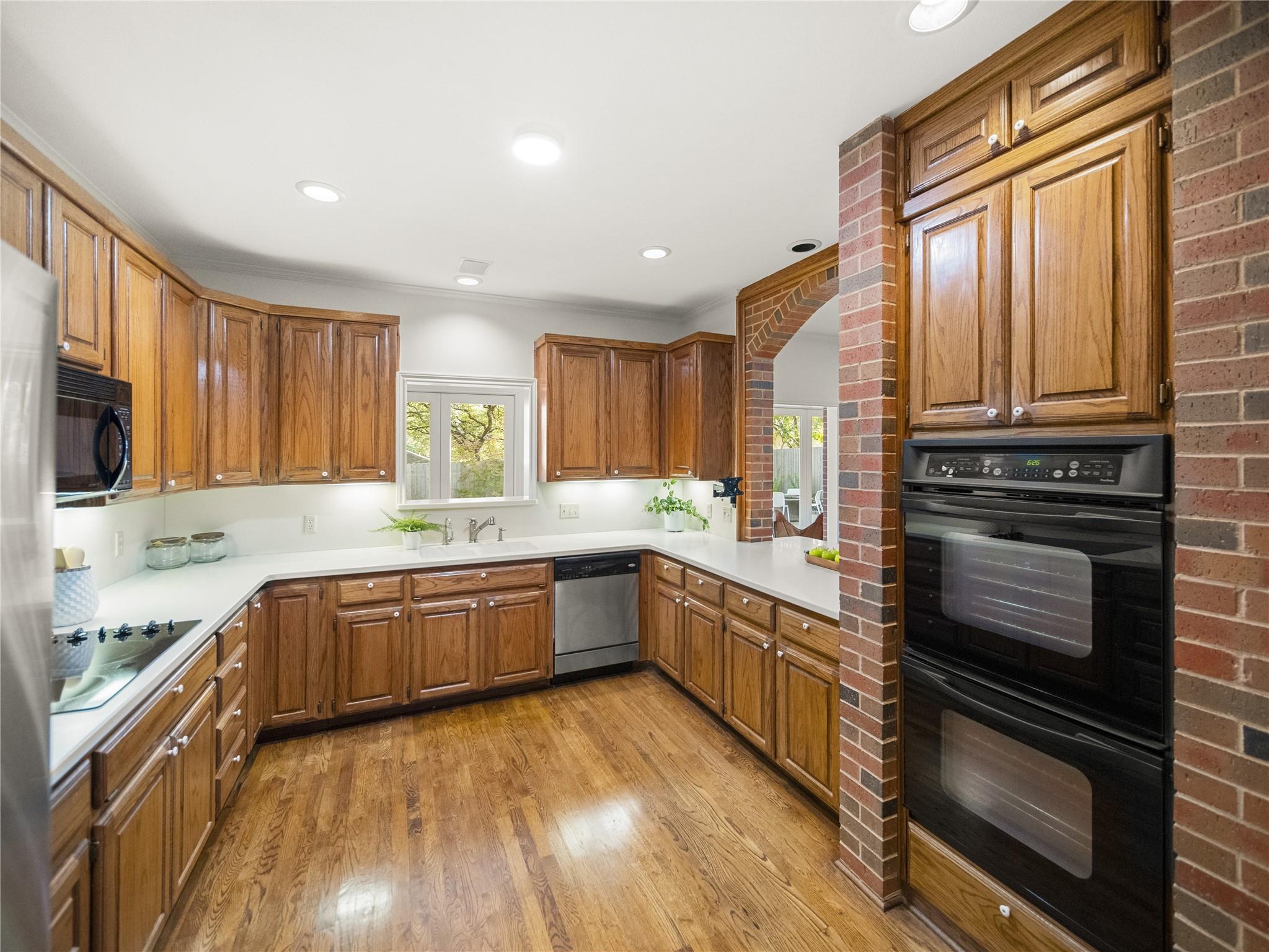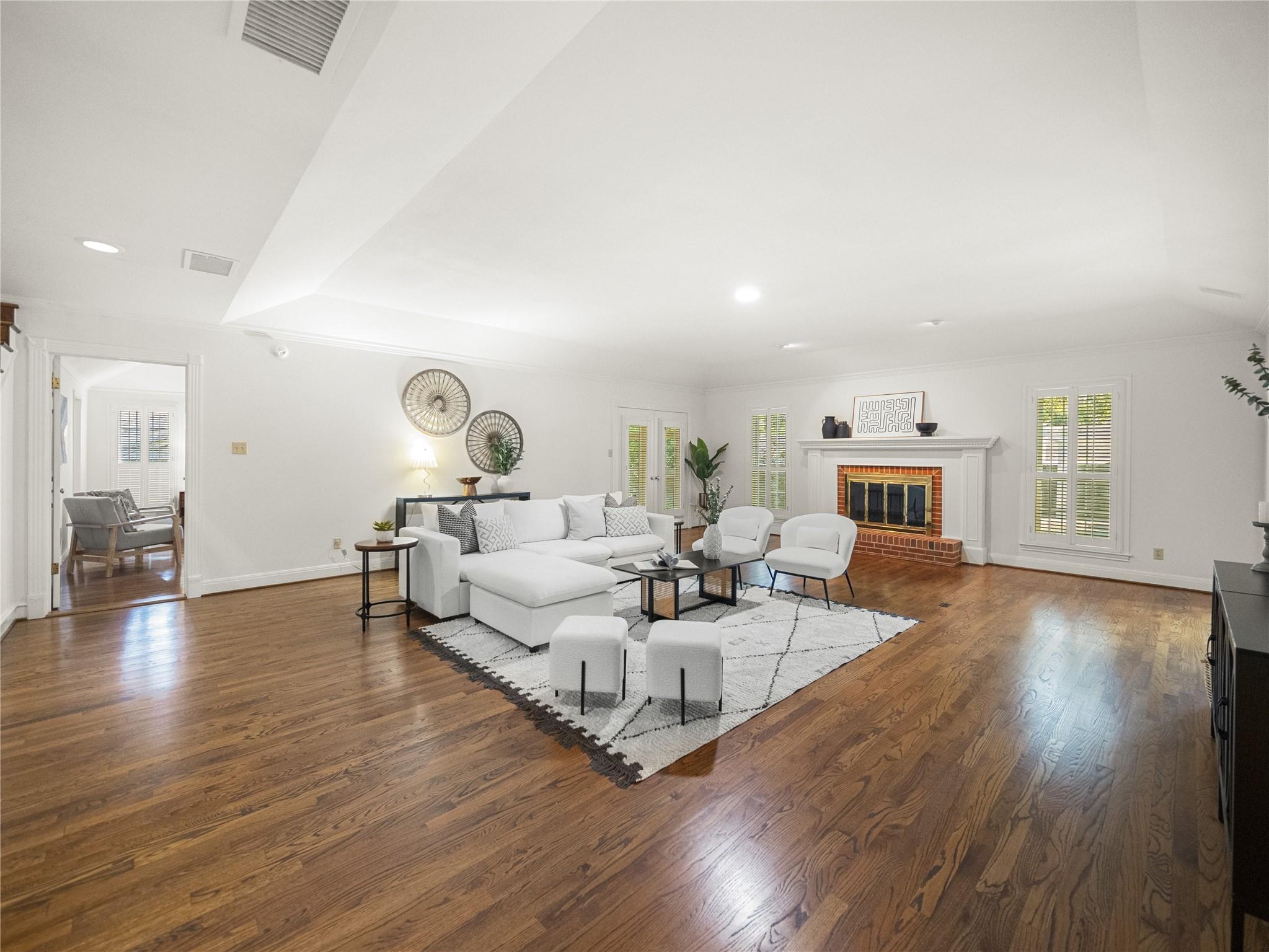 A true southern beauty, this home was custom built with attention to detail on ~1/3 AC level lot covered with gorgeous oak trees. This charming home has been lovingly maintained, inside and out, by one owner. Located on one of the most coveted streets and sections of Northwest Hills, this classic, two-story red brick home with a welcoming and deep, covered front porch adorned with stately columns has many attributes. Highlights of this carefully curated timeless design include: real wood floors, two huge livings areas and both have fireplaces (one down, one up), designated office on main level, sunroom spanning back of home overlooking expansive backyard oasis, solar heated pool with hot tub, an incredible, oversized Primary Bedroom downstairs with an exercise room attached, large Primary Bath with two roomy his/hers walk-in closets, wonderful kitchen in the heart of the home, breakfast area as well as separate dining area for hosting family and friends, two secondary bedrooms upstairs, two separate staircases to access the upper level, two Trane systems maintained by Christianson, unique patterned shingle roof already checked and in good condition, home is smartly equipped with a Generac generator, new carpet, freshly painted an elegant, captivating neutral palette, and you'll relish the abundance of storage throughout! Enjoy backyard bliss: pool and hot tub surrounded by composite deck, plentiful lounging areas, gas fire pit, covered outdoor grilling area, hidden storage shed for all your gardening and pool needs, plenty of grassy area for the family pet and playscape, fully landscaped, manicured lawns both front and back, backyard is surrounded by an 8 ft tall privacy fence. Walk/bike to JCC, Doss and Murchison. HEB is minutes away, as well as doctors offices, shopping, and a quick commute to downtown, UT, and The Domain. Solid as a rock and superb location. Charleston-like charm and splendor on the south side of Green Trails in the heart of Northwest Hills!