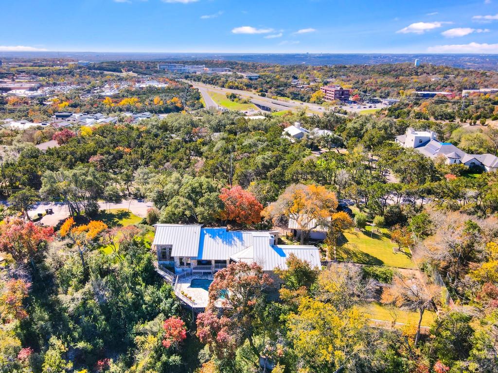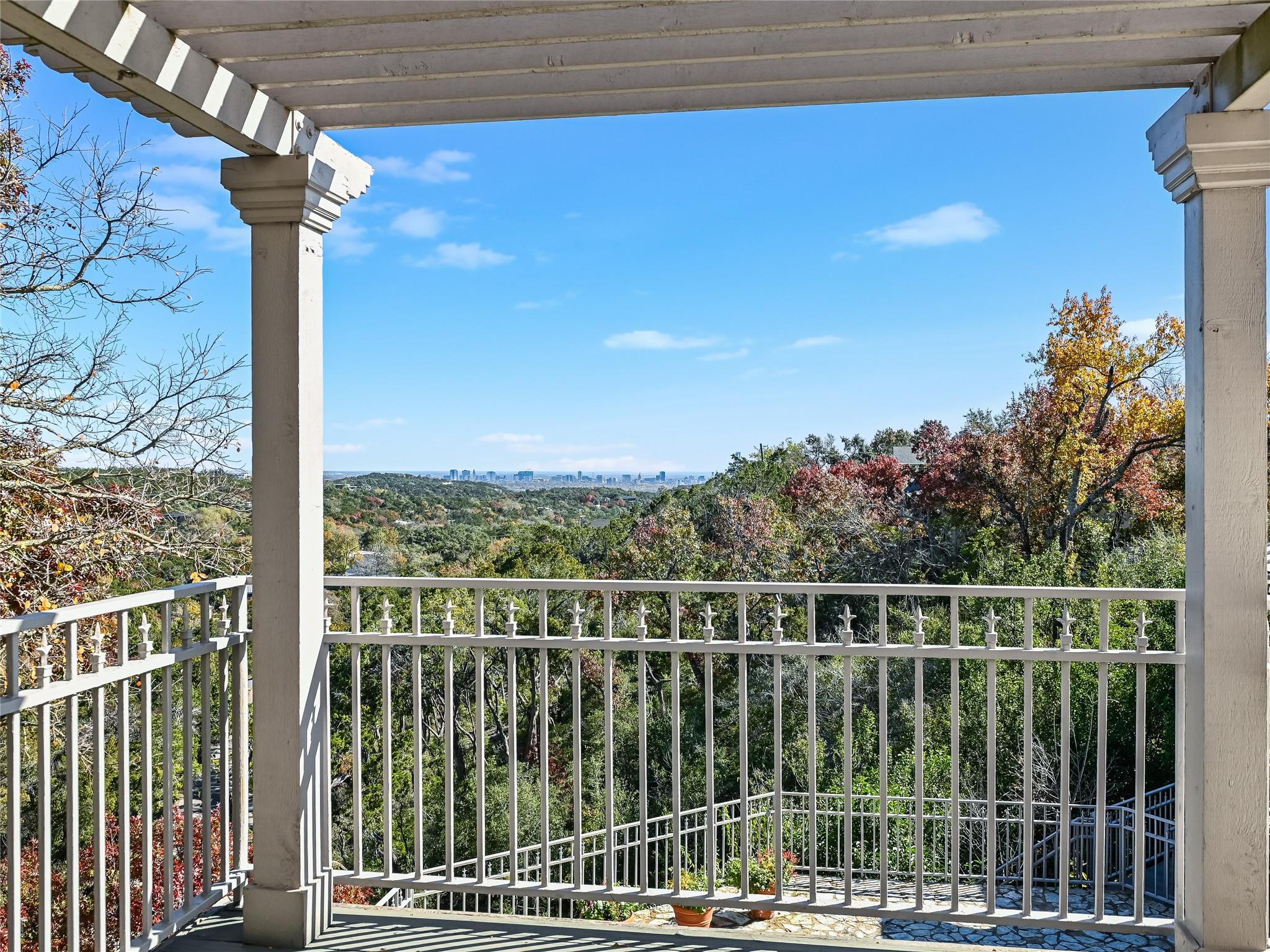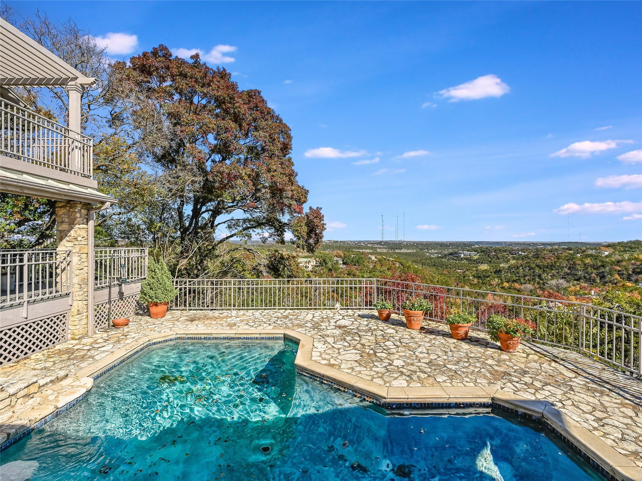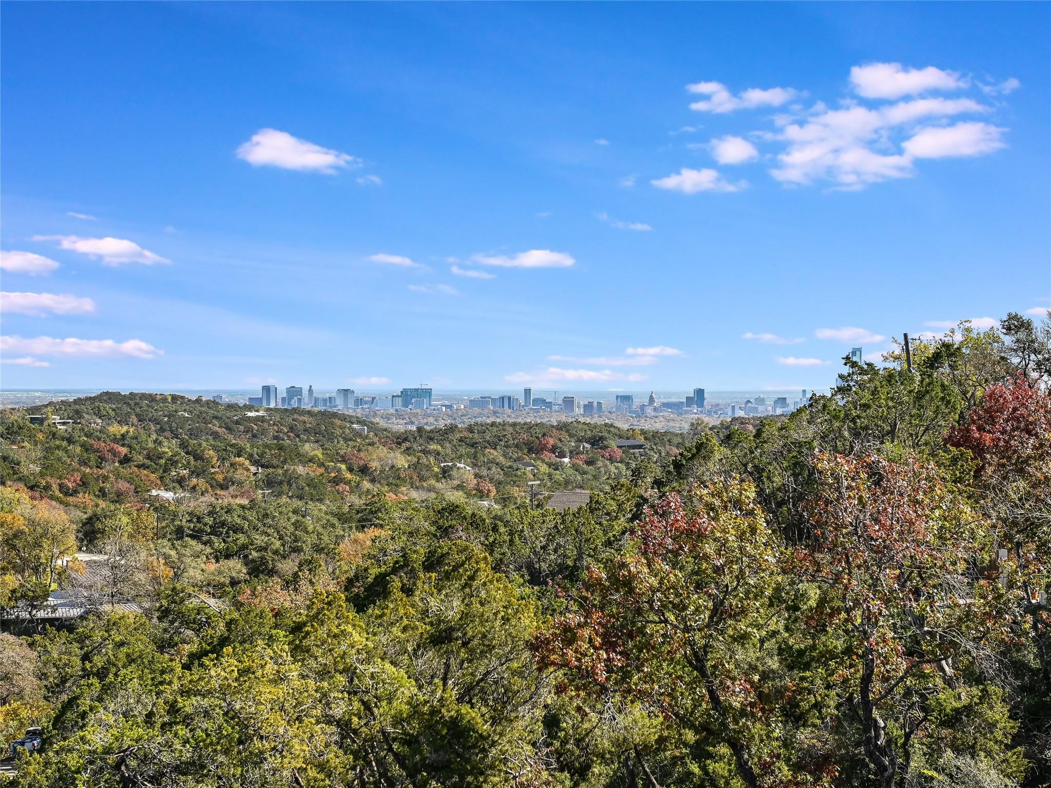 Discover the epitome of refined living in this premier residence. Atop one of West Lake Hills' highest elevations in the Austin area, this exquisite property offers a remarkable opportunity at an exceptional price. From its commanding position, relish panoramic vistas of the Campus, Domain, Downtown, Mount Larson, and the serene Wild Basin Wilderness Preserve. Step into a world of sophistication as you traverse the meticulously landscaped yard, celebrated on Central Texas Gardener (Season 23, Episode 23). The residence's architectural grandeur is accentuated by an open floor plan featuring Saltillo tile, strategically placed expansive windows, and breathtaking views from every room. The gourmet kitchen is a culinary haven, boasting a double oven, double dishwasher, new refrigerator, Silestone countertops, warming tray, and a Butler's Pantry. Entertain in style while enjoying the generously proportioned Primary Bedroom with a fireplace, expansive walk-in closet, and a luxurious Primary Bath. Your guests will be treated to an unparalleled skyline experience on the second-floor private patio. Convenience is key with easy access to entertainment, dining, and shopping options, including Barton Creek Country Club, Loop 360, and the Village of Westlake, all made stress-free by the traffic signal at Bee Caves Rd @ Redbud Trail. This property is a rare gem, presenting an opportunity for either a remodel or rebuild on a uniquely flat lot with sweeping views. Be the envy of the neighborhood and elevate your lifestyle with this unrivaled residence in the heart of Austin.