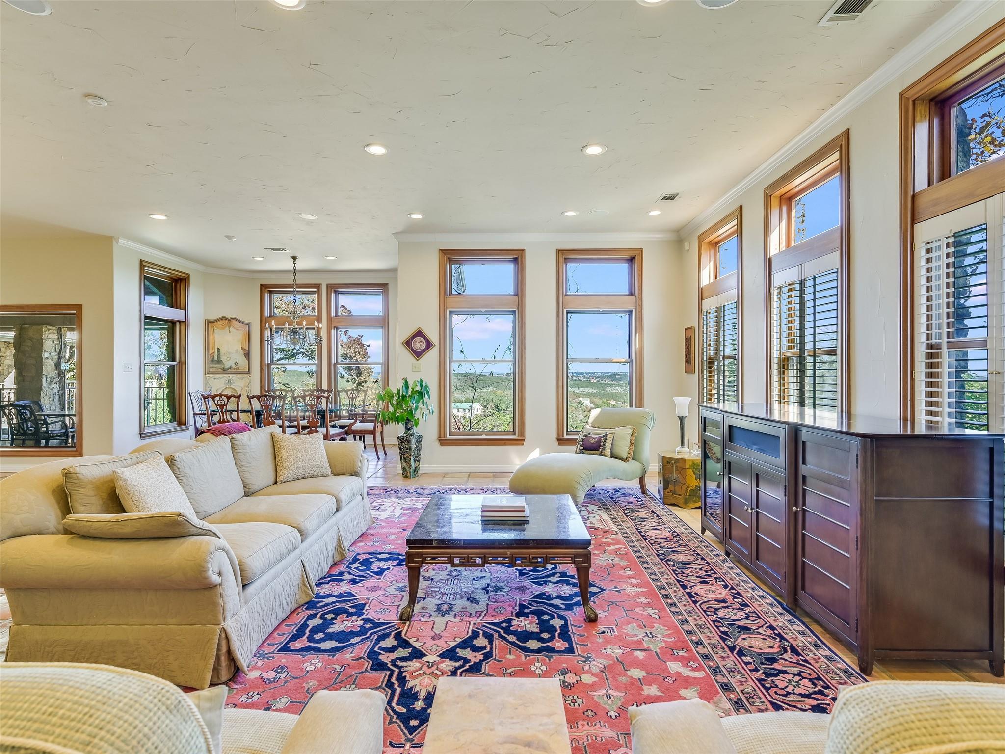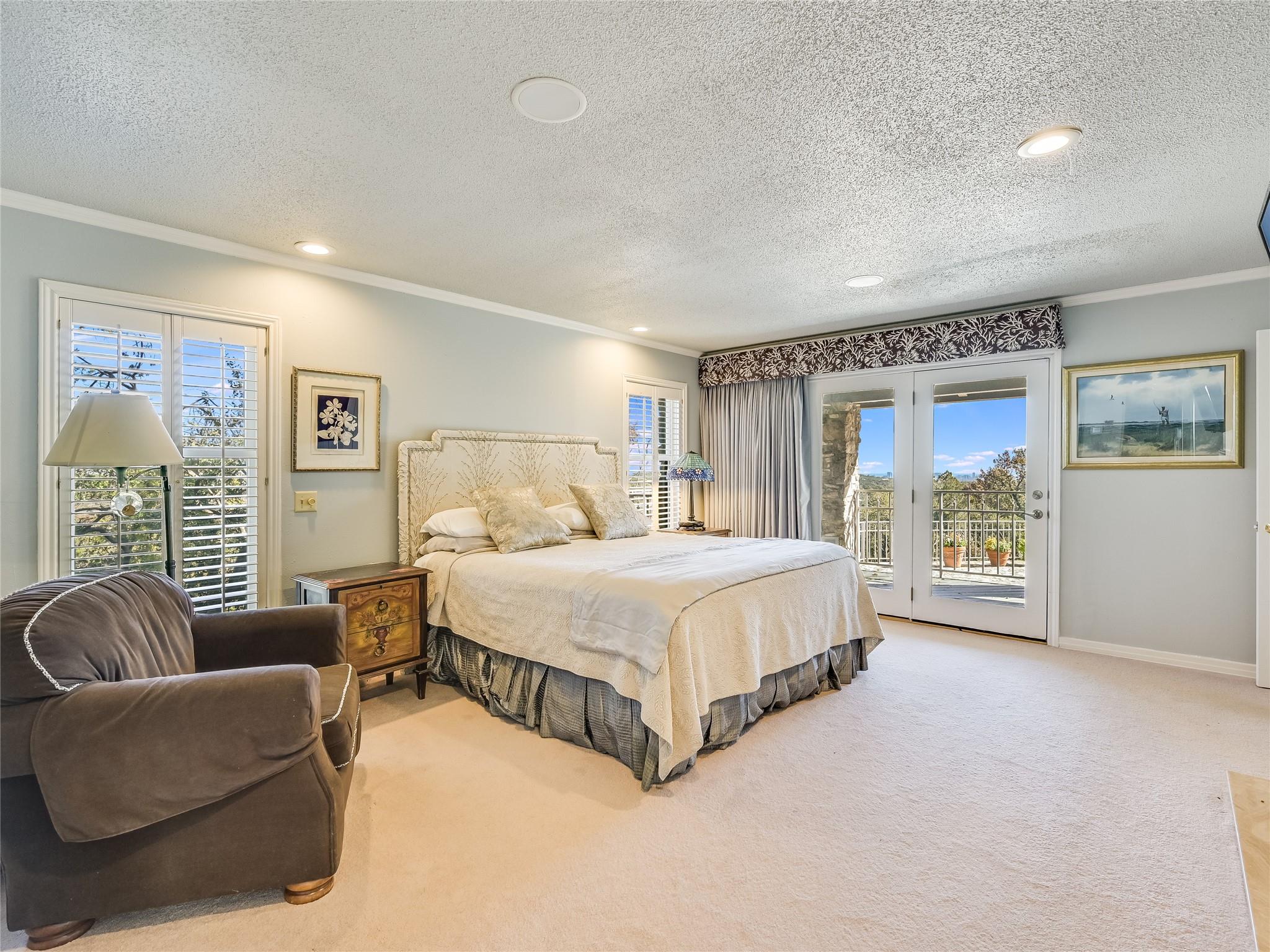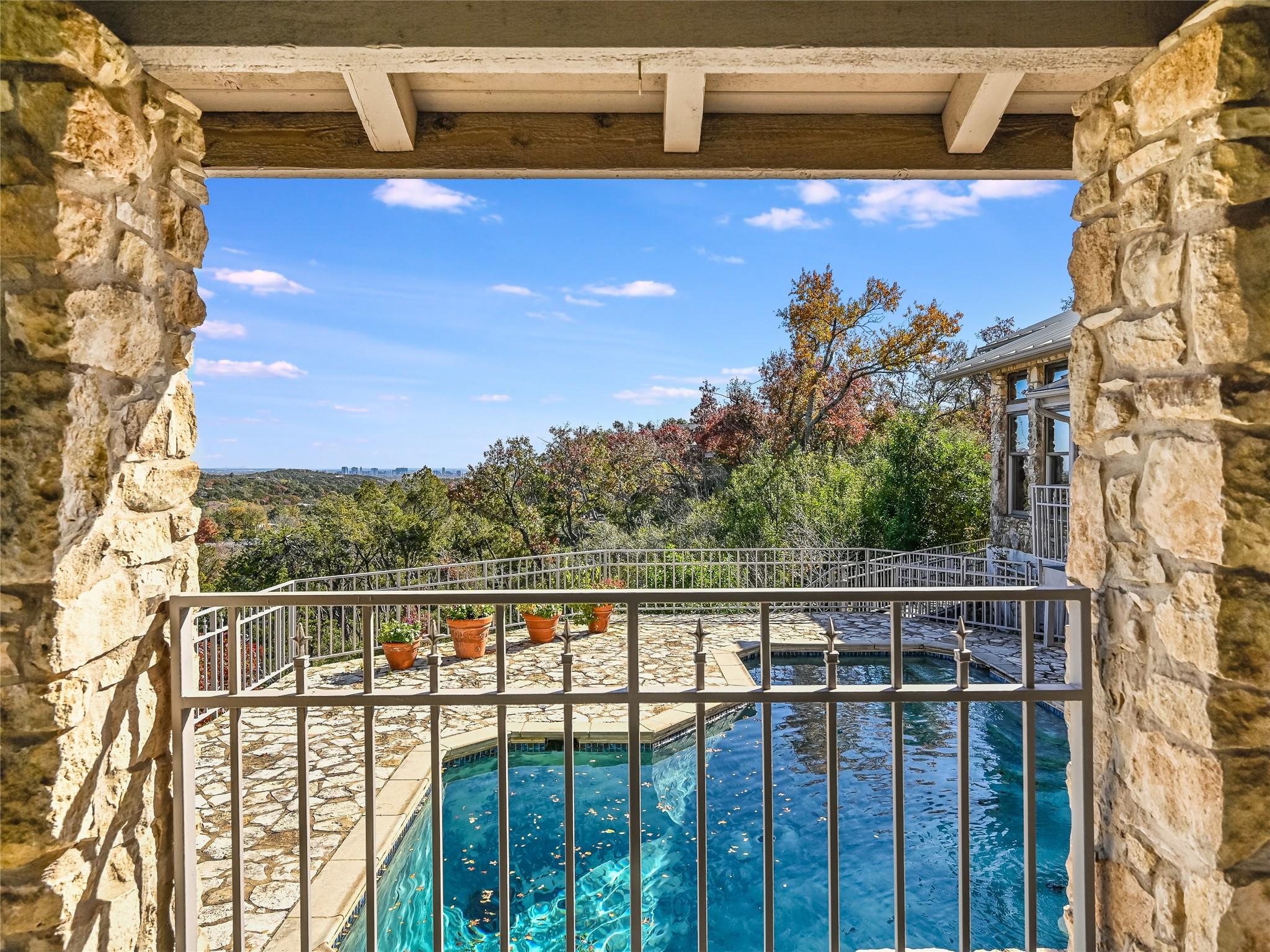 Discover the epitome of refined living in this premier residence. Atop one of West Lake Hills' highest elevations in the Austin area, this exquisite property offers a remarkable opportunity at an exceptional price. From its commanding position, relish panoramic vistas of the Campus, Domain, Downtown, Mount Larson, and the serene Wild Basin Wilderness Preserve. Step into a world of sophistication as you traverse the meticulously landscaped yard, celebrated on Central Texas Gardener (Season 23, Episode 23). The residence's architectural grandeur is accentuated by an open floor plan featuring Saltillo tile, strategically placed expansive windows, and breathtaking views from every room. The gourmet kitchen is a culinary haven, boasting a double oven, double dishwasher, new refrigerator, Silestone countertops, warming tray, and a Butler's Pantry. Entertain in style while enjoying the generously proportioned Primary Bedroom with a fireplace, expansive walk-in closet, and a luxurious Primary Bath. Your guests will be treated to an unparalleled skyline experience on the second-floor private patio. Convenience is key with easy access to entertainment, dining, and shopping options, including Barton Creek Country Club, Loop 360, and the Village of Westlake, all made stress-free by the traffic signal at Bee Caves Rd @ Redbud Trail. This property is a rare gem, presenting an opportunity for either a remodel or rebuild on a uniquely flat lot with sweeping views. Be the envy of the neighborhood and elevate your lifestyle with this unrivaled residence in the heart of Austin.
