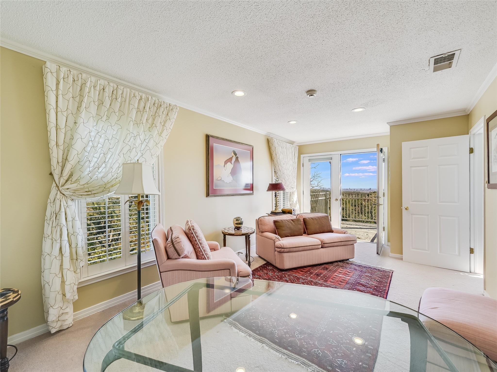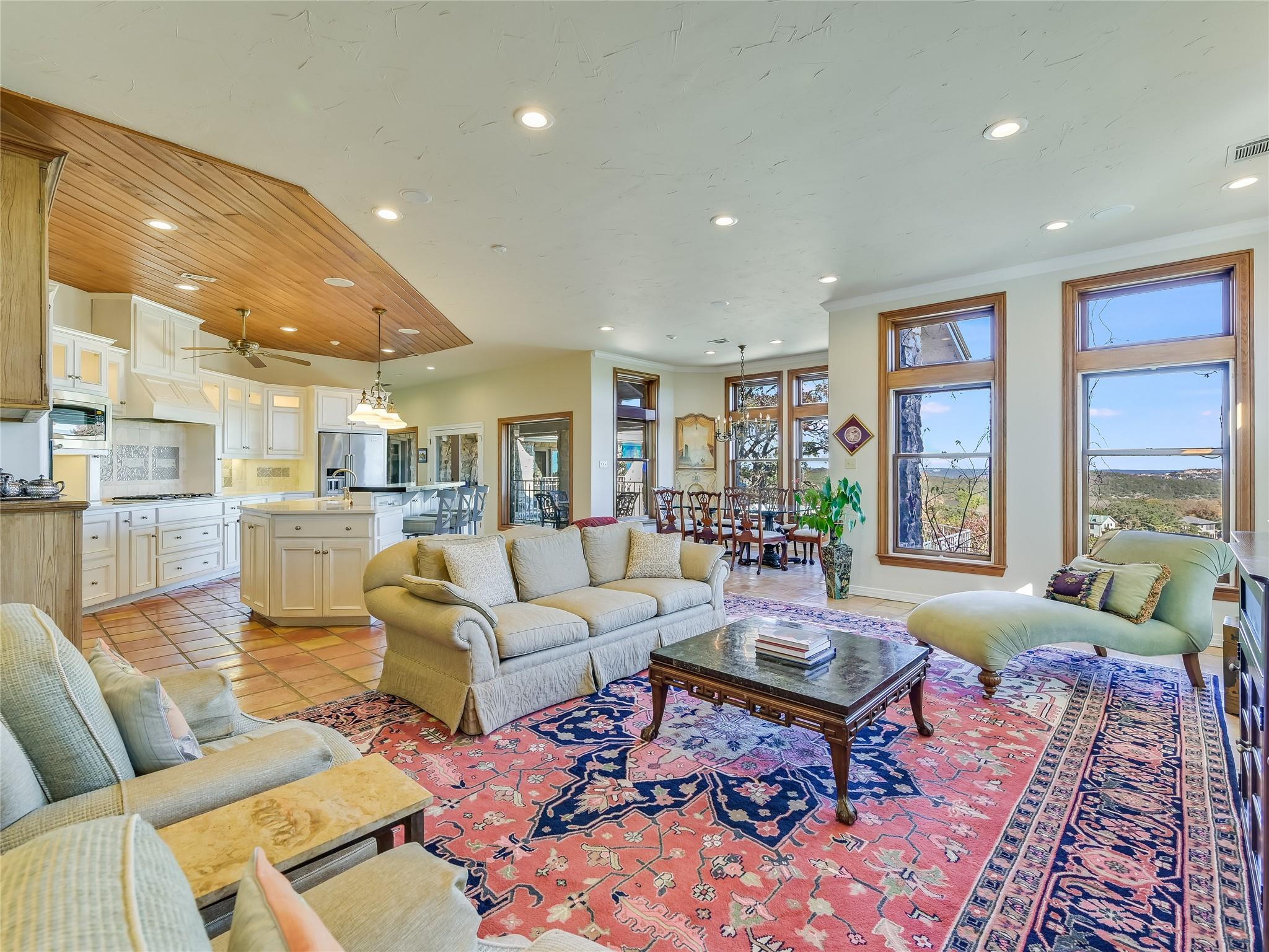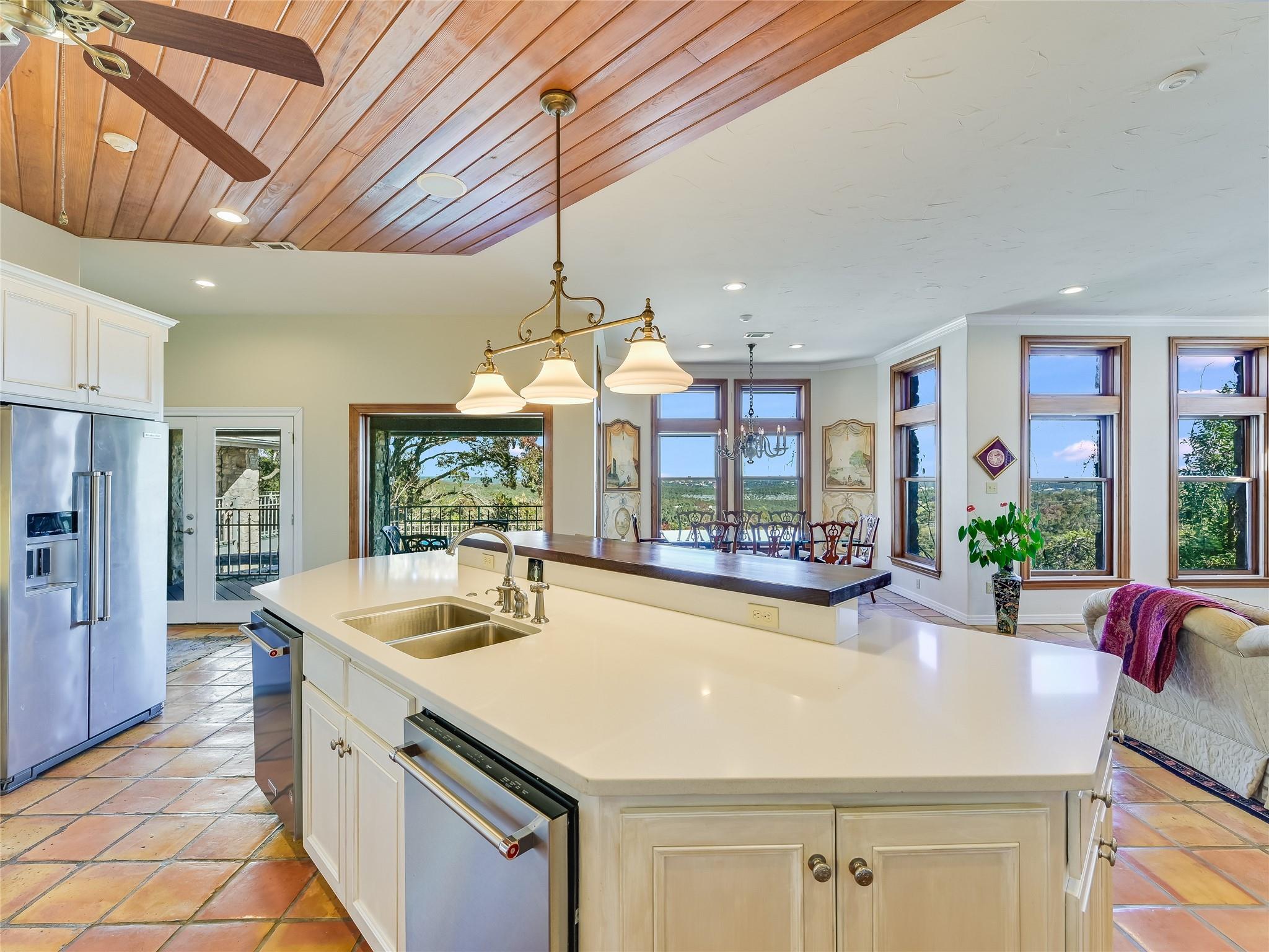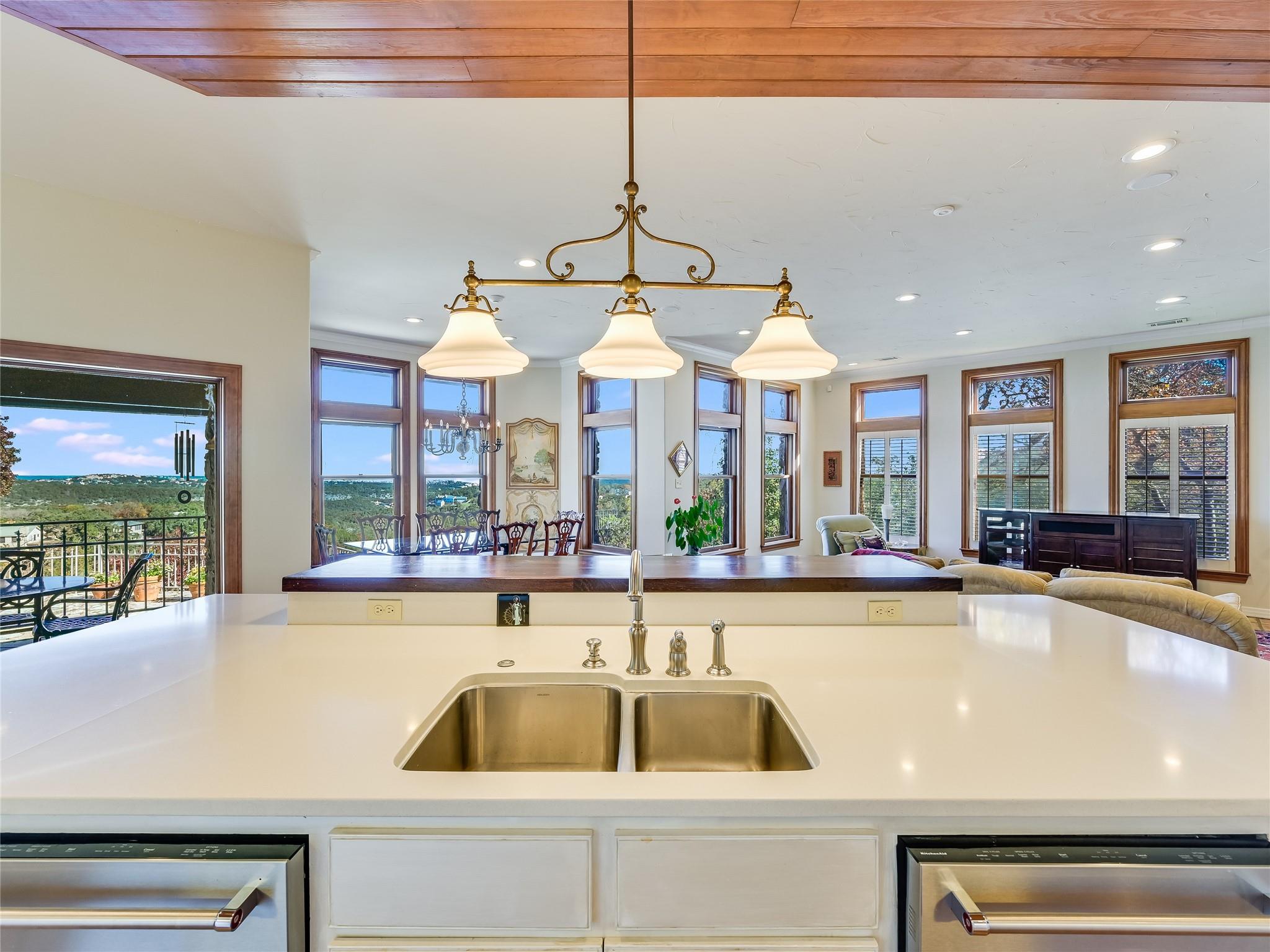 Discover the epitome of refined living in this premier residence. Atop one of West Lake Hills' highest elevations in the Austin area, this exquisite property offers a remarkable opportunity at an exceptional price. From its commanding position, relish panoramic vistas of the Campus, Domain, Downtown, Mount Larson, and the serene Wild Basin Wilderness Preserve. Step into a world of sophistication as you traverse the meticulously landscaped yard, celebrated on Central Texas Gardener (Season 23, Episode 23). The residence's architectural grandeur is accentuated by an open floor plan featuring Saltillo tile, strategically placed expansive windows, and breathtaking views from every room. The gourmet kitchen is a culinary haven, boasting a double oven, double dishwasher, new refrigerator, Silestone countertops, warming tray, and a Butler's Pantry. Entertain in style while enjoying the generously proportioned Primary Bedroom with a fireplace, expansive walk-in closet, and a luxurious Primary Bath. Your guests will be treated to an unparalleled skyline experience on the second-floor private patio. Convenience is key with easy access to entertainment, dining, and shopping options, including Barton Creek Country Club, Loop 360, and the Village of Westlake, all made stress-free by the traffic signal at Bee Caves Rd @ Redbud Trail. This property is a rare gem, presenting an opportunity for either a remodel or rebuild on a uniquely flat lot with sweeping views. Be the envy of the neighborhood and elevate your lifestyle with this unrivaled residence in the heart of Austin.