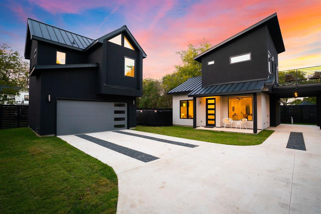 2008 Prather is truly one-of-a-kind as it’s the first time in 78704 a property consisting of at-least 8-bedrooms and over 4600sqft of space with a pool is being offered to the market. Constructed by one of the top builders in the area, MAG Construction, the unique property consists of a main house, ADU, and garage apartment making the opportunities for this property endless. The main house consists of a spacious 3176 sqft four bedroom/three and a half bath layout with massive windows showering the home with natural light. The soaring vaulted ceiling in the living room create an inviting setting for entertaining family and friends. The primary suite is downstairs and features an incredible walk in closet with wall to wall built in shelves and display case. Upstairs features three oversized secondary guest rooms, a flex space perfect for an office or play area, and a massive second living space upstairs that showcases a wet bar, balcony, and floor to ceiling windows. The spacious 3-bedroom/2.5 bath guest house features primary bedroom on the main floor, a half-bath conveniently located in the common area for guests, and two secondary bedrooms upstairs with access to a spacious second story balcony. The rear unit also has a detached two-car garage with an impressive upstairs apartment boasting vaulted ceilings and a kitchenette. The private pool is the cherry on top to this property and makes it a can’t miss.