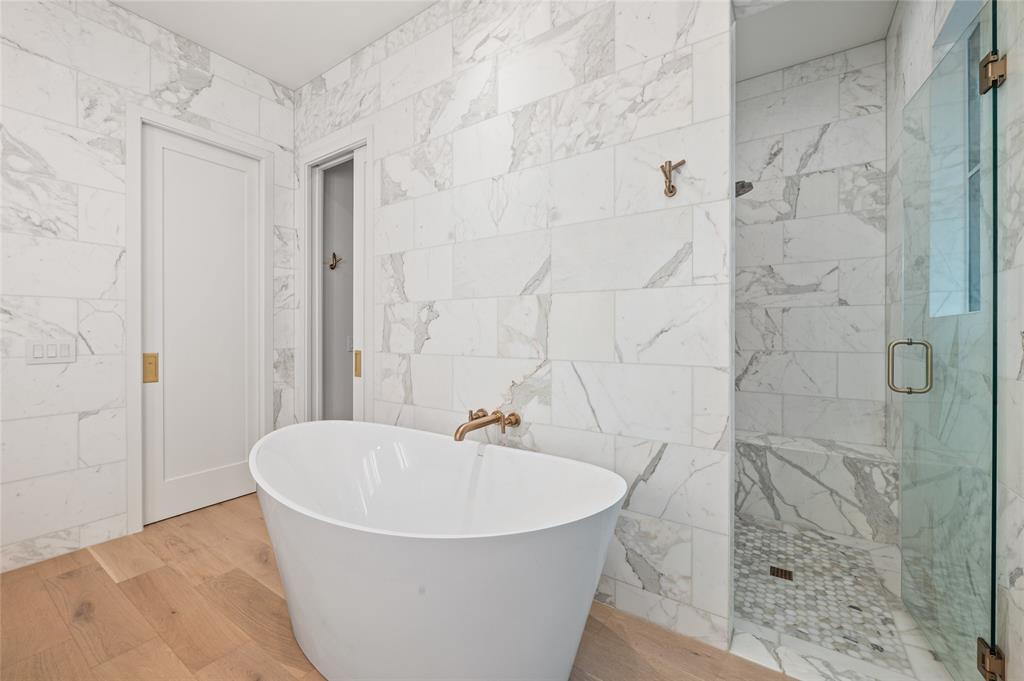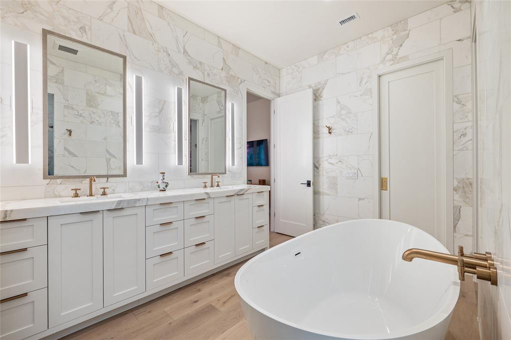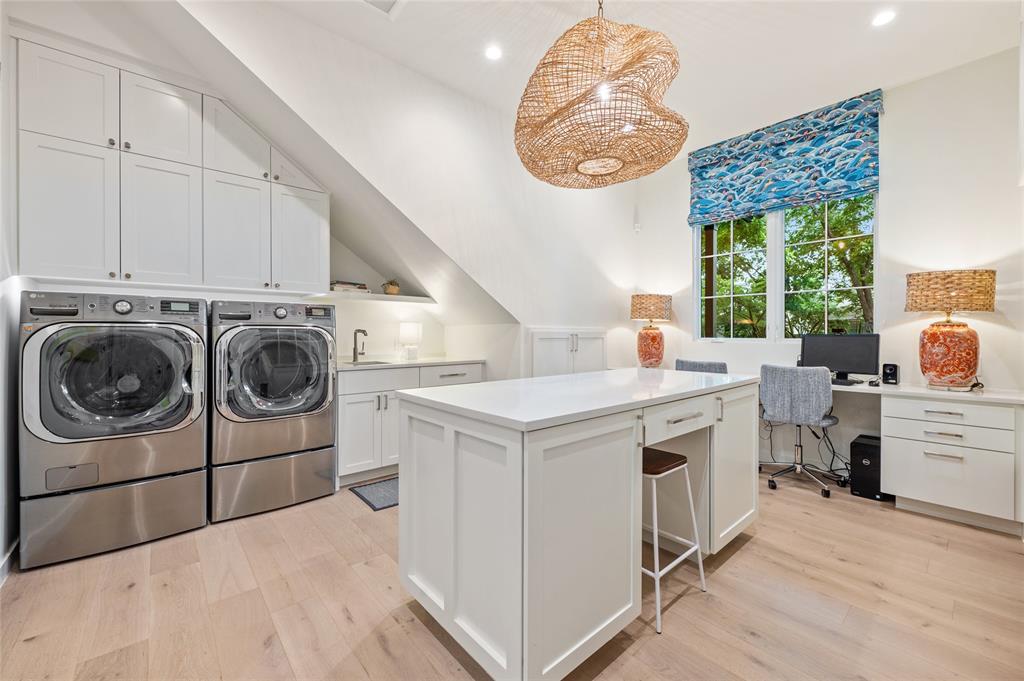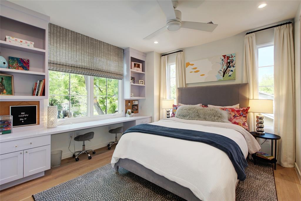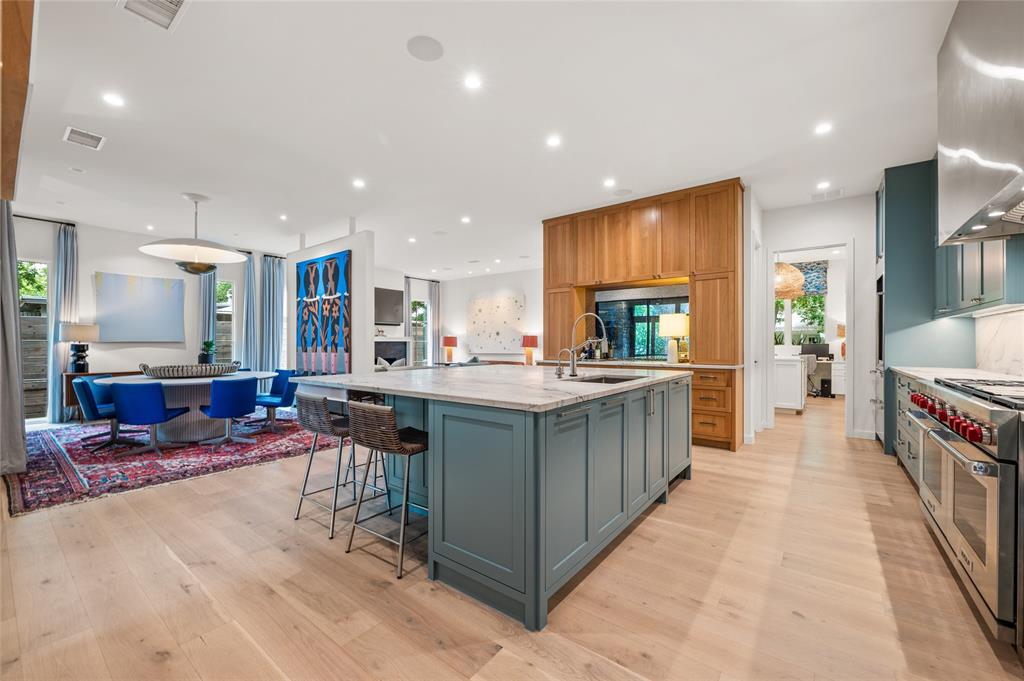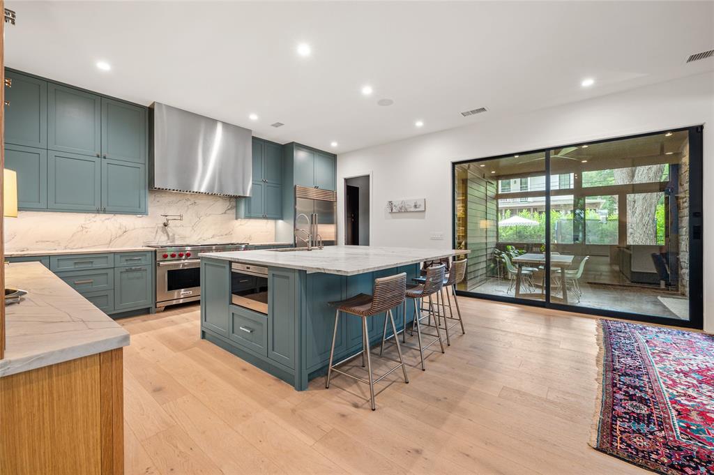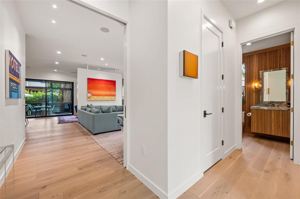 Built in 2022 by Roost Custom Homes, this 3751sf home offers 4 bedrooms (including the owner's retreat downstairs and 3 upstairs), and 3 full baths and 2 half baths (including a dedicated pool bath with exterior access), plus an additional 335sf of screen porch living space that blends indoor and outdoor entertaining. With wide-plank white oak wood floors on all floors, the gourmet kitchen is equipped witha 60" Wolf double oven/range/griddle/charbroiler, a 48" Sub-Zero built-in refrigerator, a 30" Sub-Zero column wine refrigerator with double refrigerator drawers, a Scotsman ice maker, and a Miele dishwasher. Along with a dedicated walk-in pantry, the home also features a marble coffee bar/butler's pantry with a Sub-Zero beverage center and sink. A rare find in Austin, this home is equipped with two fireplaces: a gas log fireplace wrapped in soapstone & wood paneling in the living room, and a wood-burning stone fireplace in the screen porch. The oversized first-floor laundry room (off the garage + carport) triples as a craft space/gift wrapping room/central drop zone featuring floor-to-ceiling built-in cubbies, custom cabinetry, a quartz center island with storage, and a built-in workspace. With gorgeous views of the backyard, the first-floor primary suite's Juliet balcony overlooks the heated Texas Tiny Pool, complete with a UV system and automatic integrated pool cover. Wrapped in floor-to-ceiling Calacatta marble, the luxurious primary bathroom is complete with a walk-in shower, a soaking tub, and an oversized closet with custom cabinetry and drawers. Other features of the home include a dedicated first-floor office with wood paneling and floor-to-ceiling custom cabinetry, custom built-ins and walk-in closets in all secondary bedrooms, and finished attic space with an oversized second living area with surround sound, an enclosed bonus room (currently used as a 5th bedroom), and oversized enclosed walk-in storage. Easily shown by appointment only. Owner/agent.