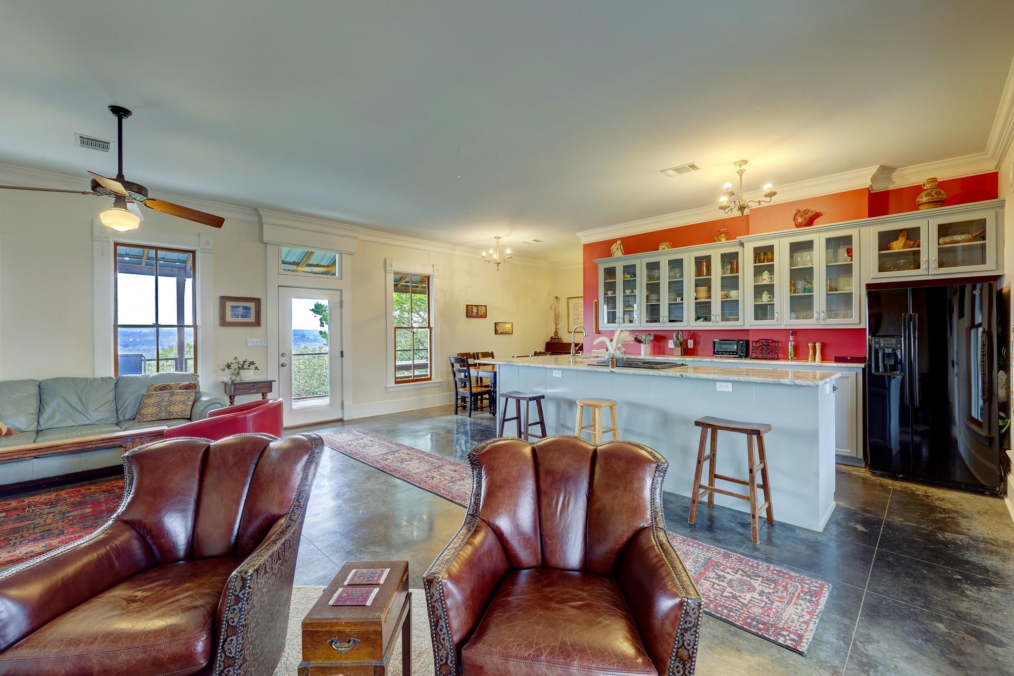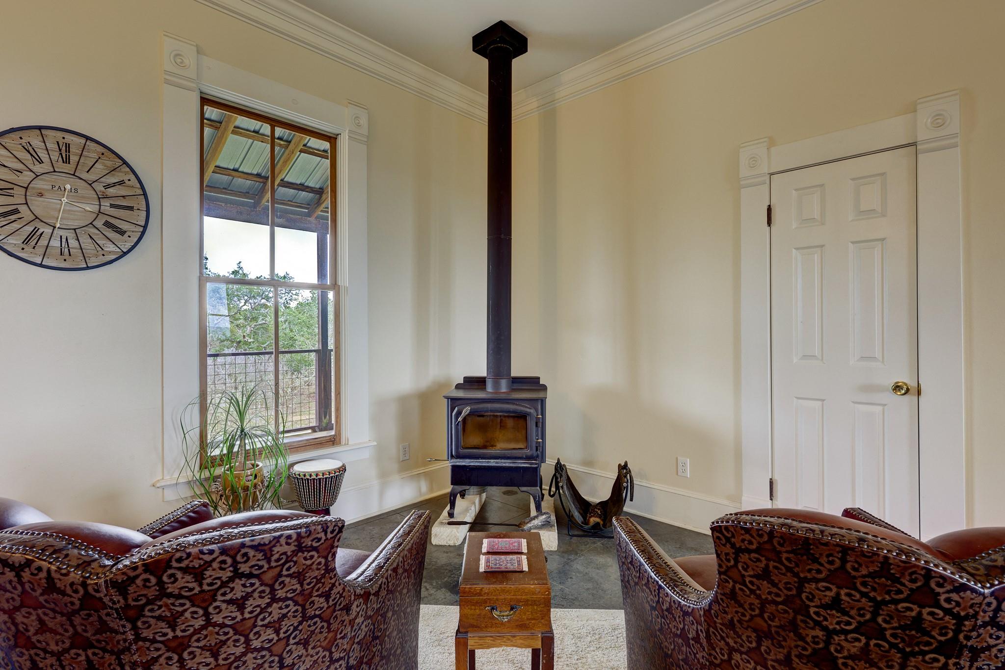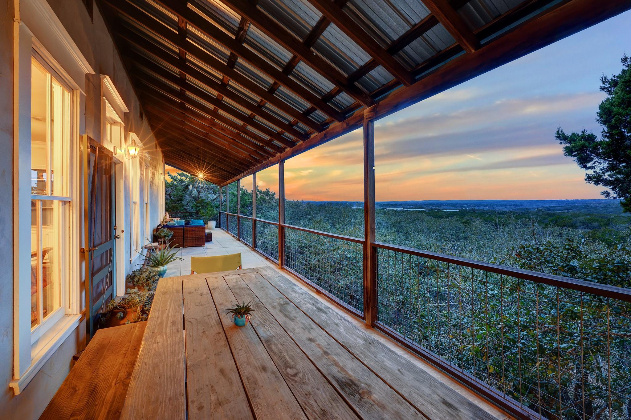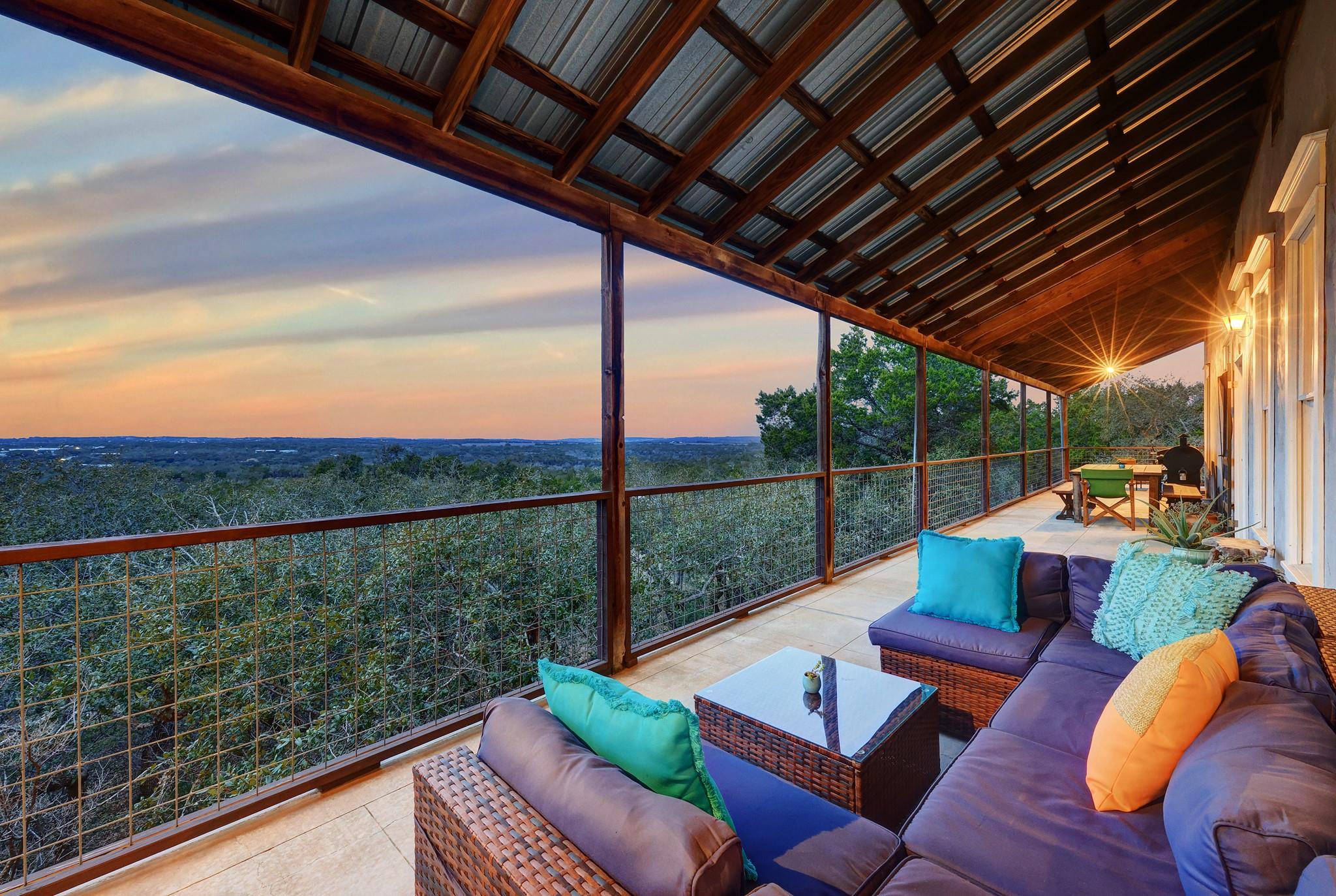 Significant Price Reduction! Must see it to appreciate its exquisite beauty! Truly amazing, tranquil 11.87 +/- acres of unrestricted land, offers one of the best sunset views in Central Texas. The home features ease of indoor/outdoor living, and entertaining is easy with its wrap around balcony and multiple outdoor spaces! Gated entrance, private and secluded, fully fenced property. There is an existing wildlife exemption and much lower tax rate. There are so many possibilities, including commercial uses or an equestrian facility. The home is on a 20,000 gallon rainwater cistern with state-of-the-art filtration system. There is a year-round garden, hunting is permissible and a gun range is on site. Quick access to Fitzhugh Road which is famous for breweries, wineries and venues! The hacienda-style home (per TCAD) and downstairs living quarters (measured) total 2,306 sq ft and were custom built in 1994 with 10 ft ceilings. The room with full bath downstairs can be used as an office, guest bedroom or flex space. Wake up and enjoy your mornings on the fabulous, full wrap around porch with views of the peaceful grounds and Hill Country. The home features custom crown molding, reclaimed bead-board ceilings in the bathrooms and concrete floors. Updates include gorgeous granite countertops in the kitchen and bathroom. The property also offers a guest cottage and commercial potential. The charming guest cottage measures at 414 square foot cottage has a full kitchen, bathroom, two loft areas for sleeping and is separately fenced. The cottage sits tucked away on the property, and has a separate utility meter. There is also a 50 amp RV electrical hookup. The spacious pull through garage offers a workshop. This is a truly unique and gorgeous property adorned with mature trees in a premiere location. The possibilities are endless! Buyer to independently verify measurements, as they are not guaranteed.