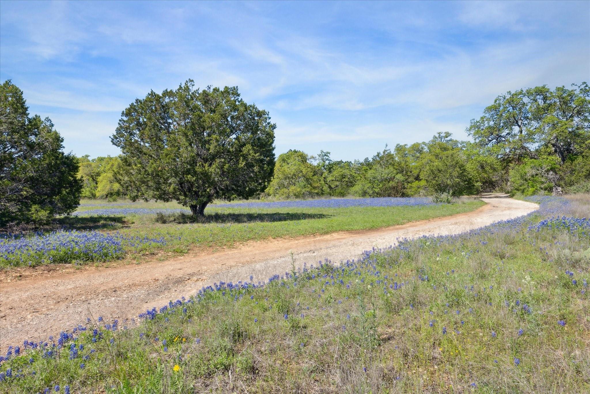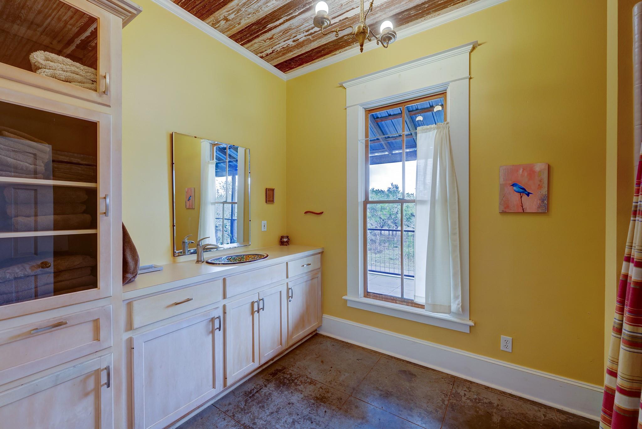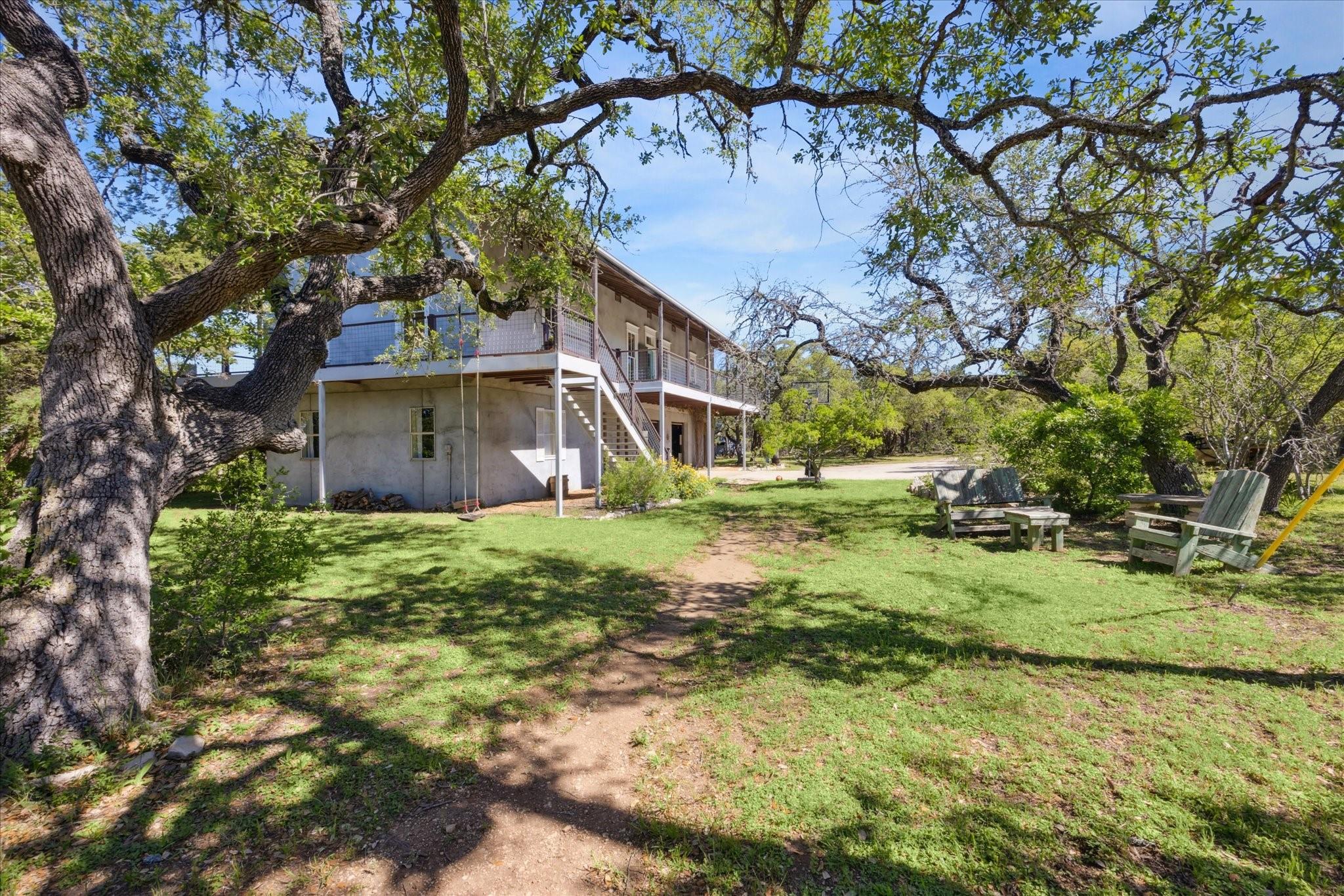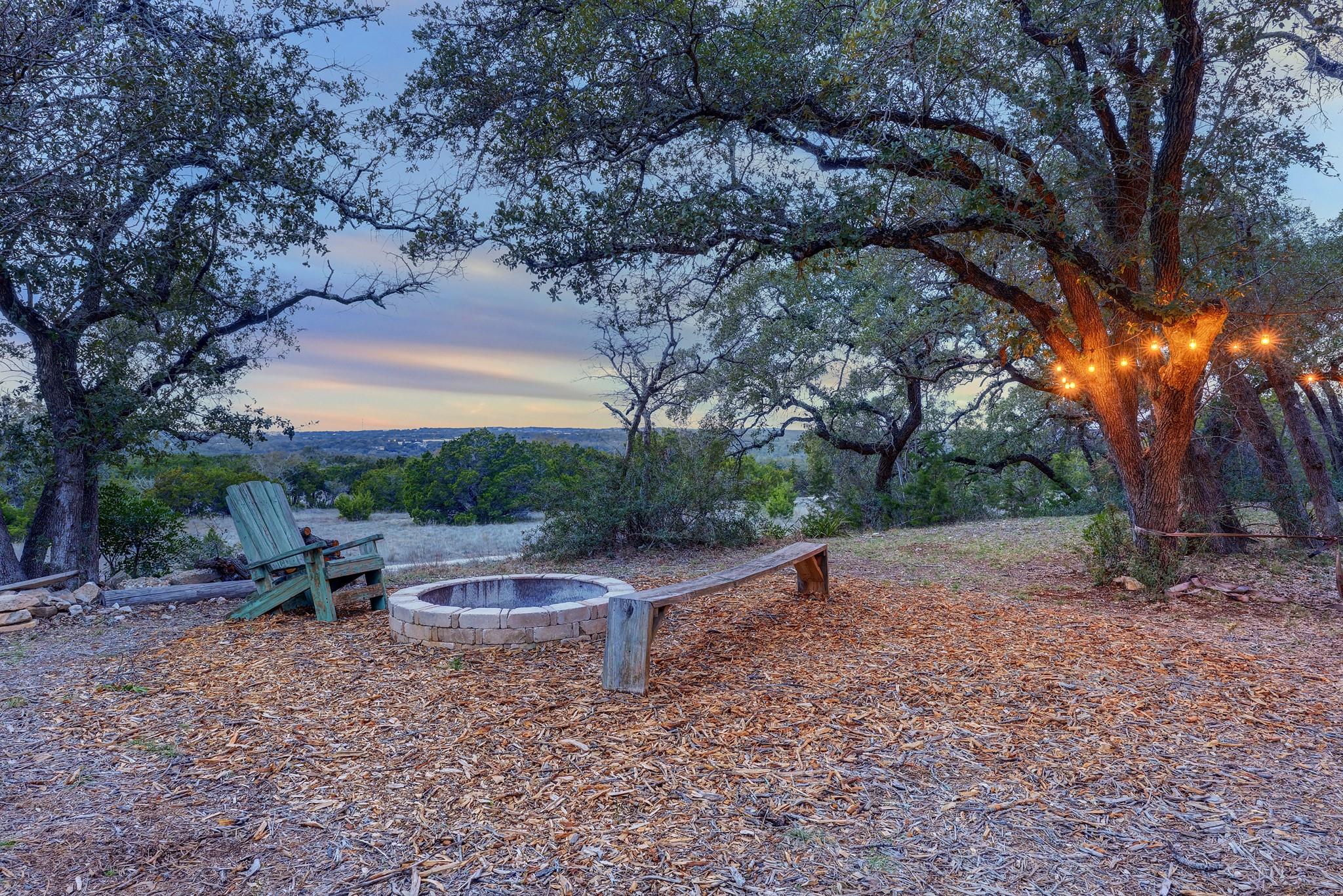 Significant Price Reduction! Must see it to appreciate its exquisite beauty! Truly amazing, tranquil 11.87 +/- acres of unrestricted land, offers one of the best sunset views in Central Texas. The home features ease of indoor/outdoor living, and entertaining is easy with its wrap around balcony and multiple outdoor spaces! Gated entrance, private and secluded, fully fenced property. There is an existing wildlife exemption and much lower tax rate. There are so many possibilities, including commercial uses or an equestrian facility. The home is on a 20,000 gallon rainwater cistern with state-of-the-art filtration system. There is a year-round garden, hunting is permissible and a gun range is on site. Quick access to Fitzhugh Road which is famous for breweries, wineries and venues! The hacienda-style home (per TCAD) and downstairs living quarters (measured) total 2,306 sq ft and were custom built in 1994 with 10 ft ceilings. The room with full bath downstairs can be used as an office, guest bedroom or flex space. Wake up and enjoy your mornings on the fabulous, full wrap around porch with views of the peaceful grounds and Hill Country. The home features custom crown molding, reclaimed bead-board ceilings in the bathrooms and concrete floors. Updates include gorgeous granite countertops in the kitchen and bathroom. The property also offers a guest cottage and commercial potential. The charming guest cottage measures at 414 square foot cottage has a full kitchen, bathroom, two loft areas for sleeping and is separately fenced. The cottage sits tucked away on the property, and has a separate utility meter. There is also a 50 amp RV electrical hookup. The spacious pull through garage offers a workshop. This is a truly unique and gorgeous property adorned with mature trees in a premiere location. The possibilities are endless! Buyer to independently verify measurements, as they are not guaranteed.