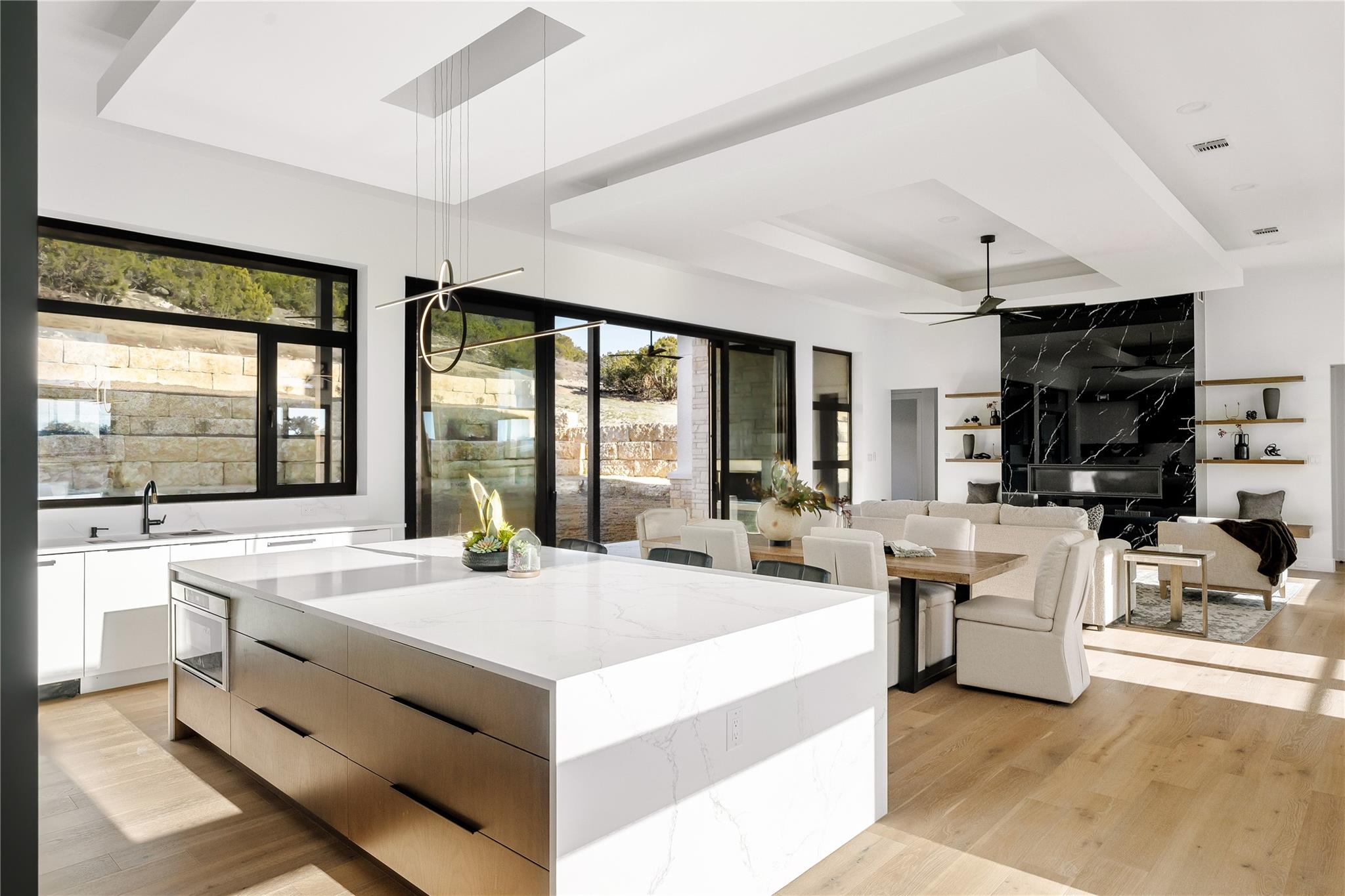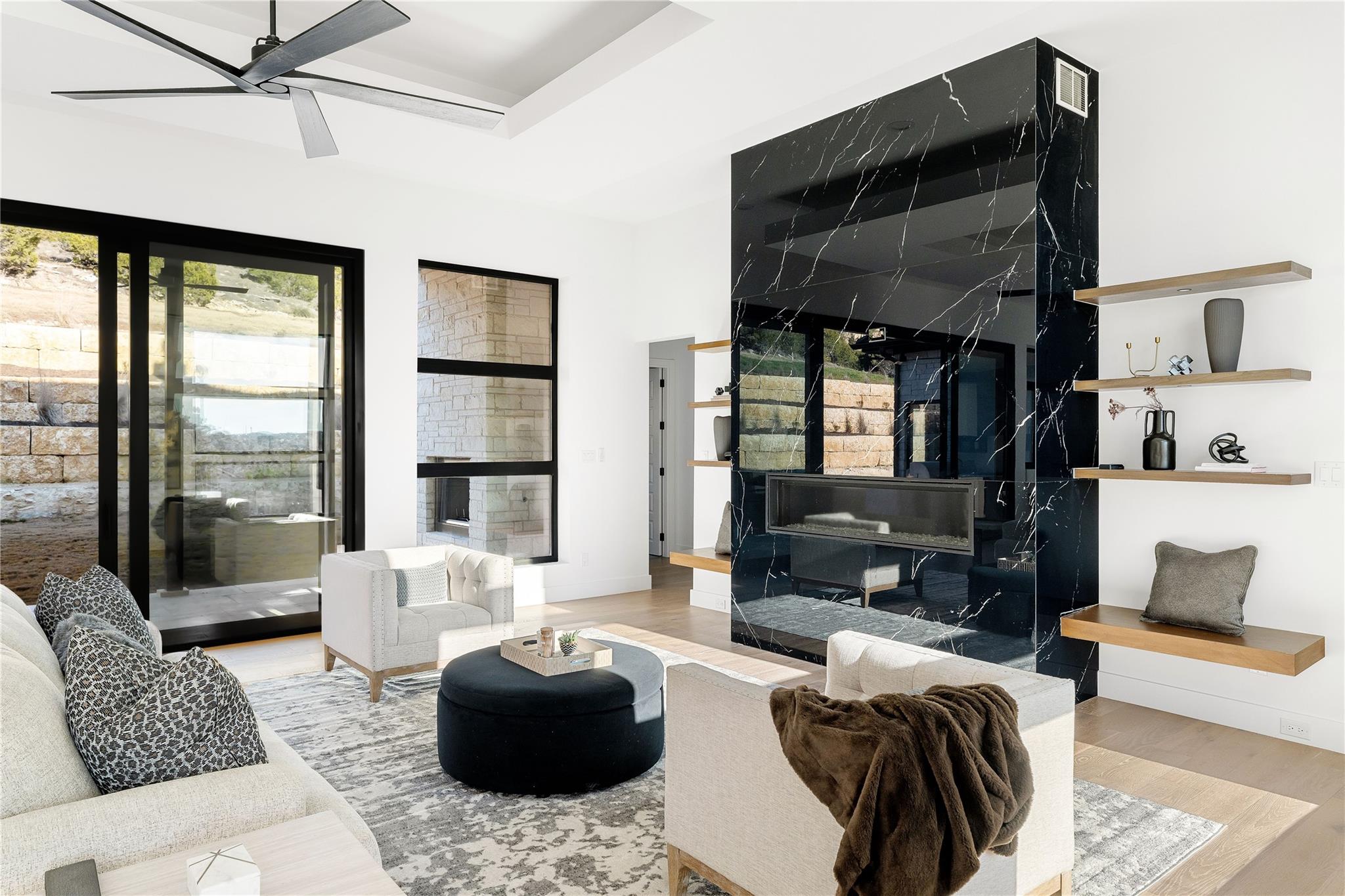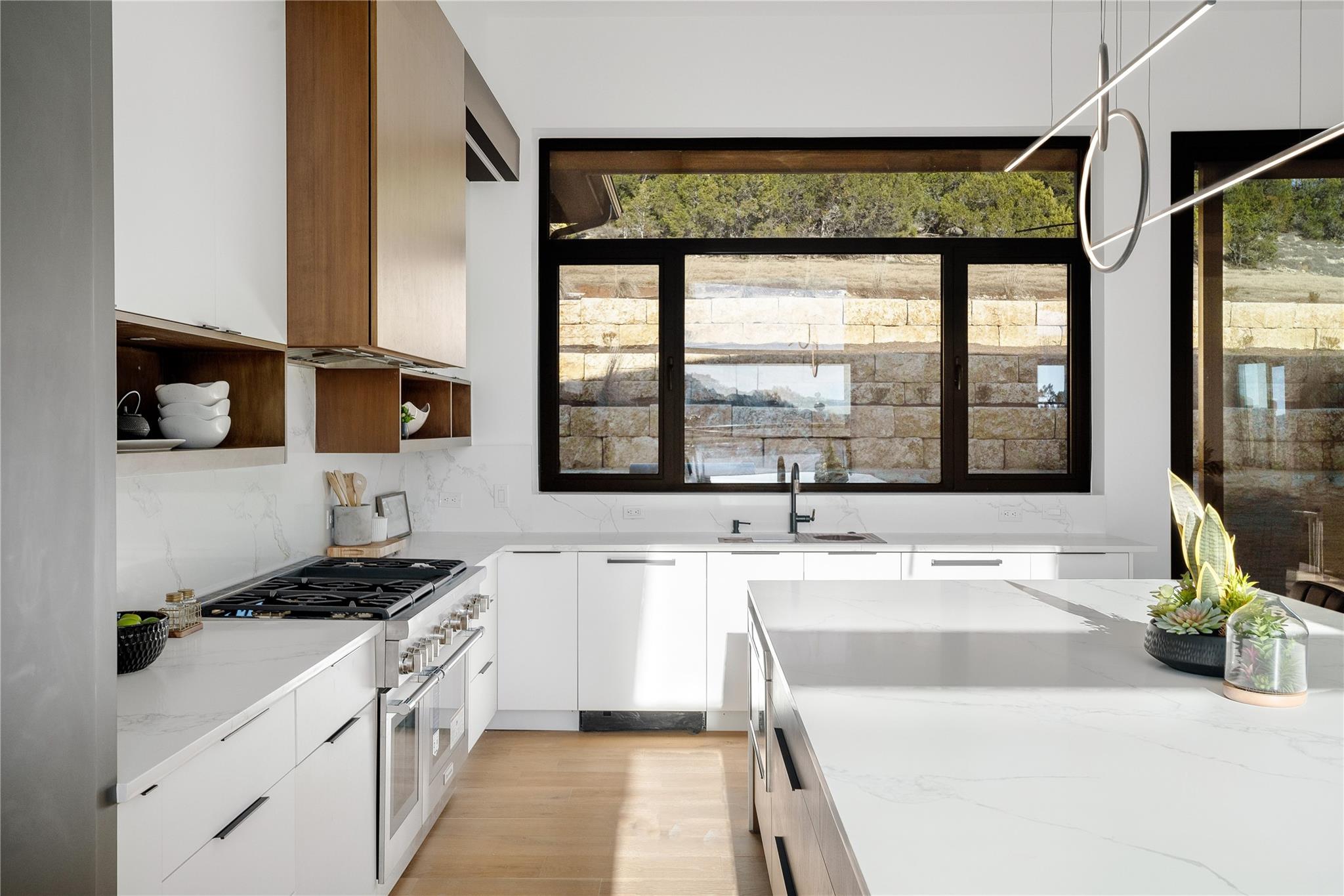 UPDATE: Builder is installing pool and updating landscaping. Indulge in the epitome of modern luxury with this exquisite custom residence gracefully positioned in the heart of the picturesque Bella Montagna community of Lakeway. Occupying a generous 1.12-acre parcel, this contemporary masterpiece seamlessly merges architectural sophistication with the natural beauty of its surroundings, presenting a captivating panorama from every angle. Step inside to discover a thoughtfully designed open layout that defines a new standard of elegance. The chef's dream kitchen stands as the focal point, adorned with top-of-the-line appliances that effortlessly combine form and function. From culinary delights to entertaining guests, this space caters to every lifestyle need. For the wine enthusiast, a luxurious cellar awaits, providing an intimate space to showcase and savor your prized collection. Multiple balconies invite you to embrace the outdoor ambiance, offering private retreats for relaxation or social gatherings with guests against a backdrop of stunning vistas. Immerse yourself in the tactile luxury of rich hardwood floors that traverse the residence, enhancing the contemporary aesthetic while providing a warm and inviting atmosphere. The spa-inspired primary bath is a sanctuary of indulgence, featuring meticulous design and high-end fixtures to create a haven of tranquility. Adding a touch of global allure, uniquely crafted doors imported from Turkey stand as both functional and artistic elements, contributing to the distinct character of this extraordinary home. As a future homeowner, the possibilities extend beyond the existing grandeur. Elevate your living experience in this remarkable property that seamlessly blends modern design, natural beauty, and the potential for personalized luxury.