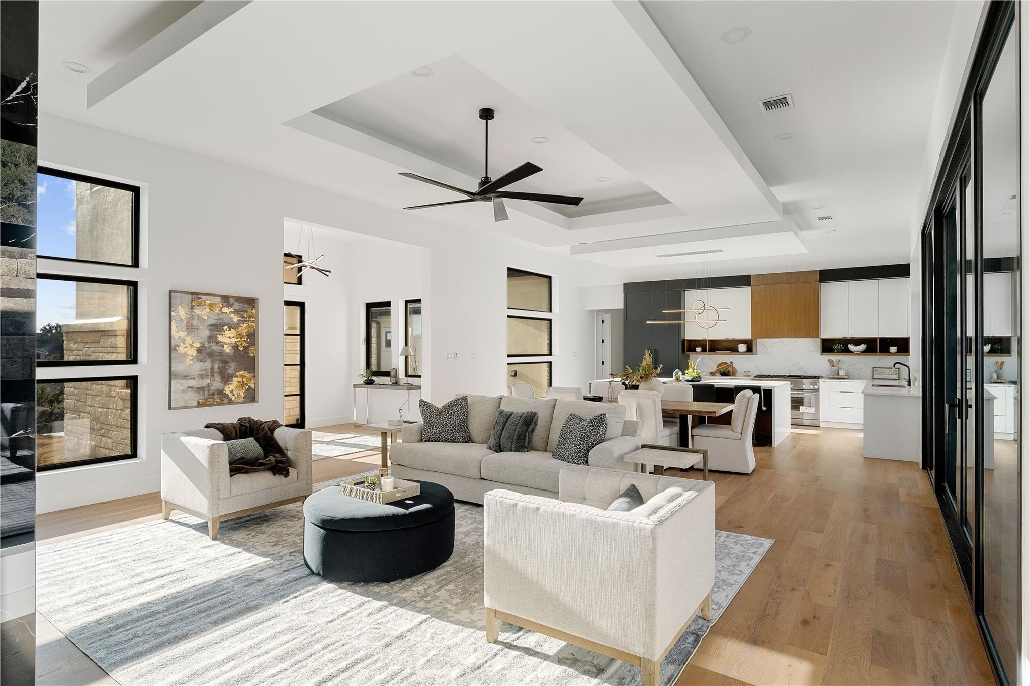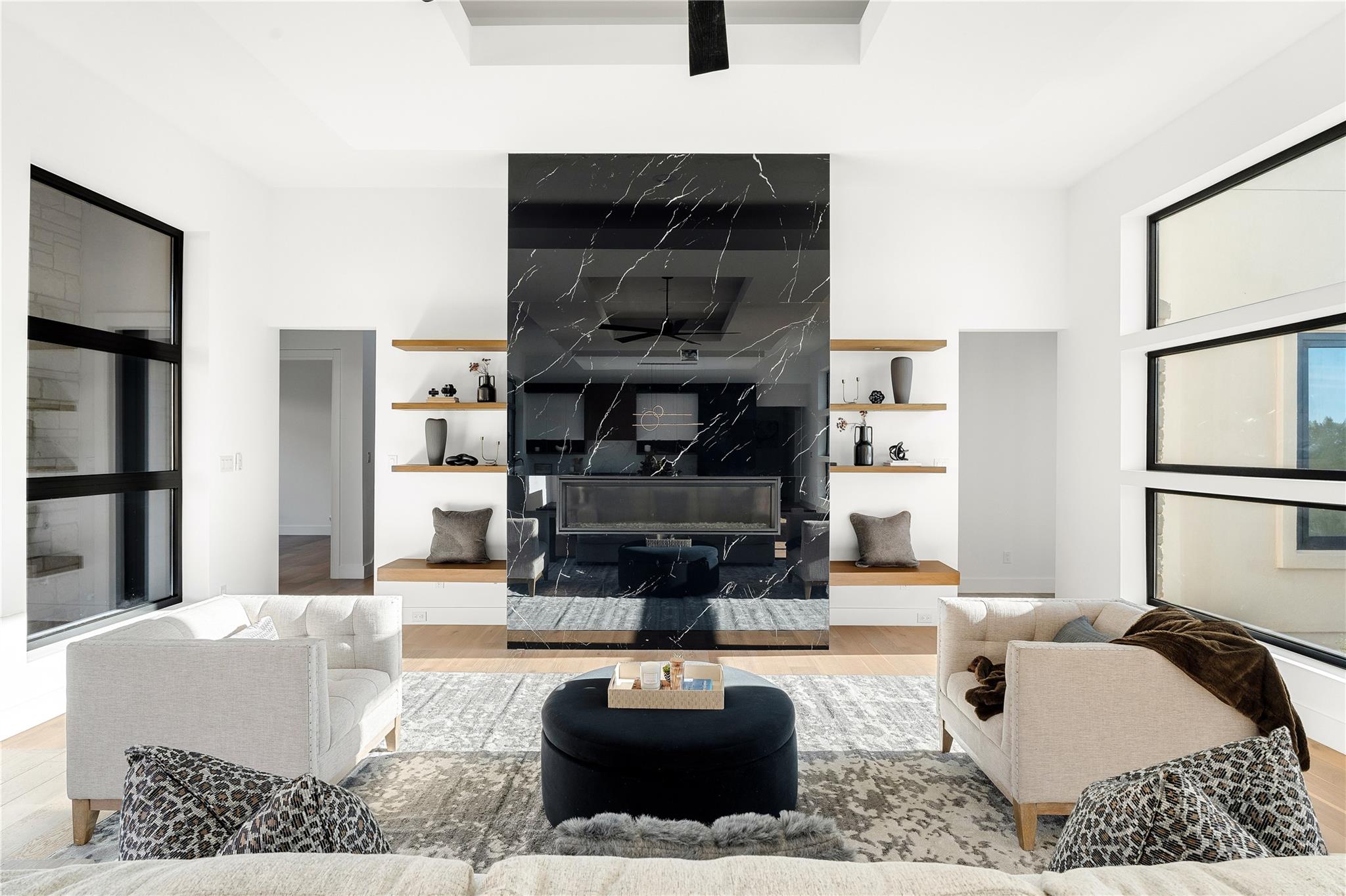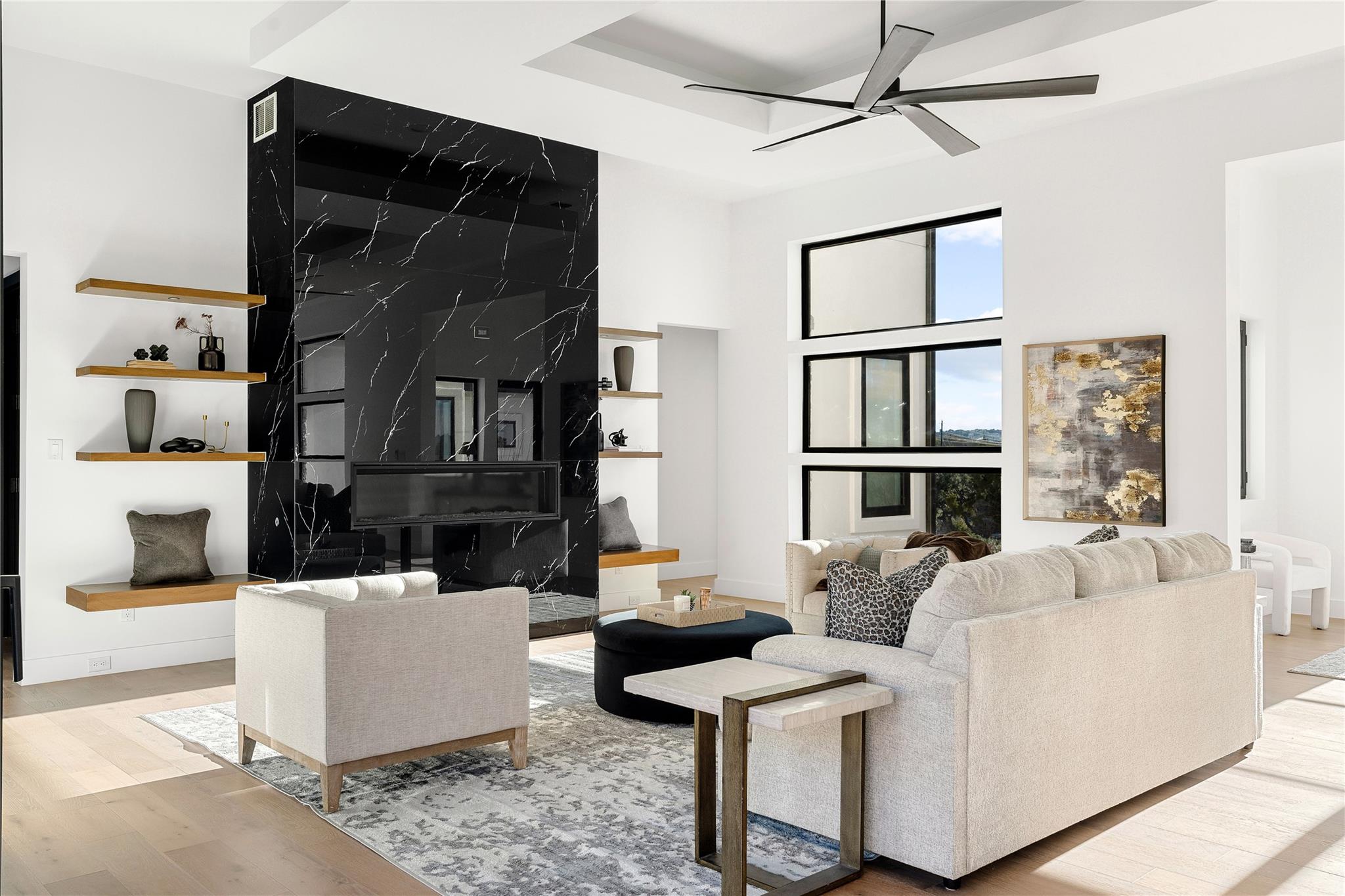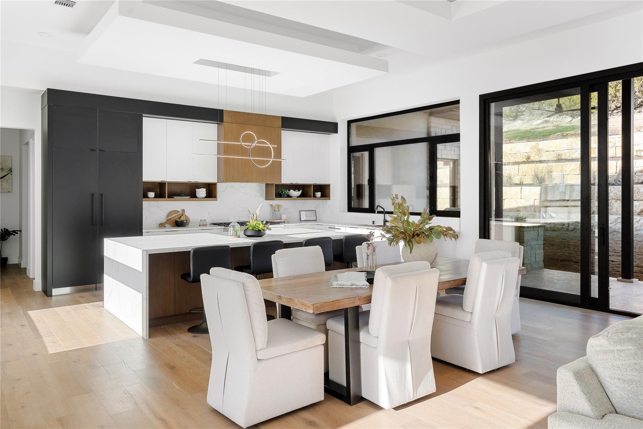 UPDATE: Builder is installing pool and updating landscaping. Indulge in the epitome of modern luxury with this exquisite custom residence gracefully positioned in the heart of the picturesque Bella Montagna community of Lakeway. Occupying a generous 1.12-acre parcel, this contemporary masterpiece seamlessly merges architectural sophistication with the natural beauty of its surroundings, presenting a captivating panorama from every angle. Step inside to discover a thoughtfully designed open layout that defines a new standard of elegance. The chef's dream kitchen stands as the focal point, adorned with top-of-the-line appliances that effortlessly combine form and function. From culinary delights to entertaining guests, this space caters to every lifestyle need. For the wine enthusiast, a luxurious cellar awaits, providing an intimate space to showcase and savor your prized collection. Multiple balconies invite you to embrace the outdoor ambiance, offering private retreats for relaxation or social gatherings with guests against a backdrop of stunning vistas. Immerse yourself in the tactile luxury of rich hardwood floors that traverse the residence, enhancing the contemporary aesthetic while providing a warm and inviting atmosphere. The spa-inspired primary bath is a sanctuary of indulgence, featuring meticulous design and high-end fixtures to create a haven of tranquility. Adding a touch of global allure, uniquely crafted doors imported from Turkey stand as both functional and artistic elements, contributing to the distinct character of this extraordinary home. As a future homeowner, the possibilities extend beyond the existing grandeur. Elevate your living experience in this remarkable property that seamlessly blends modern design, natural beauty, and the potential for personalized luxury.