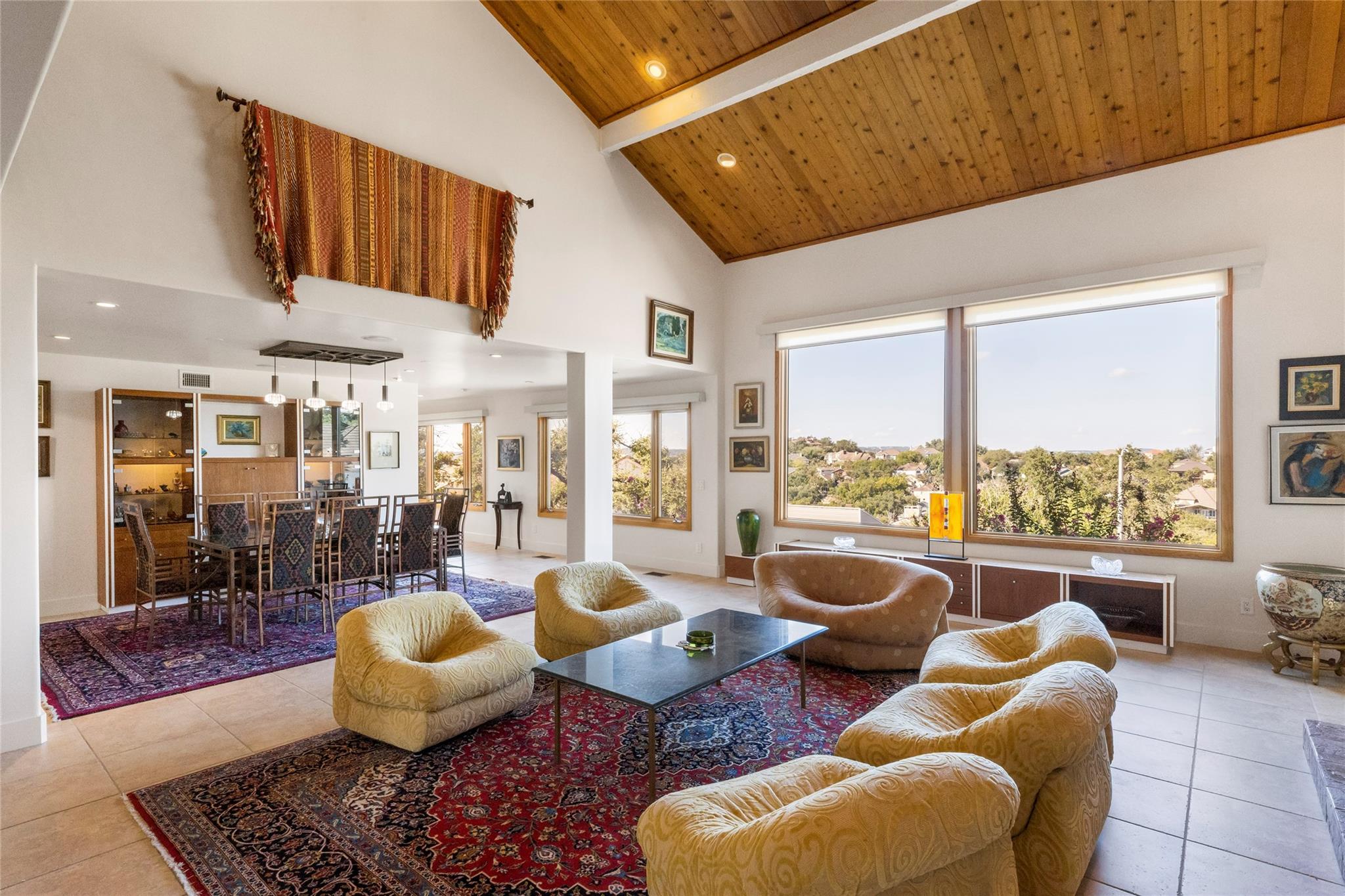 Nestled in the heart of Austin atop one of its highest points in Northwest Hills,lies this spacious two-story home boasting panoramic views of Lake Austin,Mt.Bonnell & the Hill Country.On this quiet cul-de-sac,a rare combination of proximity & privacy can be found.The main level of this homes' open design concept ensures a seamless flow between living spaces,creating an inviting atmosphere for relaxation & entertainment.Upon entry you’re greeted with wonderful hill country views through the living rooms’ expansive Pella wood windows.This space also boasts dramatic vaulted ceiling,floor to ceiling accent wall with fireplace & easy flow to the formal dining and kitchen.The heart of this home is undoubtedly the well-equipped grand chef’s kitchen~destined to be filled with laughter and joy while enjoying quality time with friends or family, Includes ample amounts of storage from custom wood cabinetry,walk-in pantry,granite countertops & huge island with seating area.The kitchen also provides subtle entry to elevator which allows easy access directly to the second floor primary bedroom. Main floor also has 2 bedrooms, library/den with access to enclosed private patio, full+half bath & laundry room with direct access to garage.Home provides ample storage with many closets and built-ins throughout.Custom designed railing on the staircase leads to 2nd floor Primary Suite, a sanctuary of its own.It offers a luxurious feel with wrap-around covered terrace, built in sitting/office area, 2 large walk-in closets and spacious ensuite bathroom. 2nd floor also has an addtl flex room w/ half bath & plenty of built-in shelving~So many possibilities for this space! Close to downtown,parks & hiking trails, creates ideal blend of urban convenience & natural tranquility. Bonus: Cat Mountain Villas amenities enhance the living experience w/ tennis courts,pool,playscape & clubhouse perfect for parties~only 5 min walk.Come experience this wonderful property! Some photos are virtually staged
