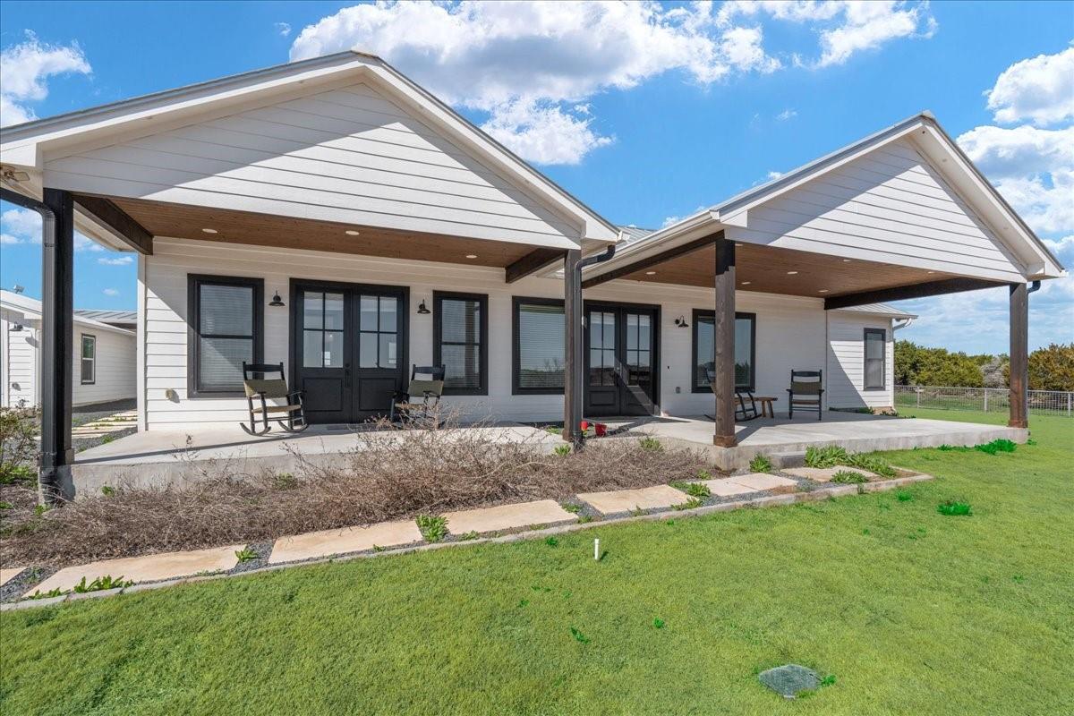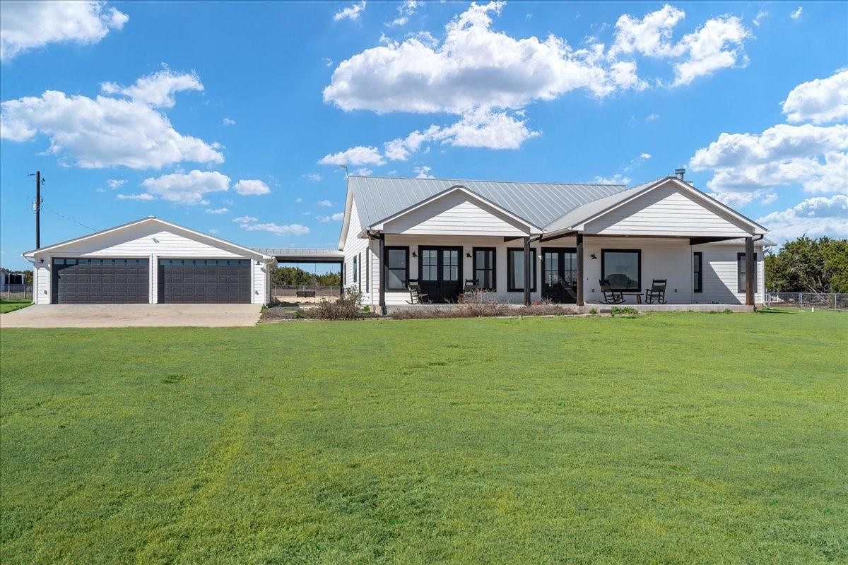 An absolute Texas Hill Country dream come true! Relaxed country living with an abundance of space to work and relax. It is an incomparable little gem on a very private road. Perfect for an Off-grid country getaway for a weekend or a primary residence. Just under 60 acres, unrestricted, 10 minutes NW of Bertram, 20 minutes to Burnet, and 30 minutes to Cedar Park. Beautiful 2020 built 3200sf 3/3 house and separate 40x40 garage, pool/hot tub, solar field with extensive battery storage system all put in 2023, 2 wells, tank, 30x40 Barn, ag exempt. Soak in the views or sit on the large covered front porch while you drink your morning coffee. Your metal roof will offer a beautiful sound while enjoying the rain outside. Between your main house and garage, you have a covered area. Your gourmet kitchen is perfect for your resident chef. The kitchen features quartz countertops, a tile backsplash, a built-in microwave + stove, white cabinetry, a pot filler, a breakfast bar, a gas cooktop stove, an island, a breakfast bar, & SS appliances. With a kitchen that overlooks the living room, the conversations will flow as the resident chef prepares a meal that will draw everyone in as the aroma of the latest culinary masterpiece flows through the home. Your living room is bright and airy, with a fireplace, high ceilings, and many windows. The primary bedroom is spacious and serene. It features a shiplap accent wall and access to the front patio. Your ensuite features a dual sink vanity with sparkling white cabinets, a modern tub, and a shower with subway tiles. Your second and third bedrooms are lovely, with shiplap accent walls and ceiling fans. Your secondary baths feature a single extended vanity and a walk-in shower with subway tiles. You have an oversized pantry and mud area by the back door. When it is time to relax, venture out for a cool dip in the pool or soak in your hot tub—thinking about fresh eggs? You'll adore your matching chicken coop. Welcome home!