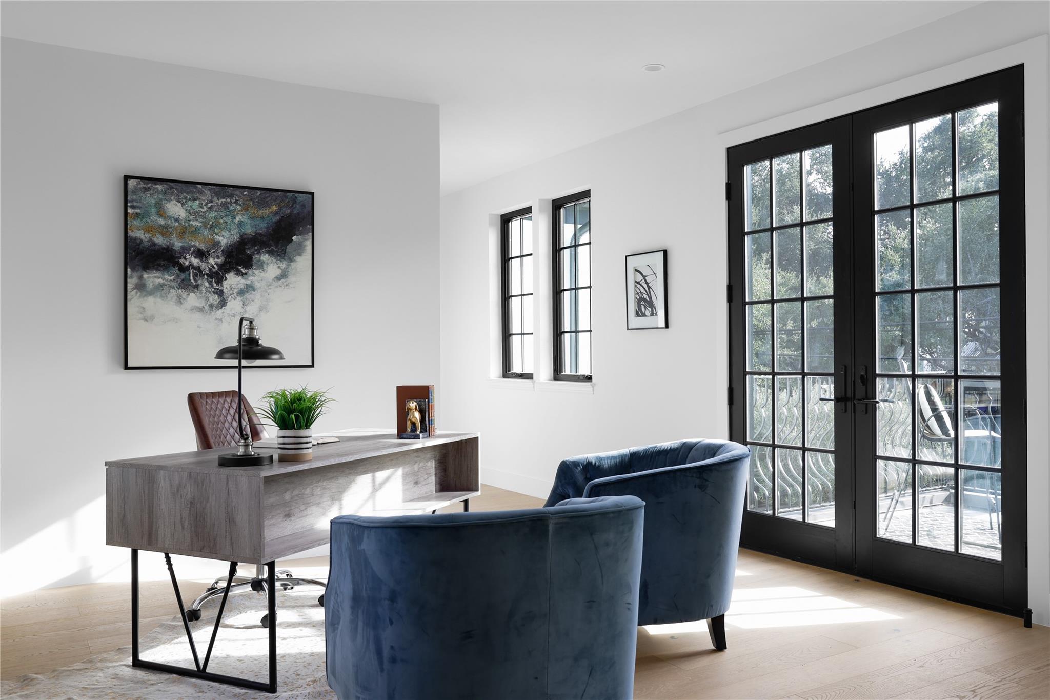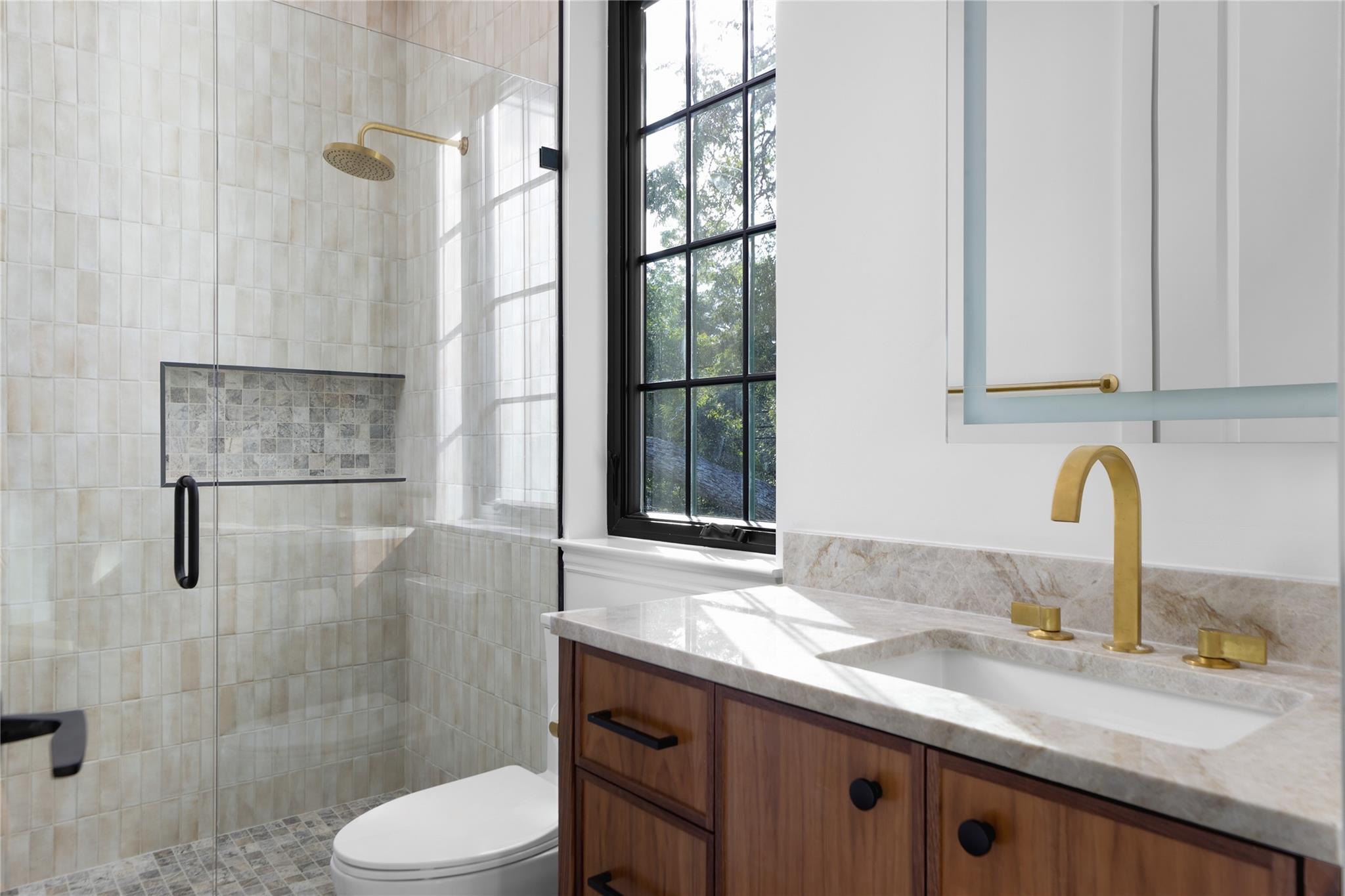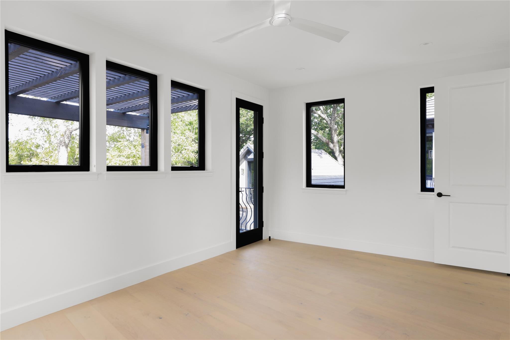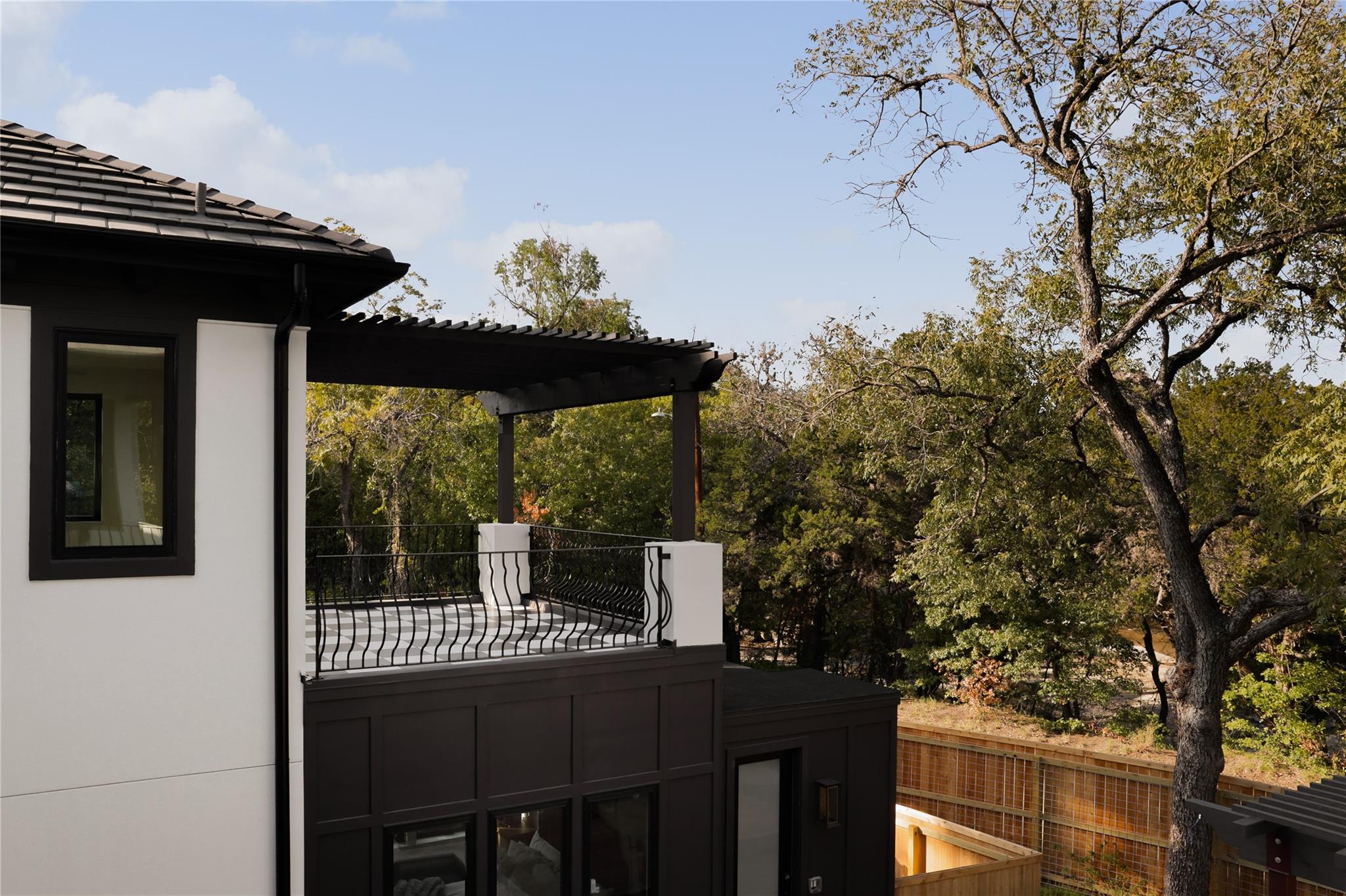 Modern Mediterranean Masterpiece in Travis Heights! Thoughtfully designed by award-winning Balzer & Tuck Architecture; Built by Fergie Time, with no detail left to chance. Inside and out, the finishes and craftmanship exude quality and character. Situated on a premier lot adjacent to Blunn Creek and steps from Little Stacy Park, this property is exceptional. Inviting from every angle, the home features breezy interiors loaded with natural materials, including artistic tile selections, marble fireplace surround, quartzite counters, custom walnut cabinetry, Western Sliders, and wide plank wood floors. Charming black and white checkerboard balconies with iron railing accentuate the indoor/outdoor emphasis of the architecture and living experience. Six defined outdoor living spaces include front patio, 3 balconies, gazebo, and back deck with grill. Authentic to the architectural style, the light, eclectic, and colorful patterns compliment the geometrical aspects of the property and welcome a comfortable and contemporary lifestyle. Fantastic pool, spa, decking and pergola again bring the outdoors in, and provide the backdrop for big entertaining or intimate gatherings. Private bonus room above 2-car garage offers guest, office, or exercise space with full bathroom. Come experience this memorable property. Truly one-of-a-kind!