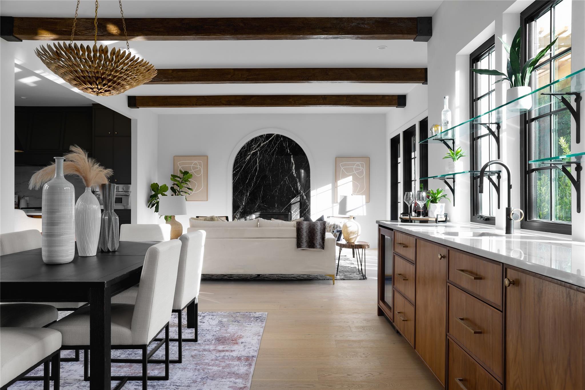 | Interior Features | Bar, Breakfast Bar, Built-in Features, Ceiling Fan(s), Beamed Ceilings, High Ceilings, Chandelier, Stone Counters, Double Vanity, Entrance Foyer, French Doors, Interior Steps, Kitchen Island, Multiple Dining Areas, Multiple Living Areas, Natural Woodwork, Open Floorplan, Pantry, Primary Bedroom on Main, Recessed Lighting, Soaking Tub, Walk-In Closet(s), Washer Hookup, Wet Bar, Wired for Data, Wired for Sound | |