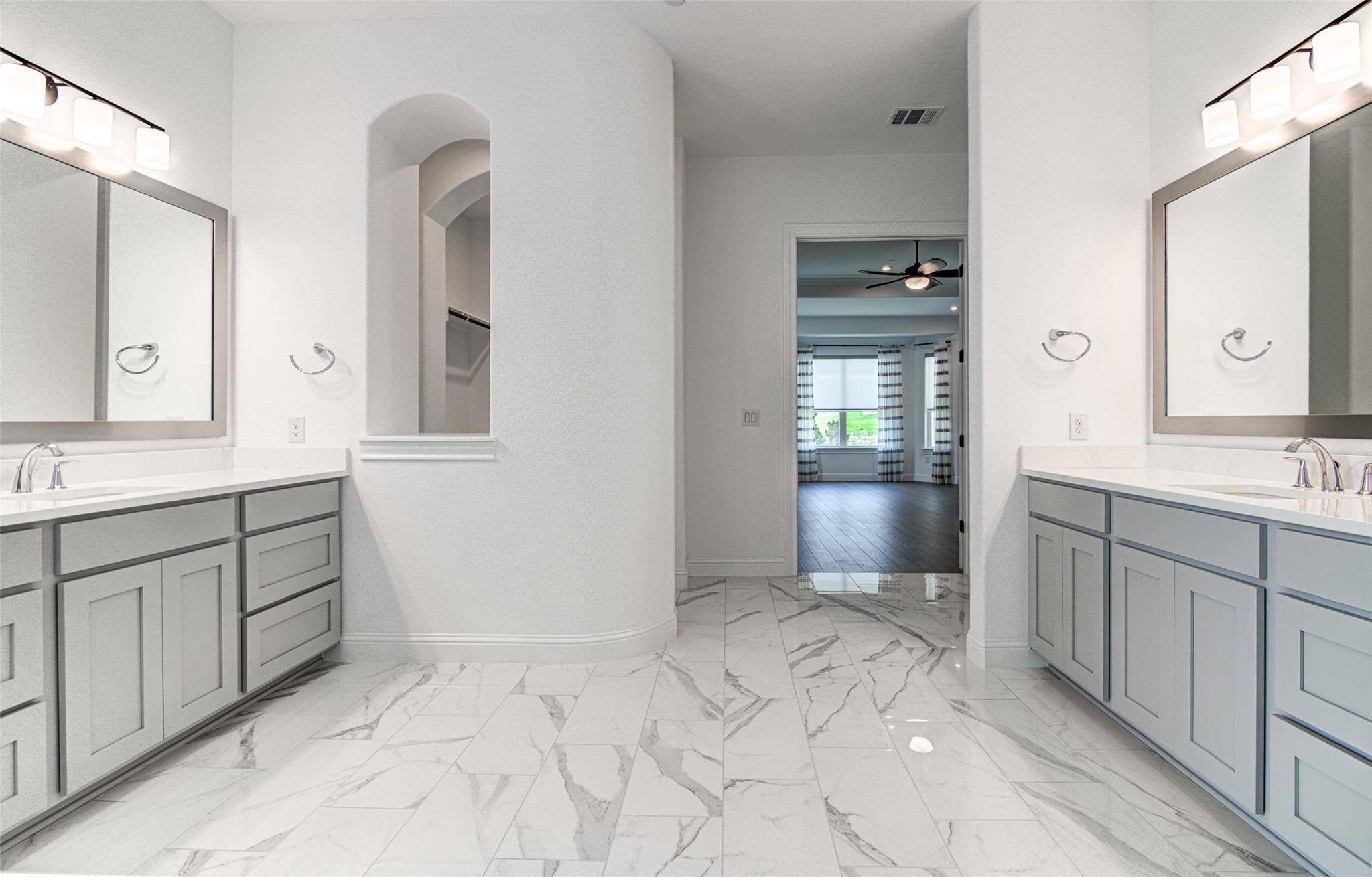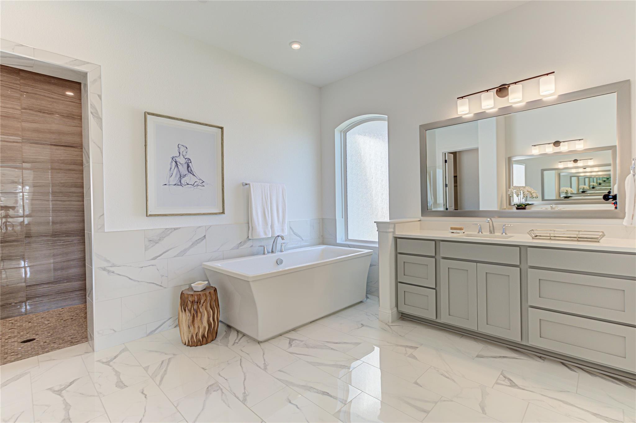 | Interior Features | Ceiling Fan(s), High Ceilings, Tray Ceiling(s), Quartz Counters, Double Vanity, Electric Dryer Hookup, Eat-in Kitchen, Entrance Foyer, High Speed Internet, Interior Steps, Kitchen Island, Multiple Dining Areas, Multiple Living Areas, Open Floorplan, Pantry, Primary Bedroom on Main, Recessed Lighting, Smart Thermostat, Soaking Tub, Storage, Two Primary Closets, Walk-In Closet(s), Washer Hookup, Wired for Sound | |